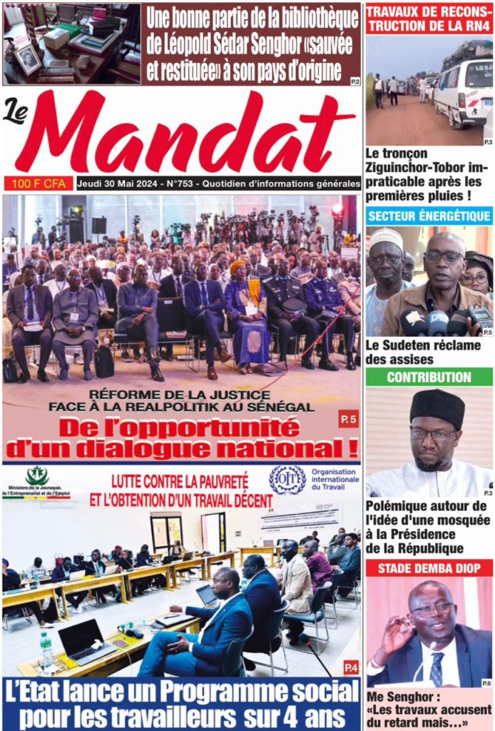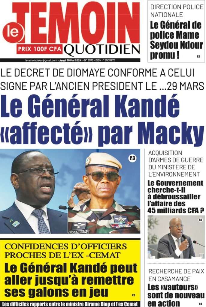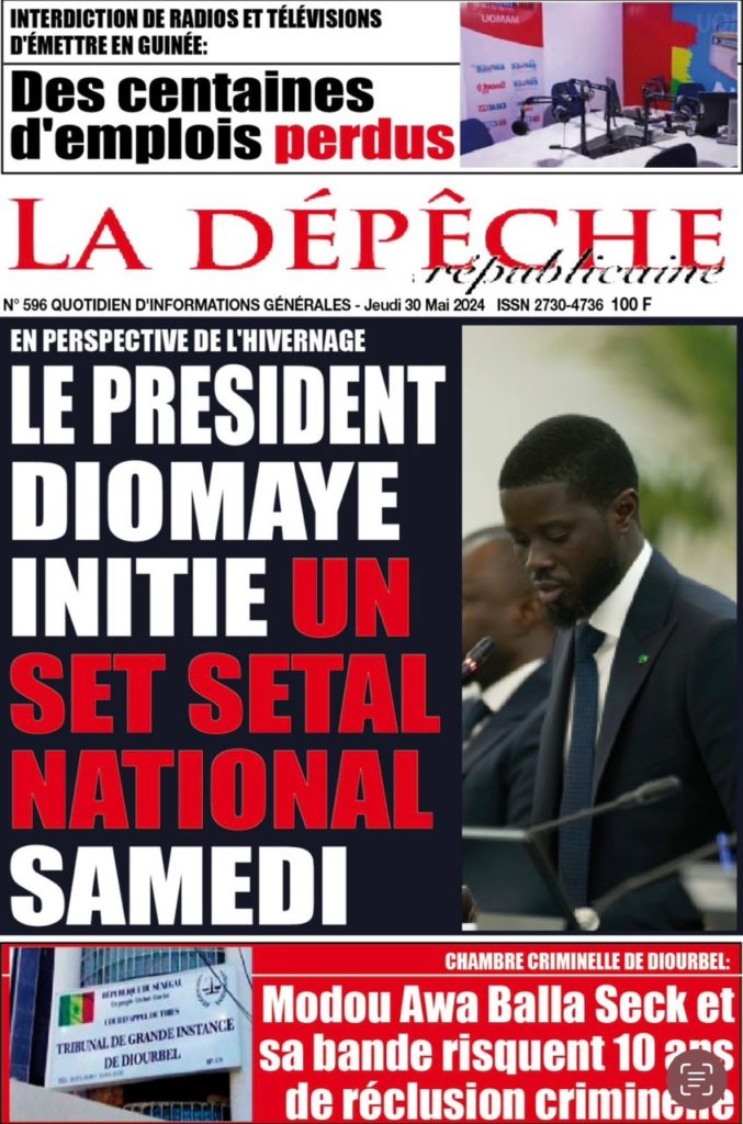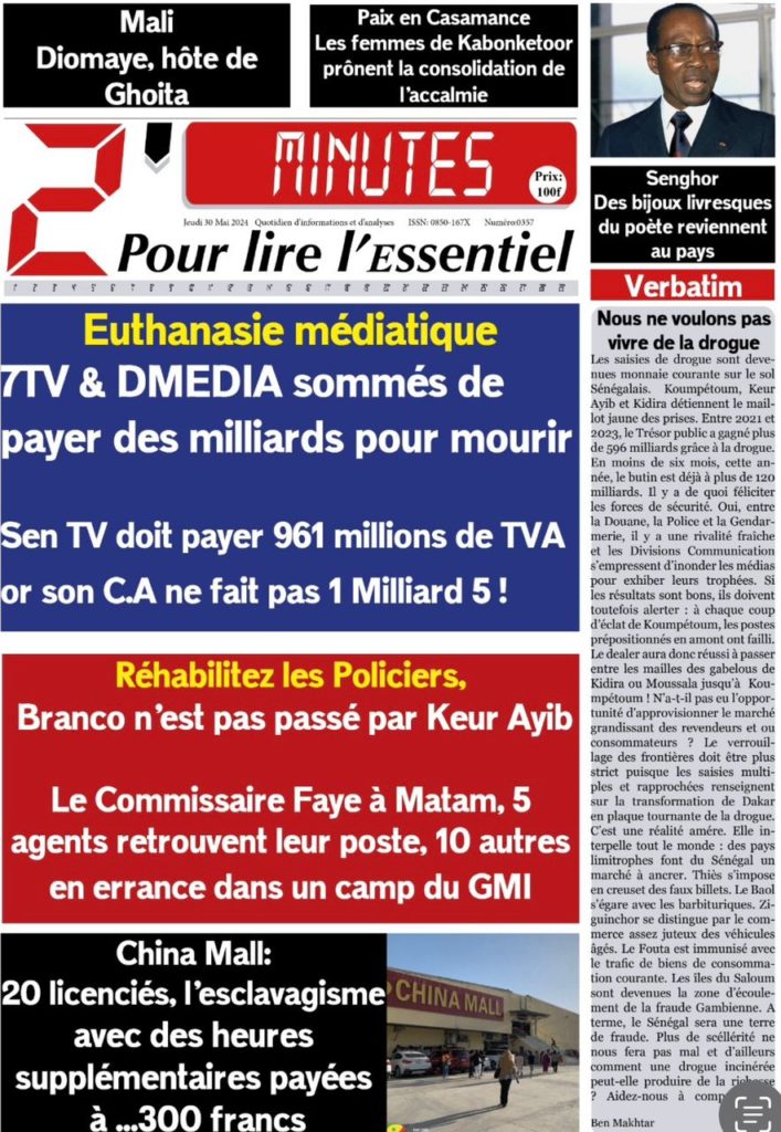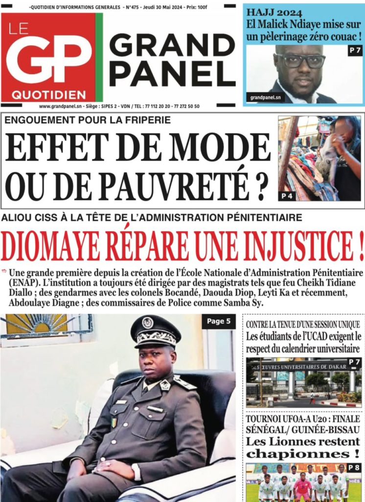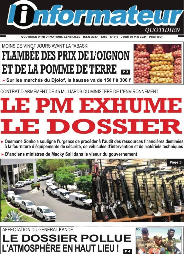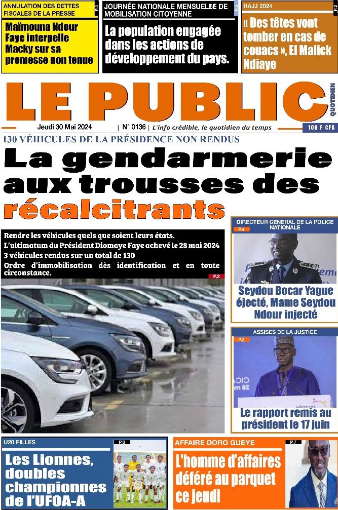 " /> La Une des Quotidiens Nationaux du 30 Mai 2024 Publié le 30 Mai, 2024 À DÉCOUVRIR Les Unes des quotidiens nationaux du 06 novembre 2025 6 Nov, 2025 La Rédaction de SenCaféActu Partager ->