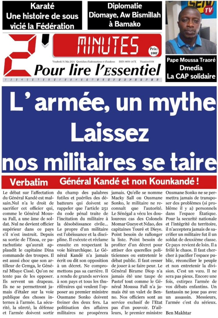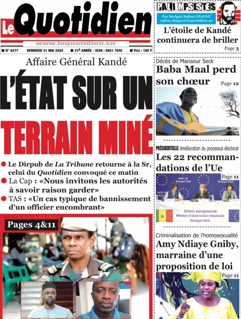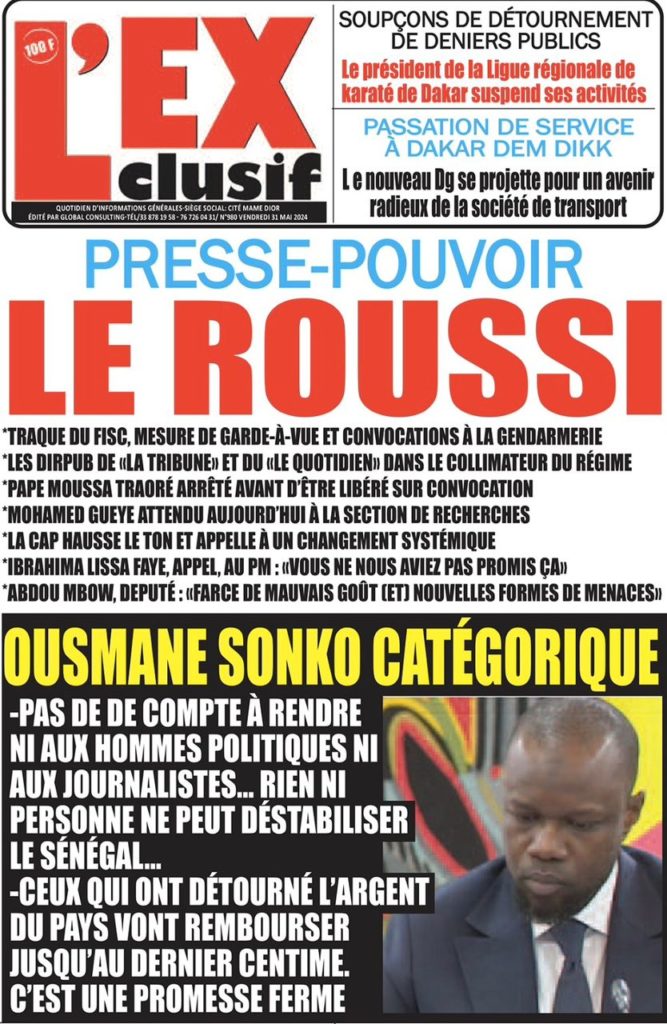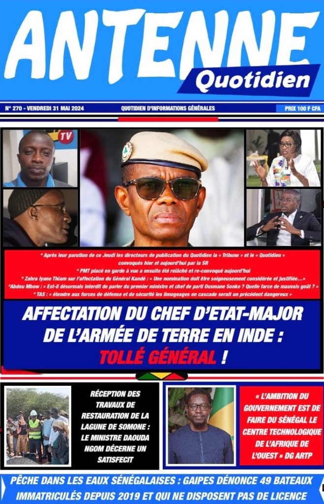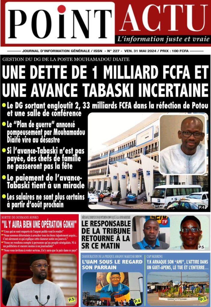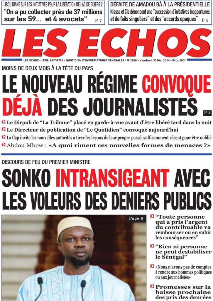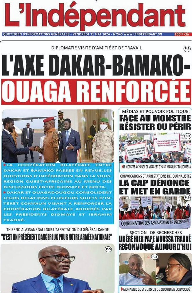 " /> La Une des Quotidiens Nationaux du 31 Mai 2024 Publié le 31 Mai, 2024 À DÉCOUVRIR Les Unes des quotidiens nationaux du 30 octobre 2025 30 Oct, 2025 La Rédaction de SenCaféActu Partager ->