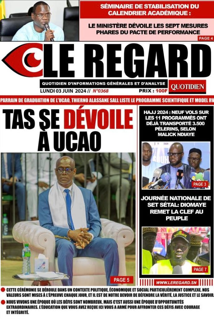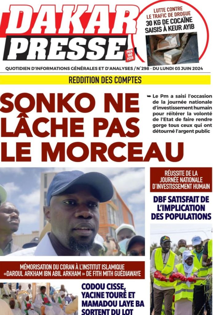 " /> La Une des Quotidiens Nationaux du 3 Juin 2024 Publié le 3 Juin, 2024 À DÉCOUVRIR Les Unes des quotidiens nationaux du 30 octobre 2025 30 Oct, 2025 La Rédaction de SenCaféActu Partager ->
