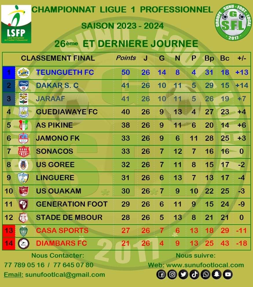 " /> Ligue 1 : Résultats de la dernière journée et le classement final Publié le 8 Juin, 2024 À DÉCOUVRIR Lutte : La saison prolongée jusqu’au 24 août 9 Août, 2025 Partager ->