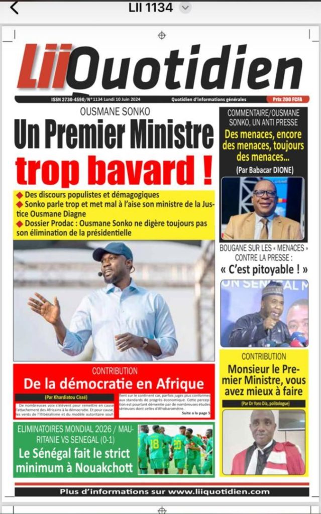 " /> La Une des Quotidiens Nationaux du 10 Juin 2024 Publié le 10 Juin, 2024 À DÉCOUVRIR Les Unes des quotidiens nationaux du 07 novembre 2025 7 Nov, 2025 La Rédaction de SenCaféActu Partager ->
