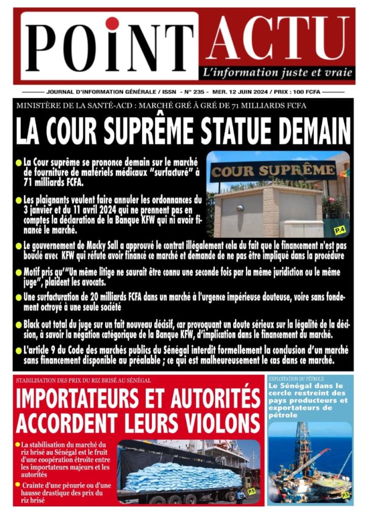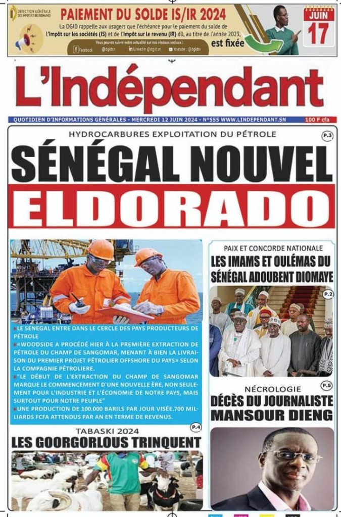 " /> La Une des Quotidiens Nationaux du 12 Juin 2024 Publié le 12 Juin, 2024 À DÉCOUVRIR Les Unes des quotidiens nationaux du 03 novembre 2025 3 Nov, 2025 La Rédaction de SenCaféActu Partager ->