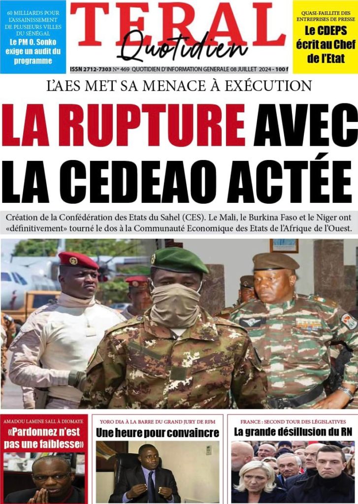 " /> La Une des Quotidiens Nationaux du 8 Juillet 2024 Publié le 8 Juil, 2024 À DÉCOUVRIR Les Unes des quotidiens nationaux du 11 novembre 2025 11 Nov, 2025 La Rédaction de SenCaféActu Partager ->