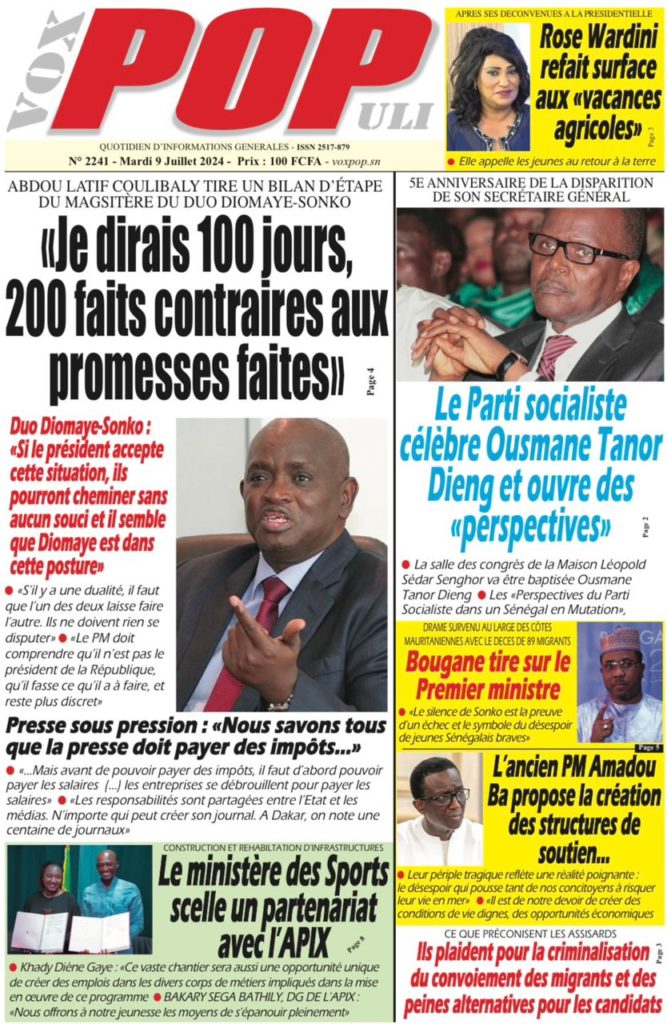 " /> La Une des Quotidiens Nationaux du 9 Juillet 2024 Publié le 9 Juil, 2024 À DÉCOUVRIR Les Unes des quotidiens nationaux du 27 novembre 2025 27 Nov, 2025 La Rédaction de SenCaféActu Partager ->