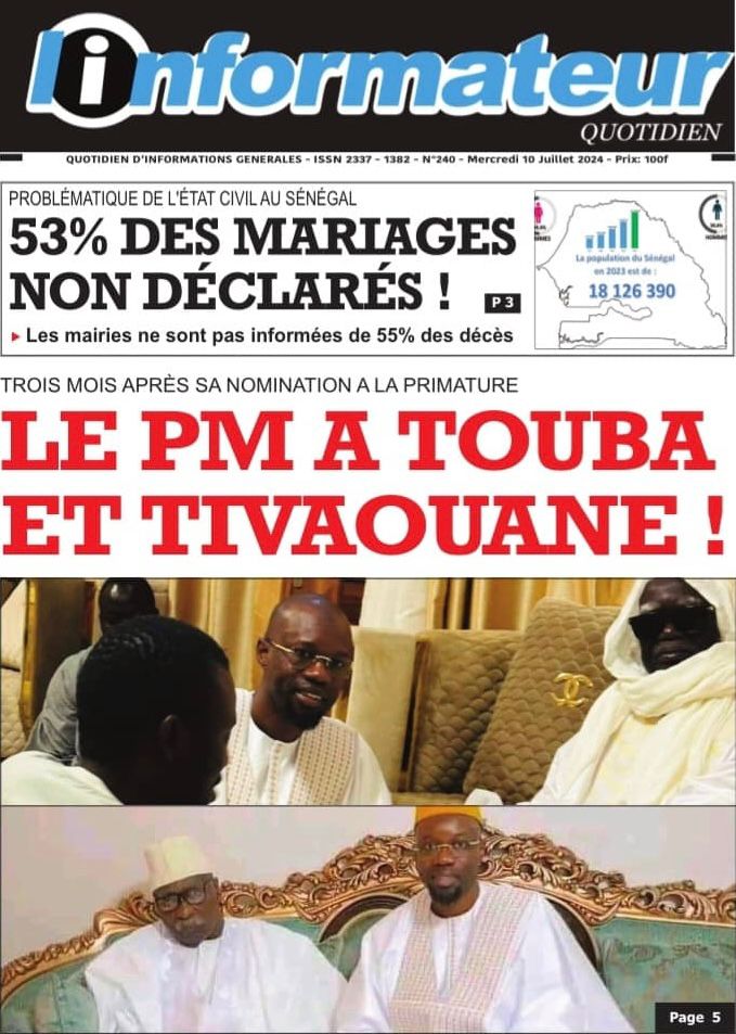 " /> La Une des Quotidiens Nationaux du 10 Juillet 2024 Publié le 10 Juil, 2024 À DÉCOUVRIR Les Unes des quotidiens nationaux du 11 novembre 2025 11 Nov, 2025 La Rédaction de SenCaféActu Partager ->