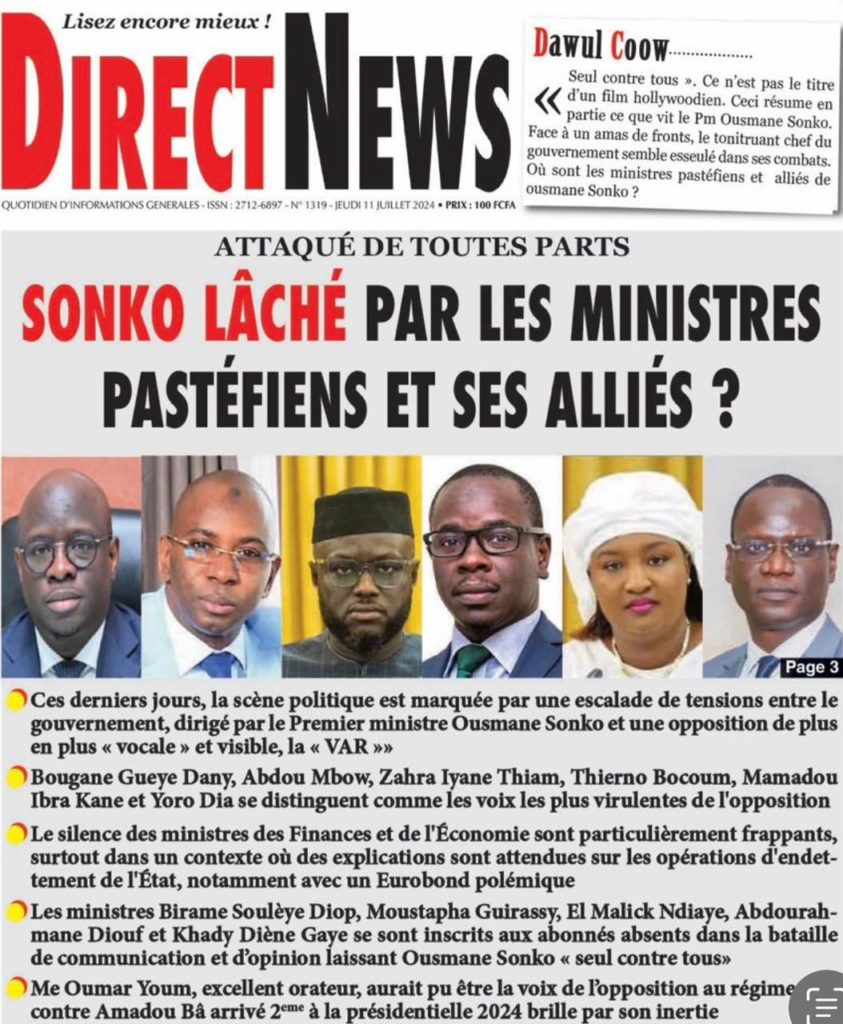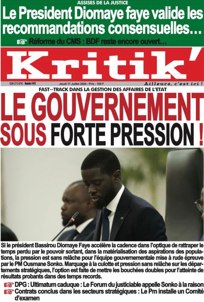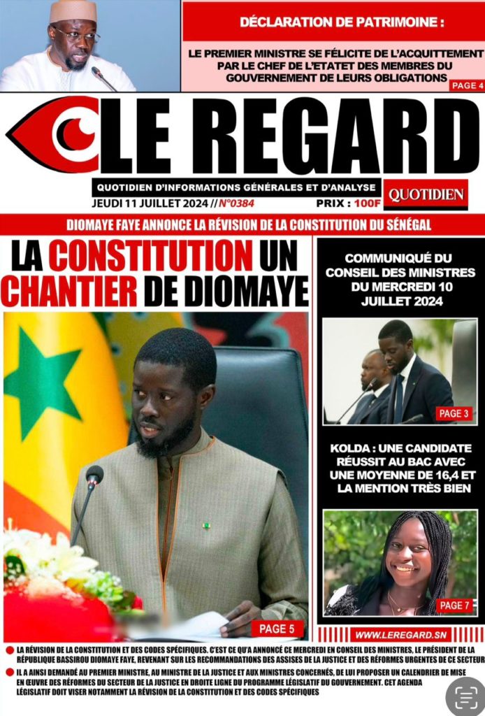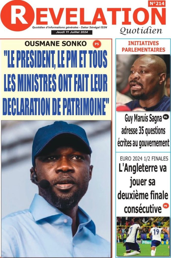 " /> La Une des Quotidiens Nationaux du 11 Juillet 2024 Publié le 11 Juil, 2024 À DÉCOUVRIR Les Unes des quotidiens nationaux du 29 octobre 2025 29 Oct, 2025 La Rédaction de SenCaféActu Partager ->