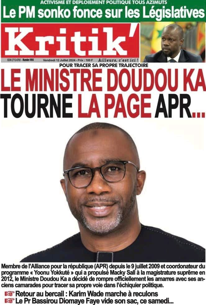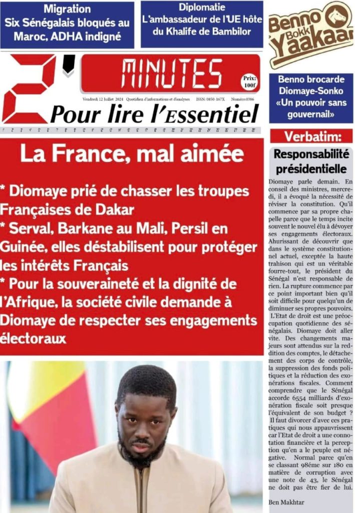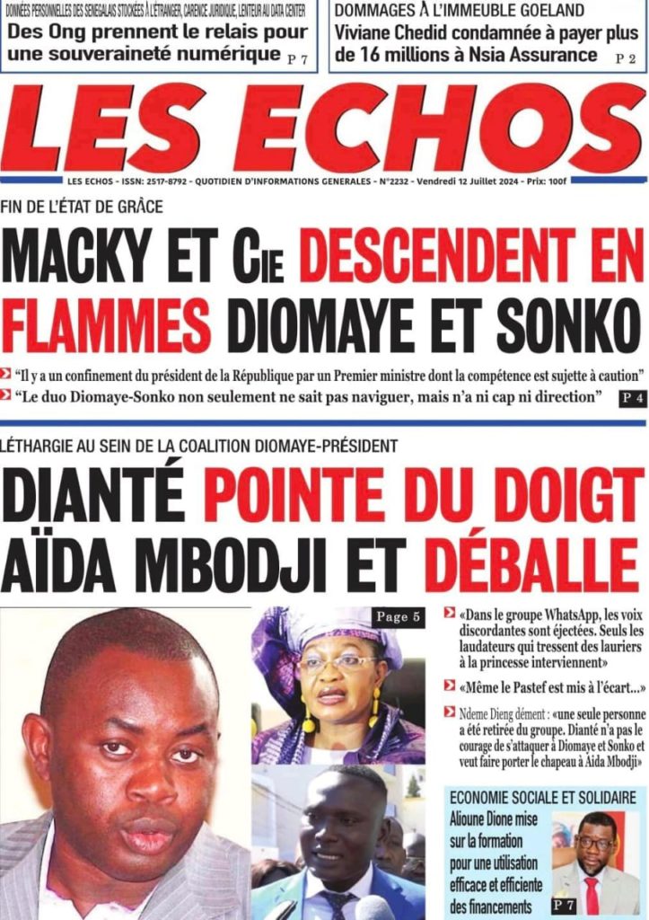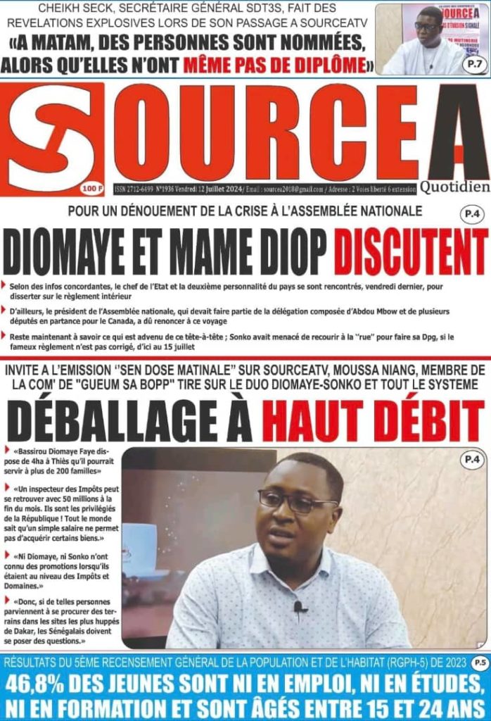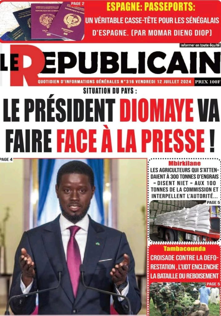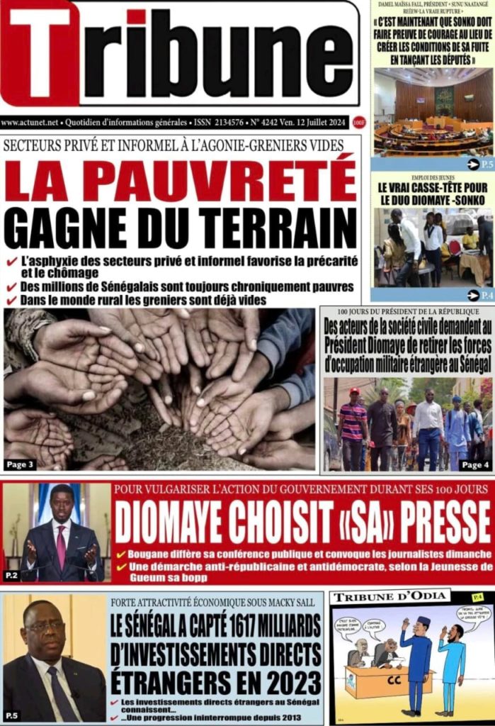 " /> La Une des Quotidiens Nationaux du 12 Juillet 2024 Publié le 12 Juil, 2024 À DÉCOUVRIR Les Unes des quotidiens nationaux du 29 novembre 2025 29 Nov, 2025 La Rédaction de SenCaféActu Partager ->