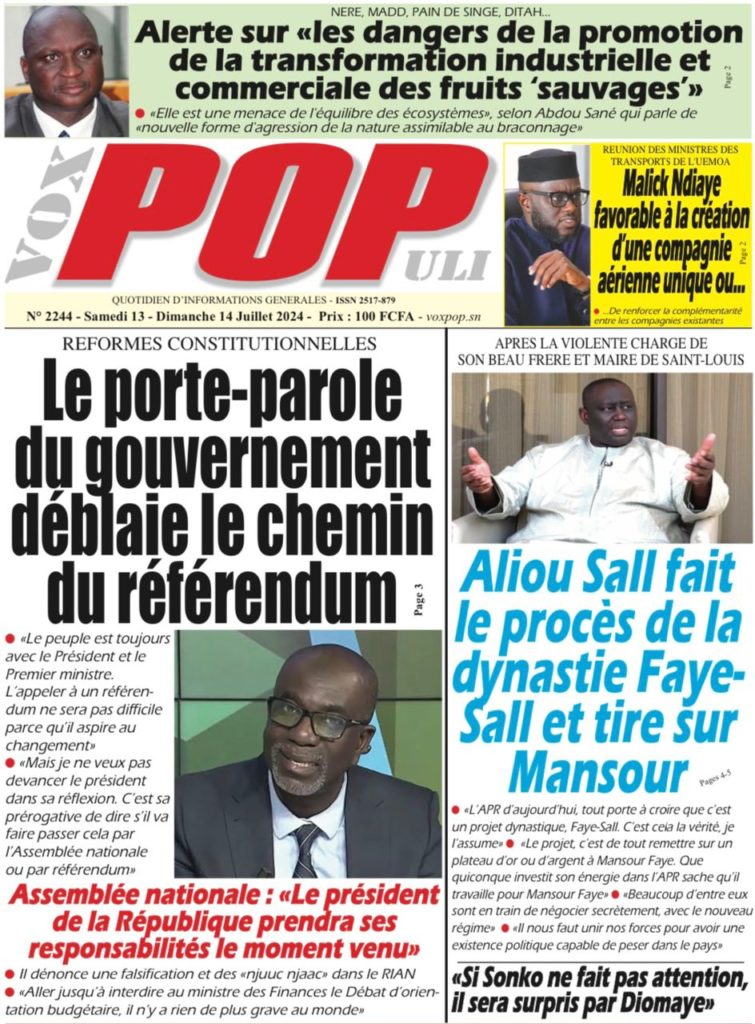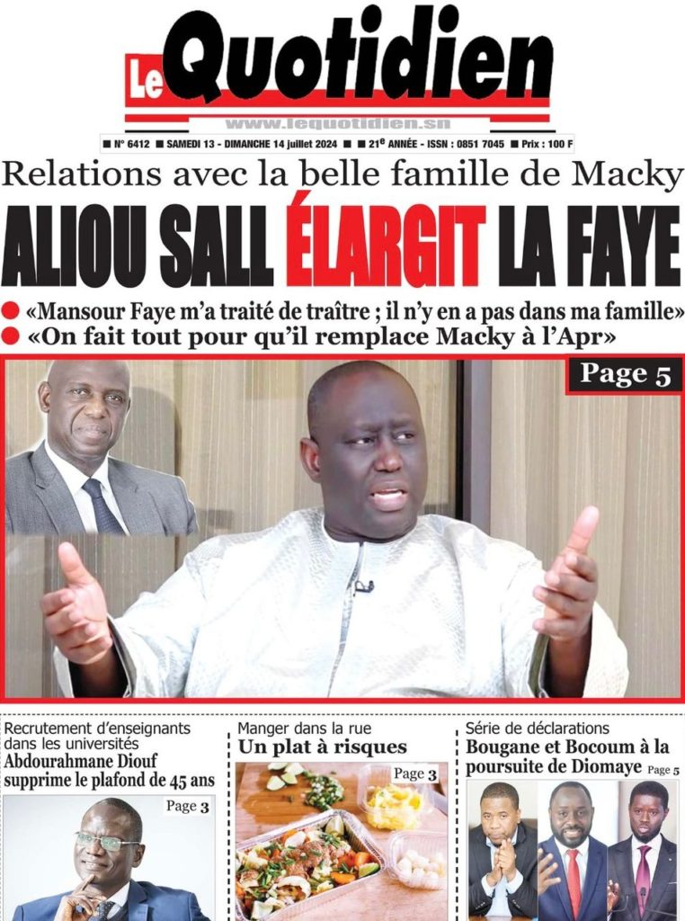 " /> La Une des Quotidiens Nationaux du 13 Juillet 2024 Publié le 13 Juil, 2024 À DÉCOUVRIR Les Unes des quotidiens nationaux du 05 novembre 2025 5 Nov, 2025 La Rédaction de SenCaféActu Partager ->