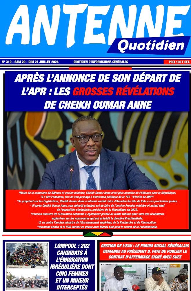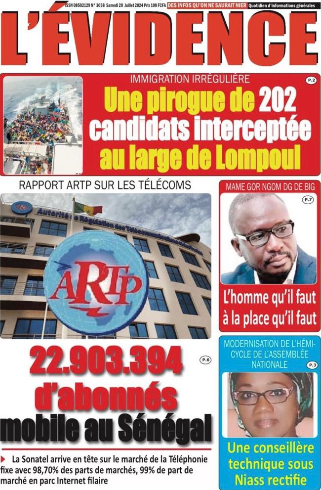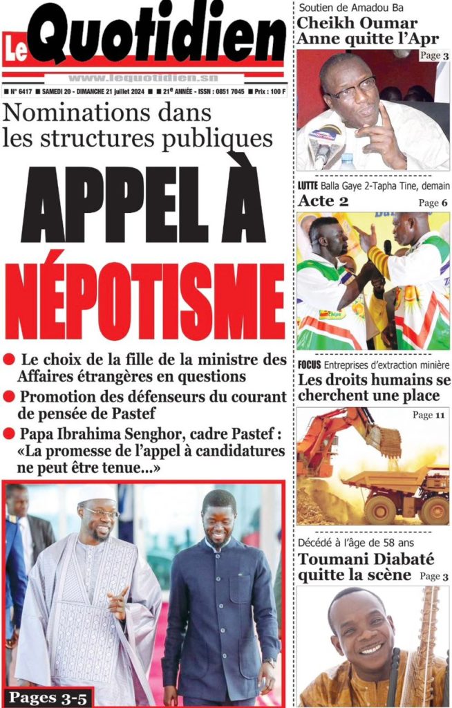 " /> La Une des Quotidiens Nationaux du 20 Juillet 2024 Publié le 20 Juil, 2024 À DÉCOUVRIR Les Unes des quotidiens nationaux du 03 novembre 2025 3 Nov, 2025 La Rédaction de SenCaféActu Partager ->