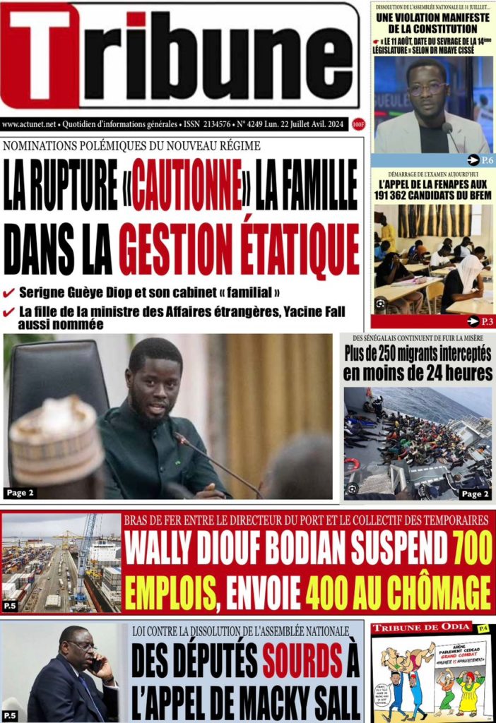" /> La Une des Quotidiens Nationaux du 22 Juillet 2024 Publié le 22 Juil, 2024 À DÉCOUVRIR Les Unes des quotidiens nationaux du 17 novembre 2025 17 Nov, 2025 La Rédaction de SenCaféActu Partager ->
