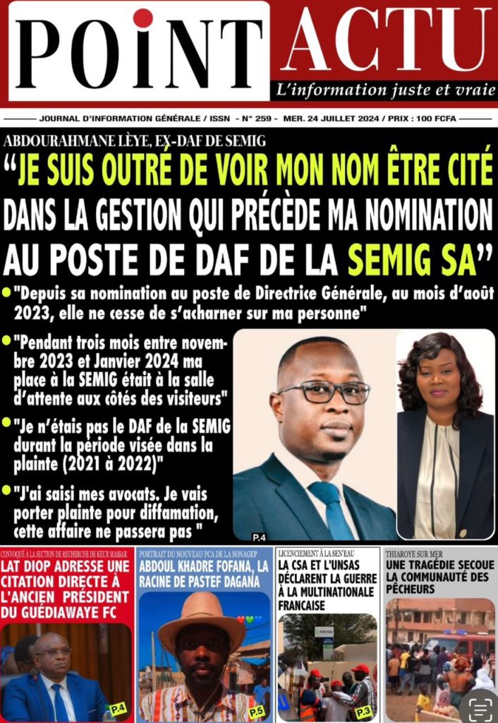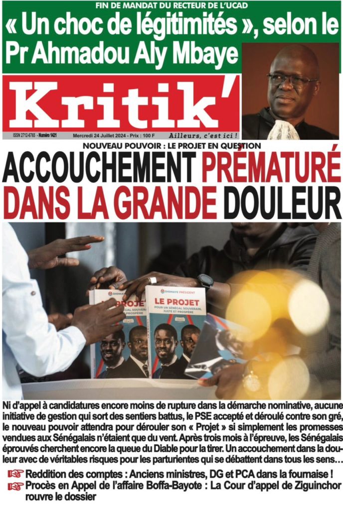 " /> La Une des Quotidiens Nationaux du 24 Juillet 2024 Publié le 24 Juil, 2024 À DÉCOUVRIR Les Unes des quotidiens nationaux du 05 novembre 2025 5 Nov, 2025 La Rédaction de SenCaféActu Partager ->