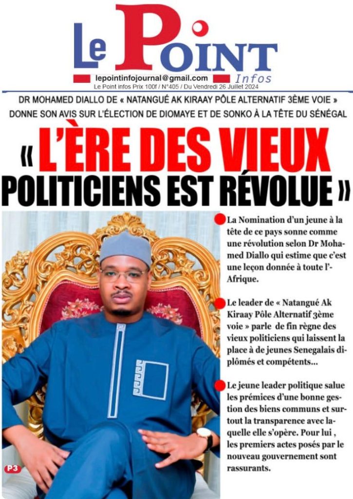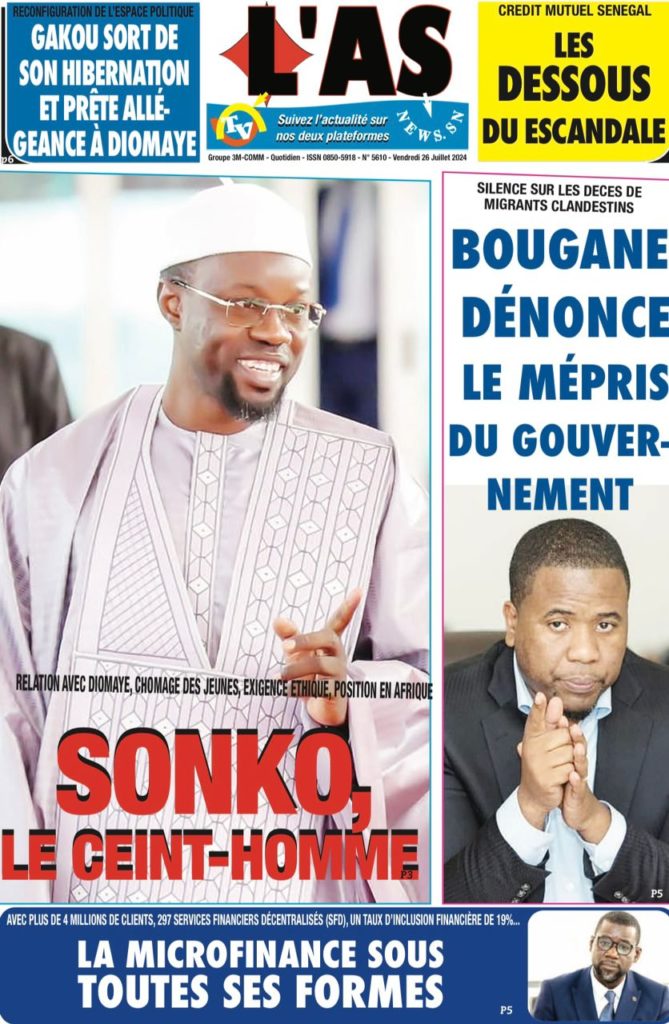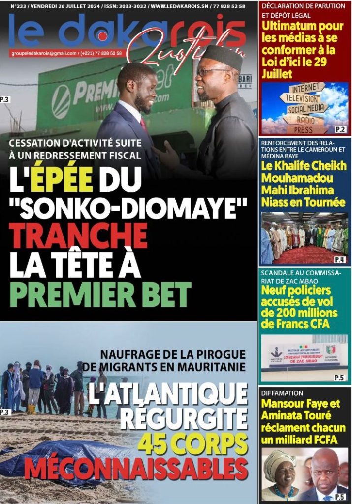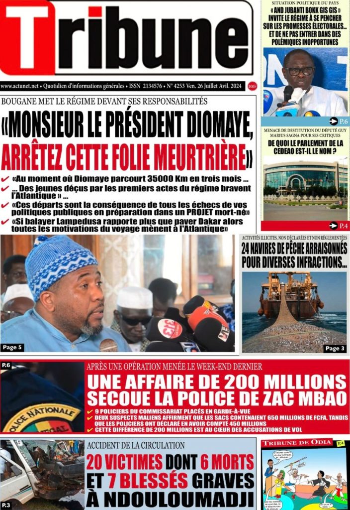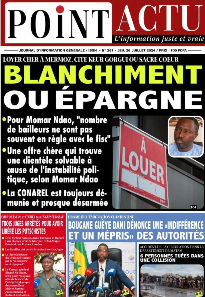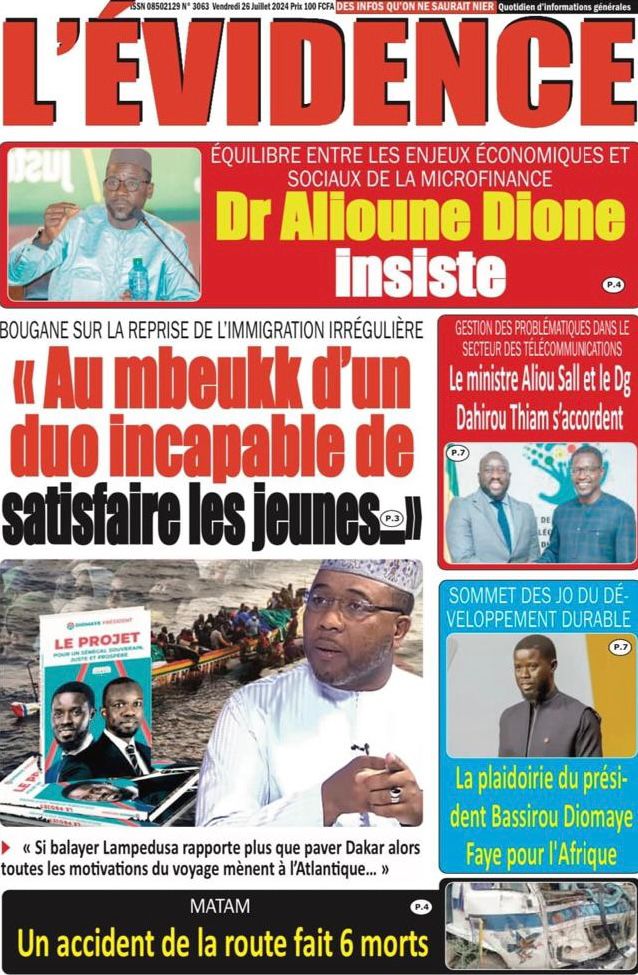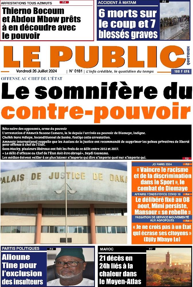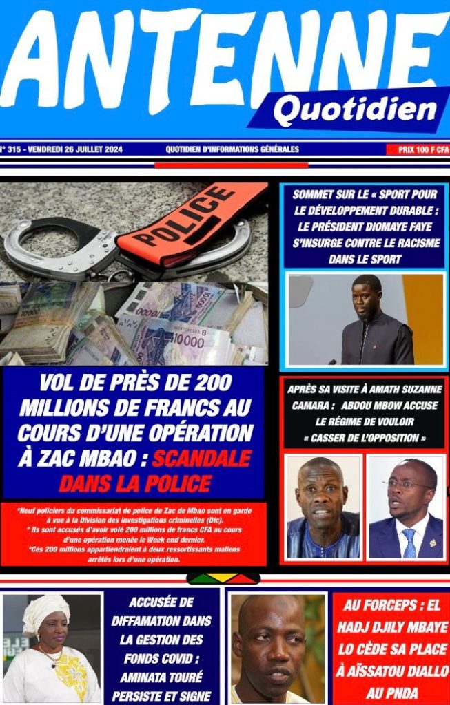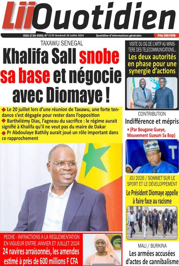 " /> La Une des Quotidiens Nationaux du 26 Juillet 2024 Publié le 26 Juil, 2024 À DÉCOUVRIR Les Unes des quotidiens nationaux du 24 octobre 2025 24 Oct, 2025 La Rédaction de SenCaféActu Partager ->