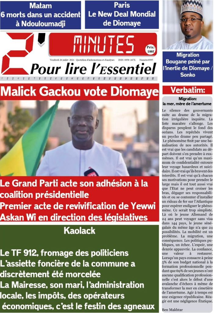 " /> La Une des Quotidiens Nationaux du 26 Juillet 2024 Publié le 26 Juil, 2024 À DÉCOUVRIR Les Unes des quotidiens nationaux du 10 octobre 2025 10 Oct, 2025 La Rédaction de SenCaféActu Partager ->
