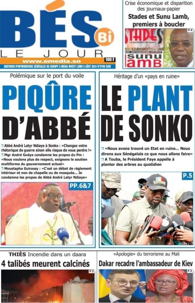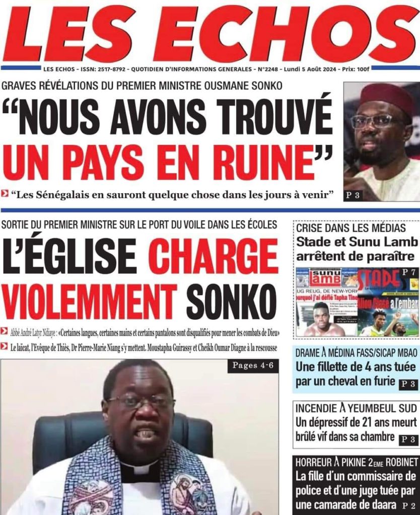 " /> La Une des Quotidiens Nationaux du 5 Août 2024 Publié le 5 Août, 2024 À DÉCOUVRIR Les Unes des quotidiens nationaux du 11 novembre 2025 11 Nov, 2025 La Rédaction de SenCaféActu Partager ->