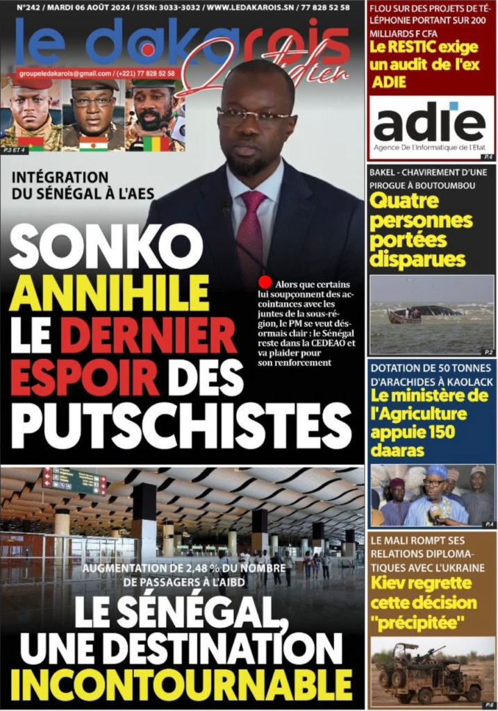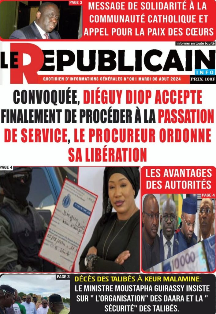 " /> La Une des Quotidiens Nationaux du 6 Août 2024 Publié le 6 Août, 2024 À DÉCOUVRIR Les Unes des quotidiens nationaux du 05 novembre 2025 5 Nov, 2025 La Rédaction de SenCaféActu Partager ->