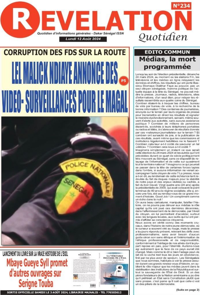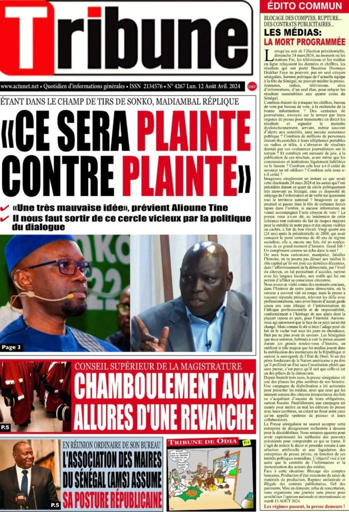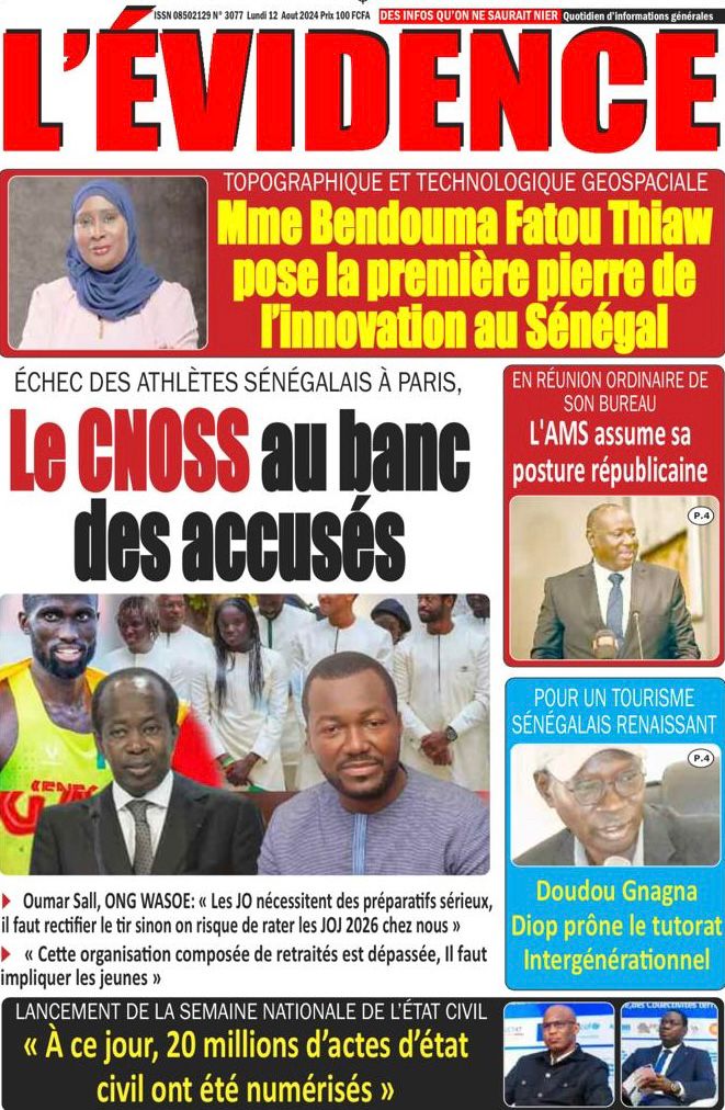 " /> La Une des Quotidiens Nationaux du 12 Août 2024 Publié le 12 Août, 2024 À DÉCOUVRIR Les Unes des quotidiens nationaux du 05 novembre 2025 5 Nov, 2025 La Rédaction de SenCaféActu Partager ->
