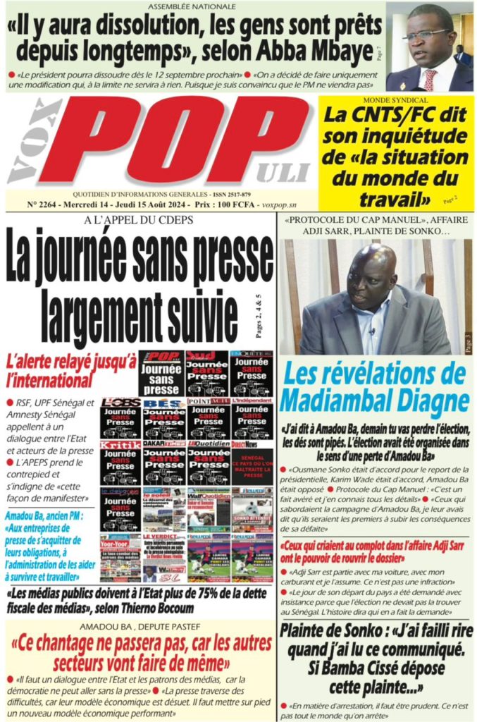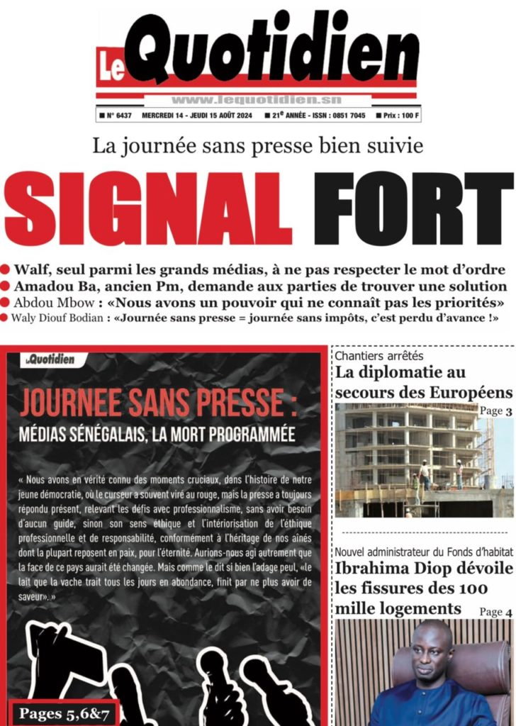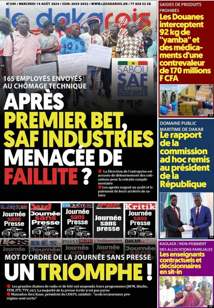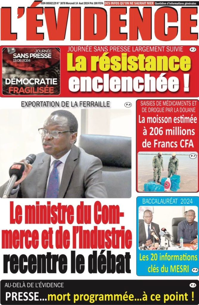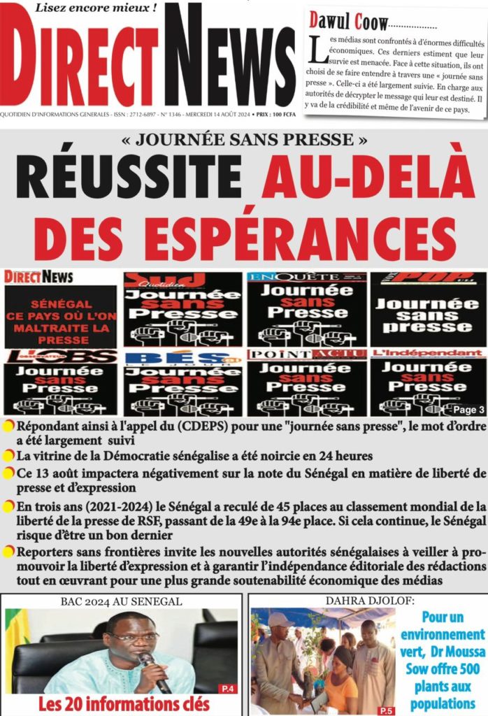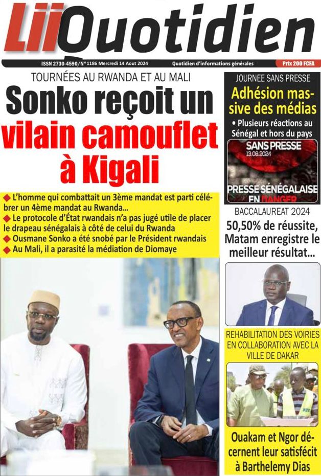 " /> La Une des Quotidiens Nationaux du 14 Août 2024 Publié le 14 Août, 2024 À DÉCOUVRIR Les Unes des quotidiens nationaux du 07 novembre 2025 7 Nov, 2025 La Rédaction de SenCaféActu Partager ->