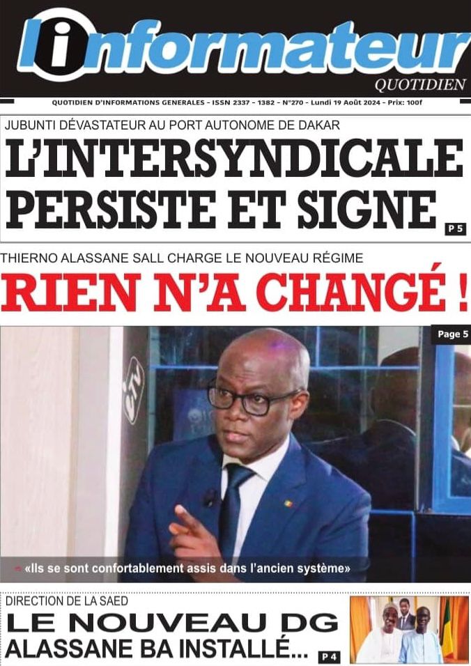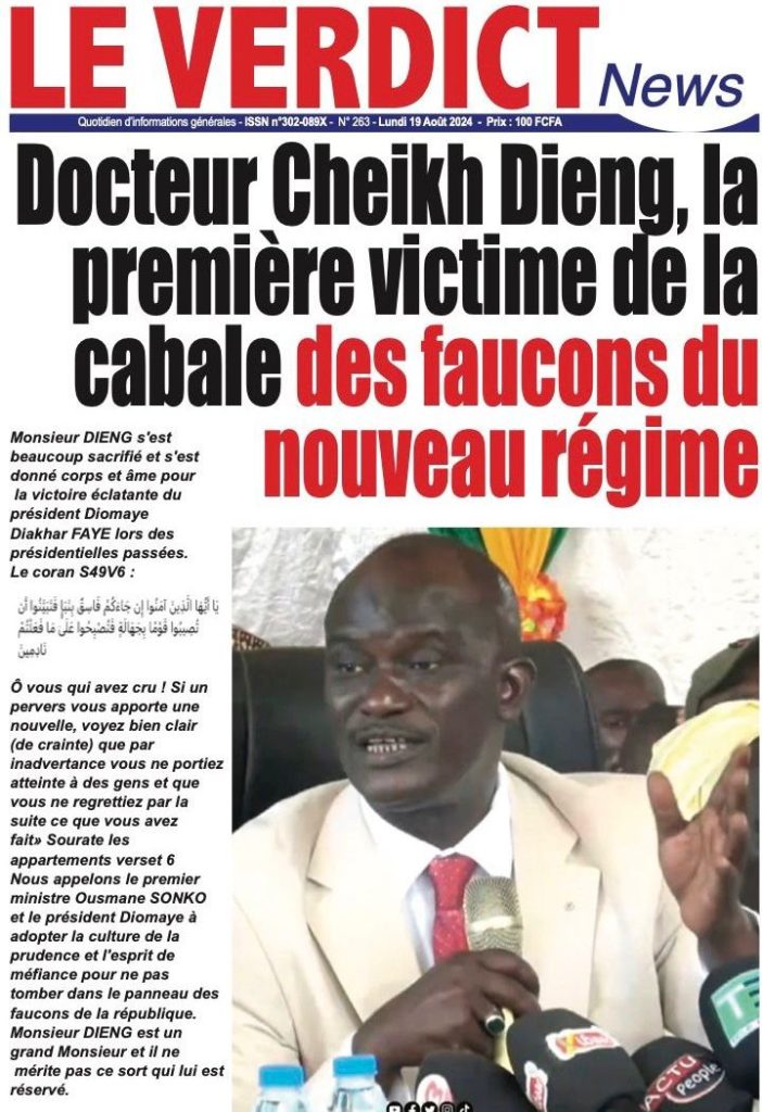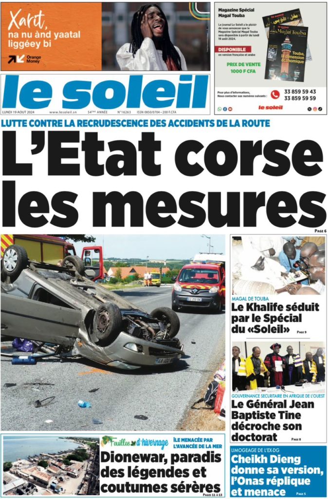 " /> La Une des Quotidiens Nationaux du 19 Août 2024 Publié le 19 Août, 2024 À DÉCOUVRIR Les Unes des quotidiens nationaux du 11 novembre 2025 11 Nov, 2025 La Rédaction de SenCaféActu Partager ->