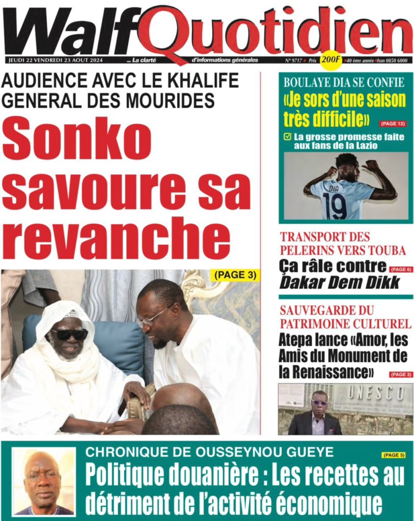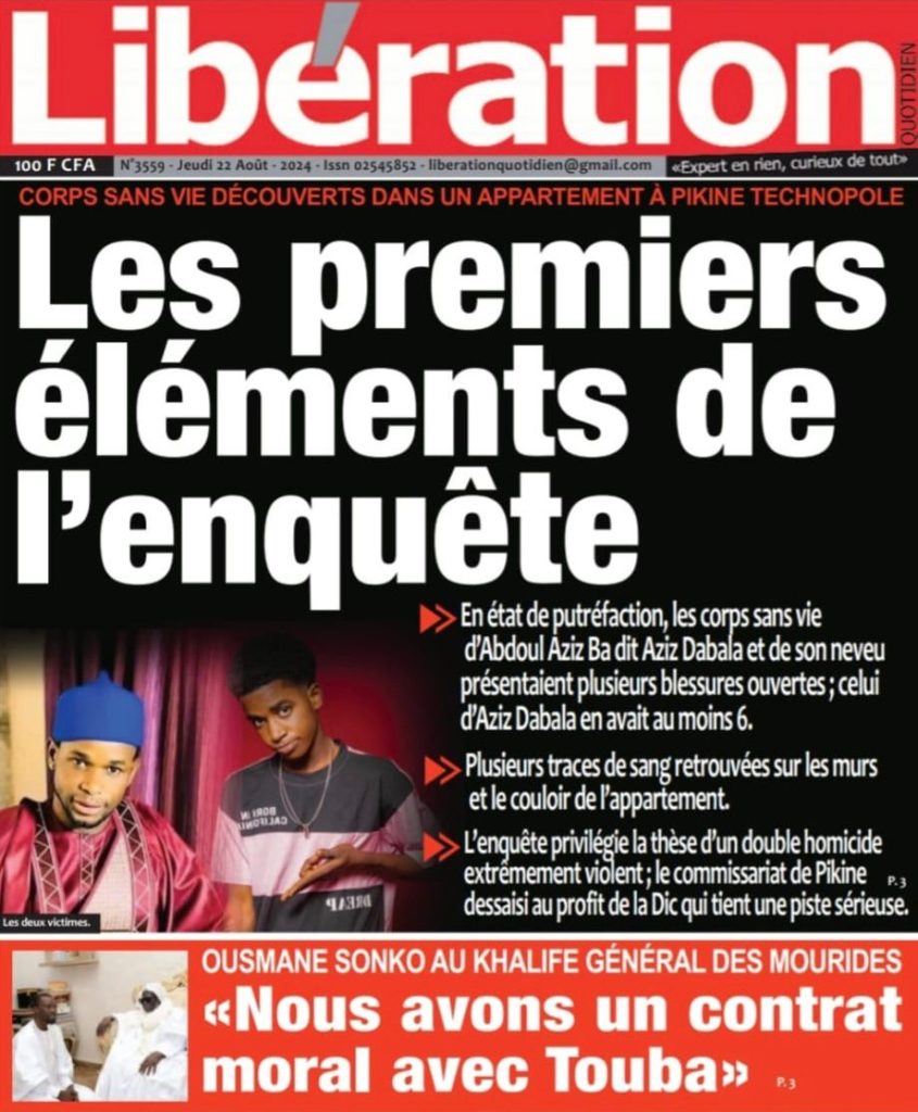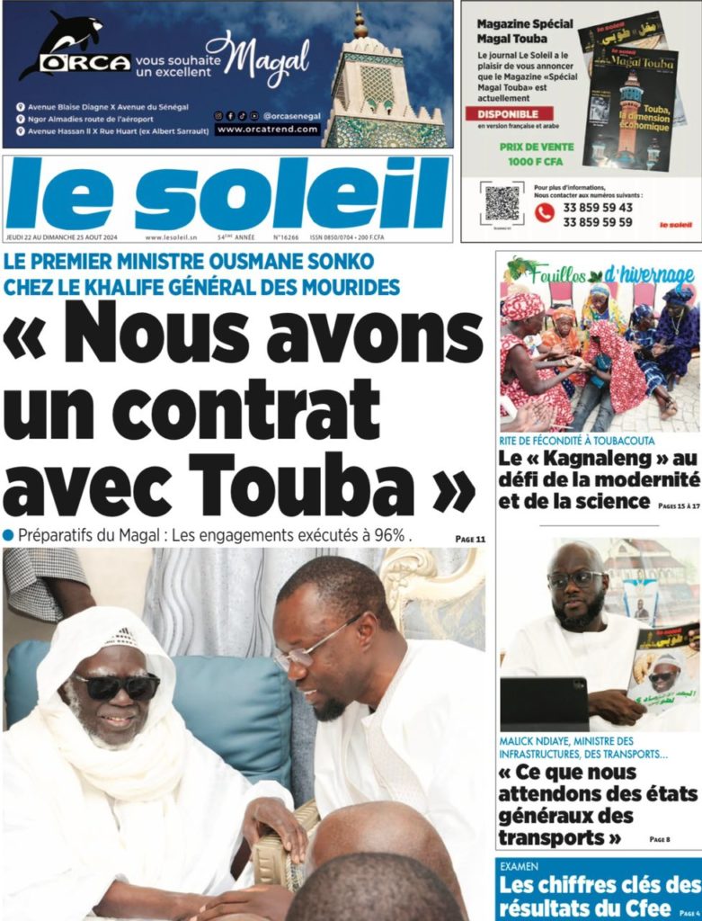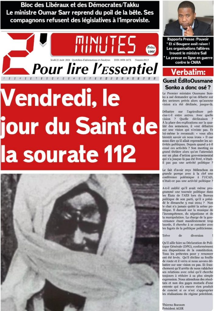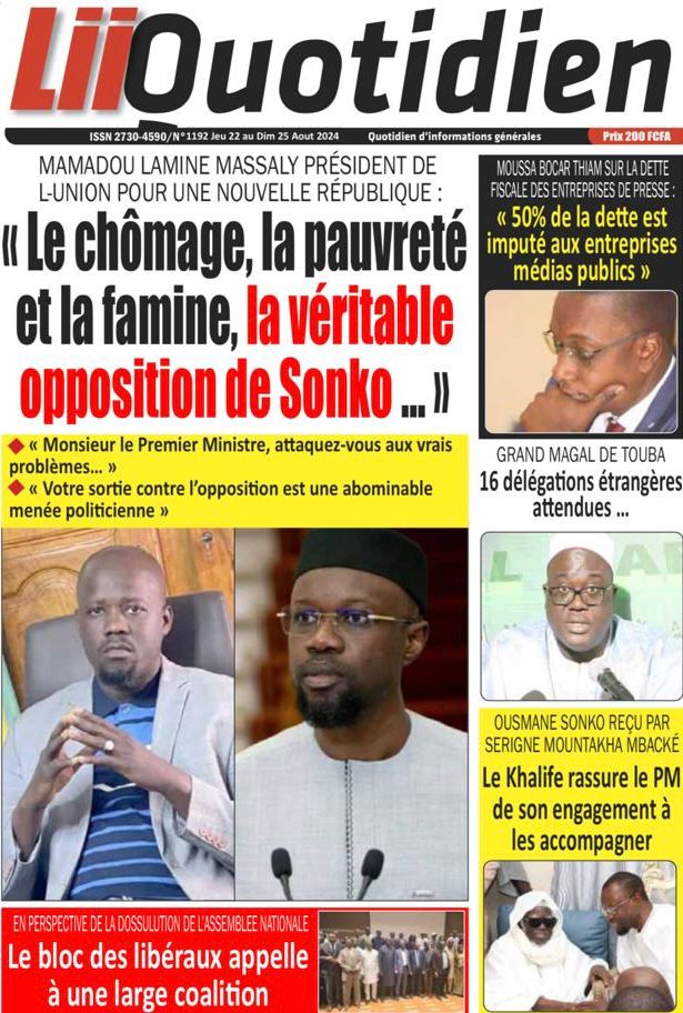 " /> La Une des Quotidiens Nationaux du 22 Août 2024 Publié le 22 Août, 2024 À DÉCOUVRIR Les Unes des quotidiens nationaux du 05 novembre 2025 5 Nov, 2025 La Rédaction de SenCaféActu Partager ->
