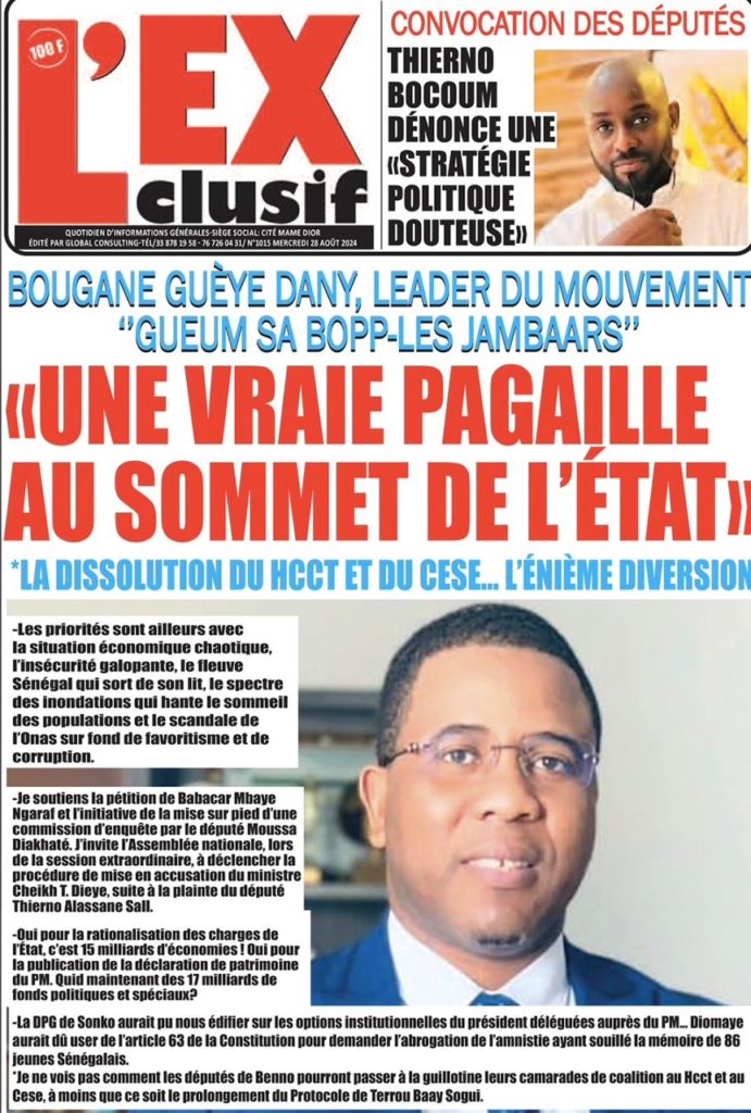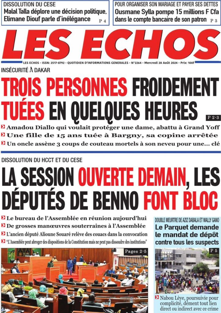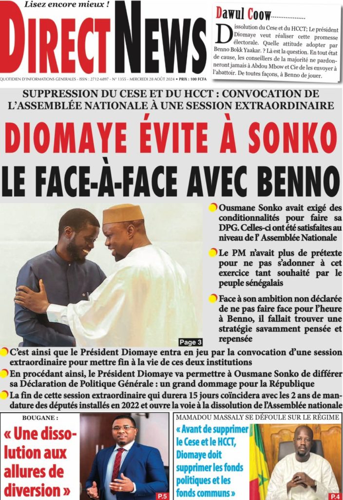 " /> La Une des Quotidiens Nationaux du 28 Août 2024 Publié le 28 Août, 2024 À DÉCOUVRIR Les Unes des quotidiens nationaux du 30 octobre 2025 30 Oct, 2025 La Rédaction de SenCaféActu Partager ->