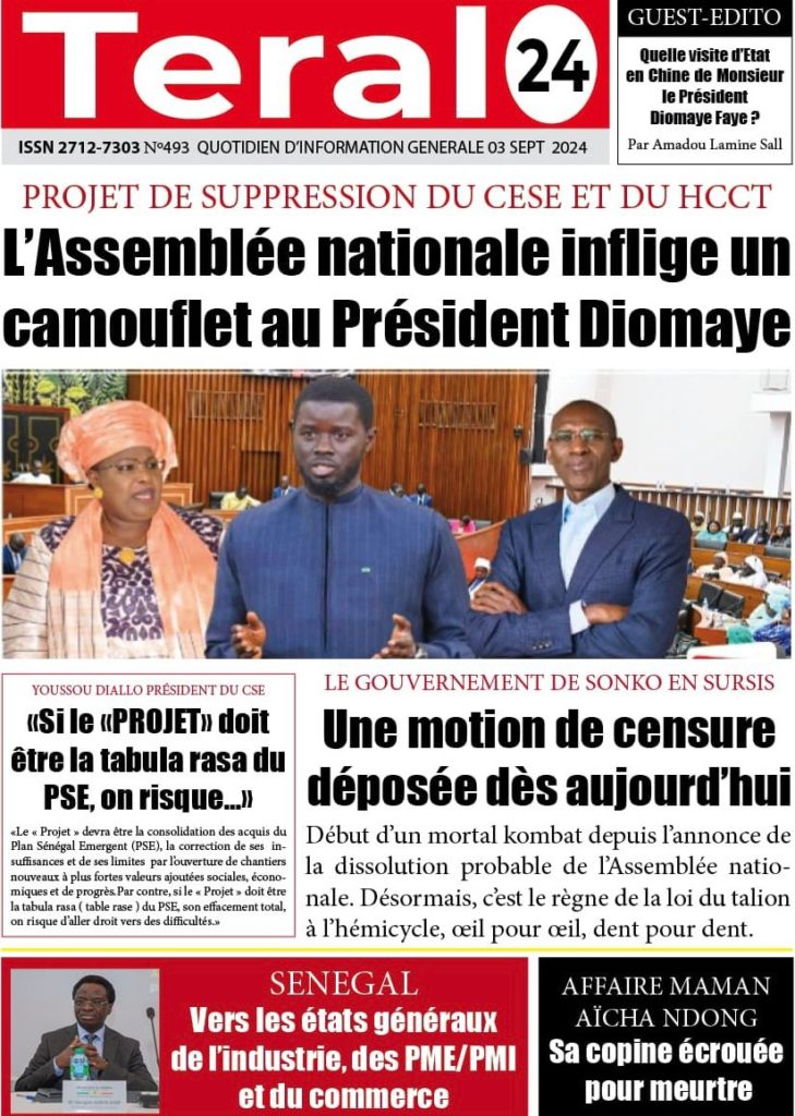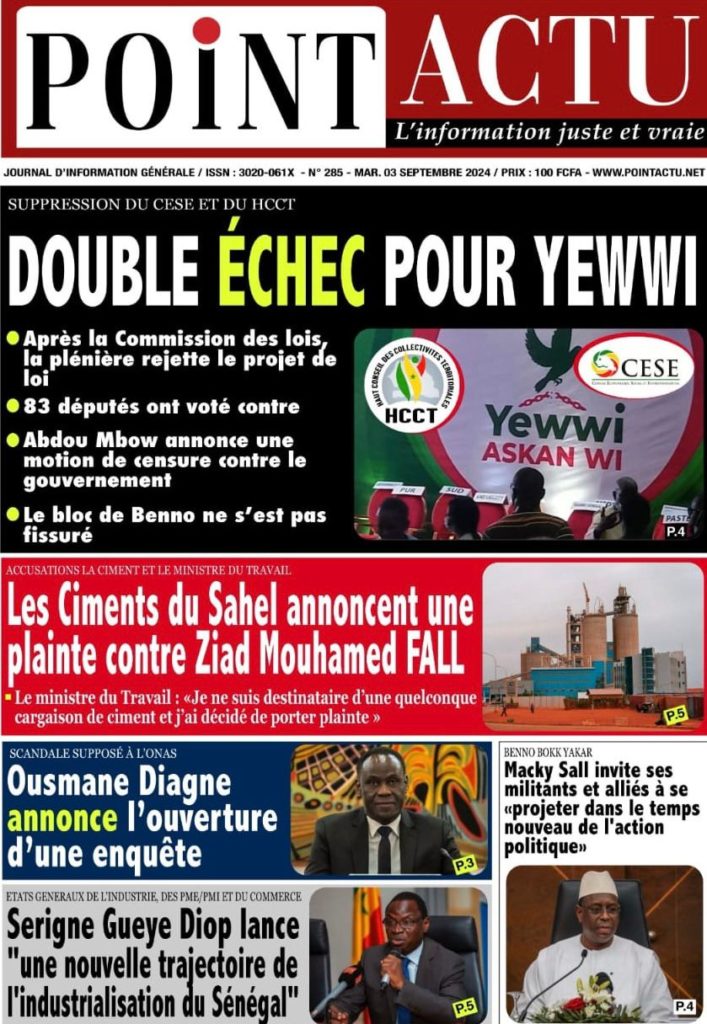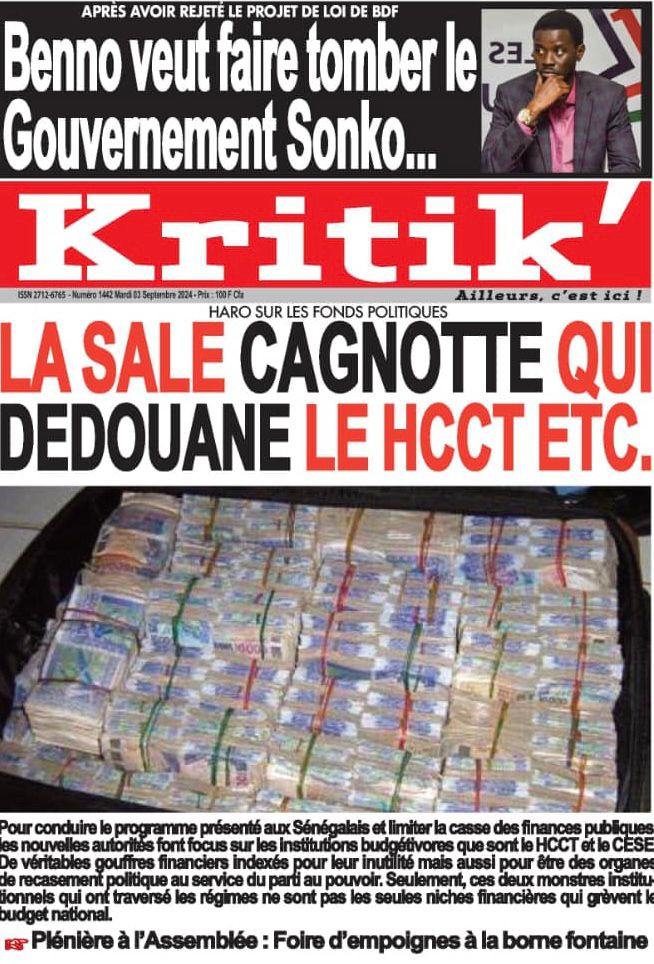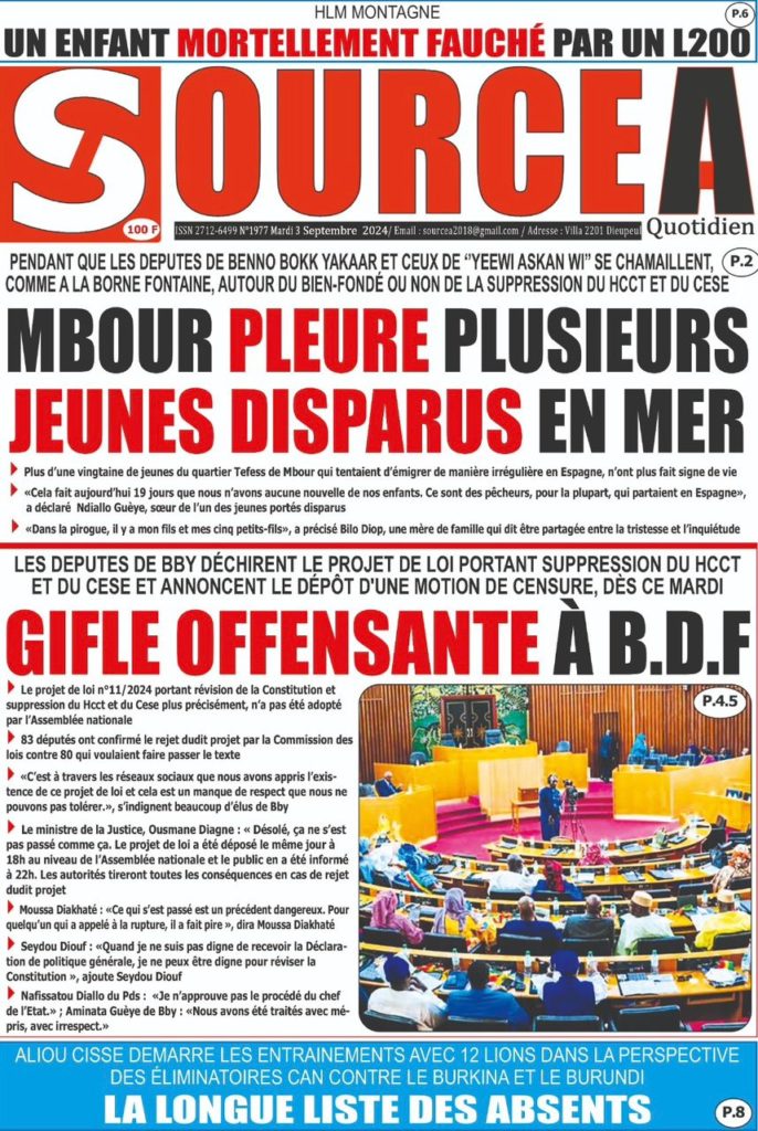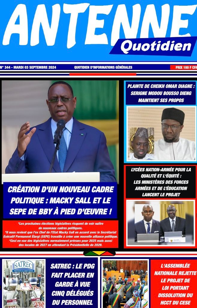 " /> La Une des Quotidiens Nationaux du 3 Septembre 2024 Publié le 3 Sep, 2024 À DÉCOUVRIR Les Unes des quotidiens nationaux du 29 novembre 2025 29 Nov, 2025 La Rédaction de SenCaféActu Partager ->