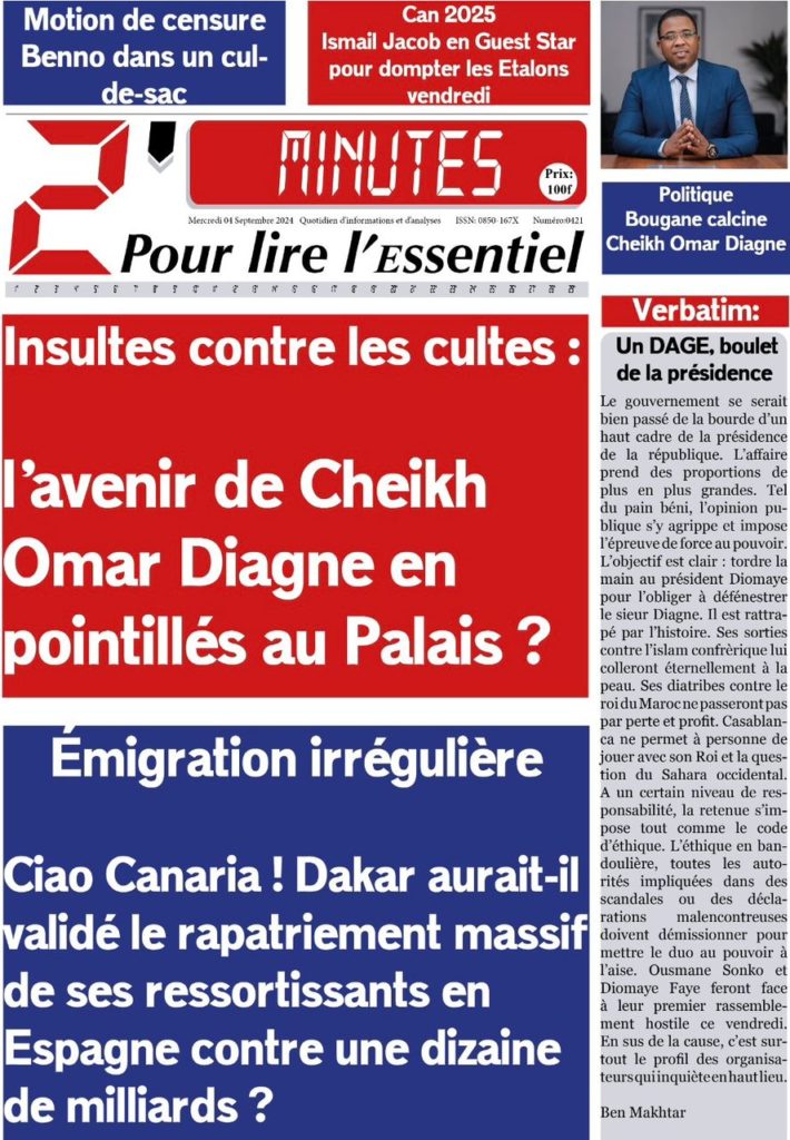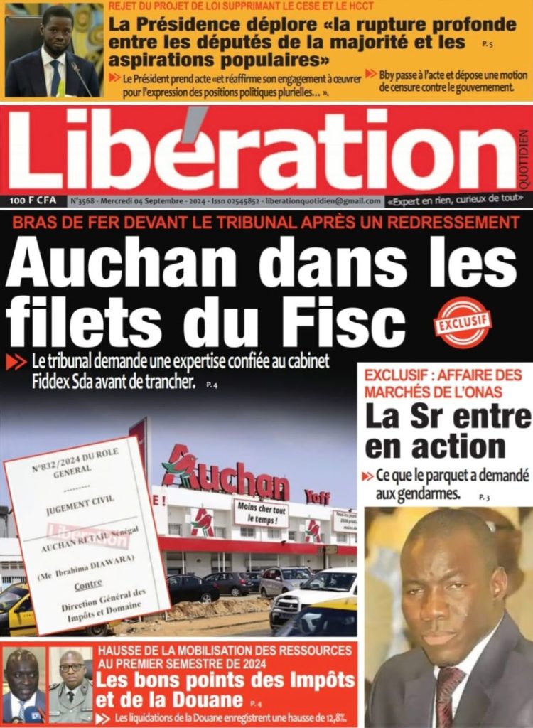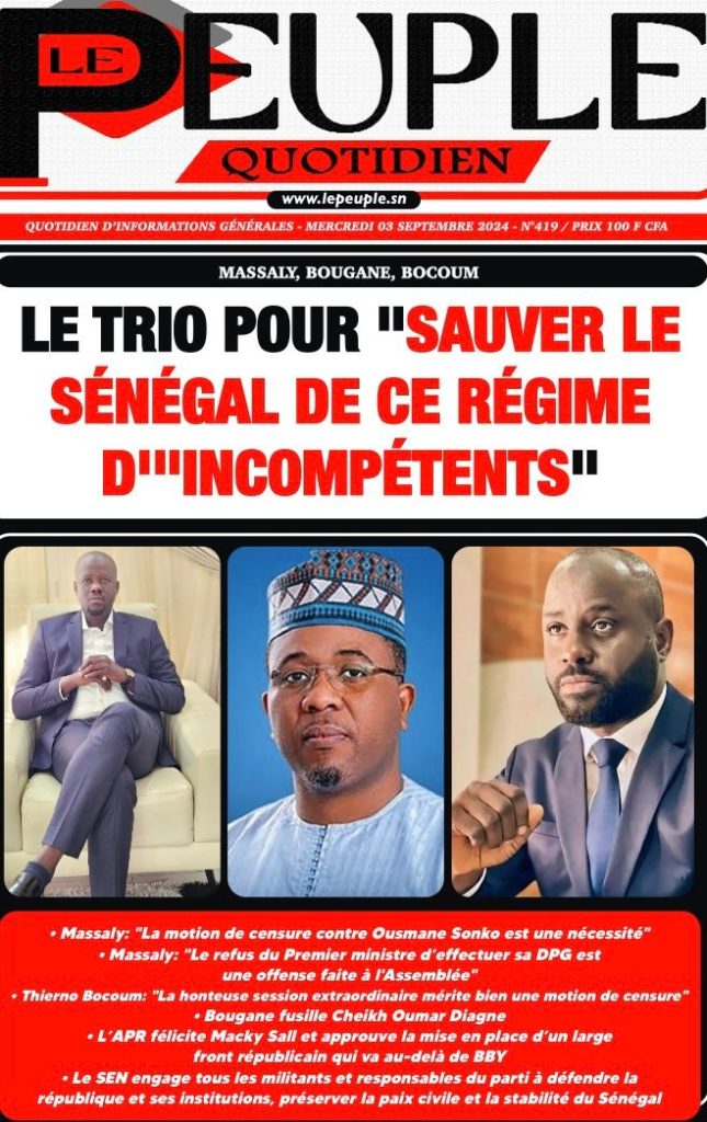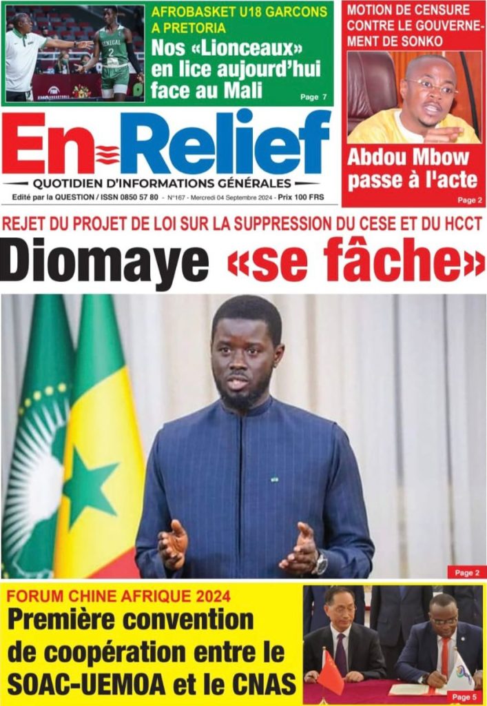 " /> La Une des Quotidiens Nationaux du 4 Septembre 2024 Publié le 4 Sep, 2024 À DÉCOUVRIR Les Unes des quotidiens nationaux du 15 novembre 2025 15 Nov, 2025 La Rédaction de SenCaféActu Partager ->