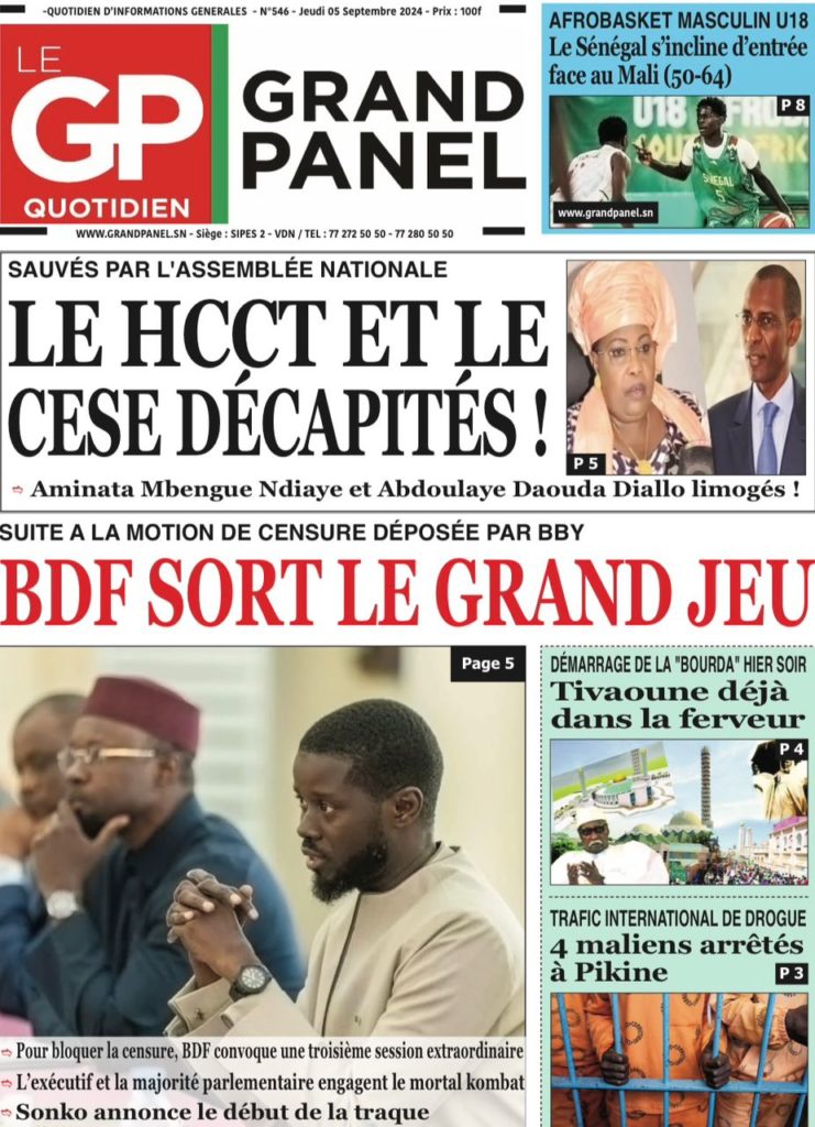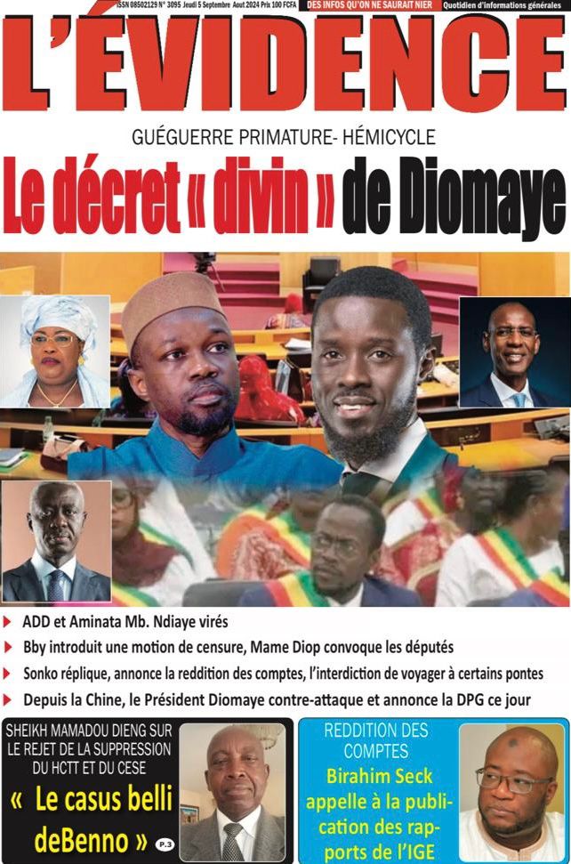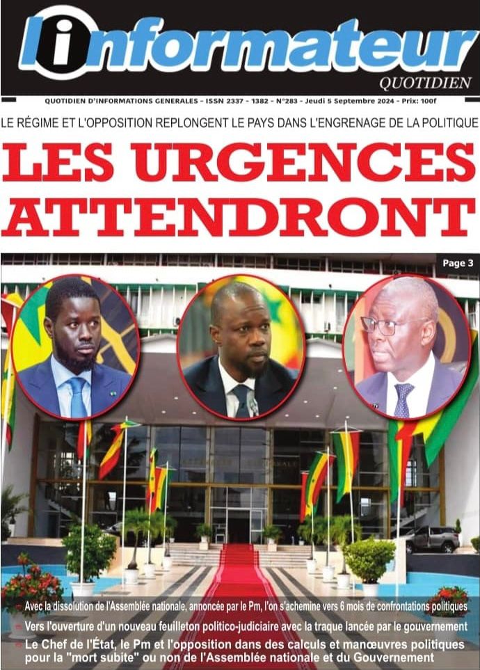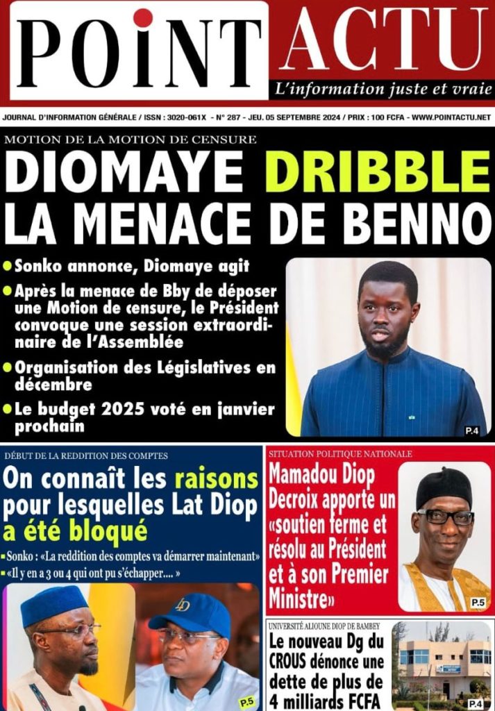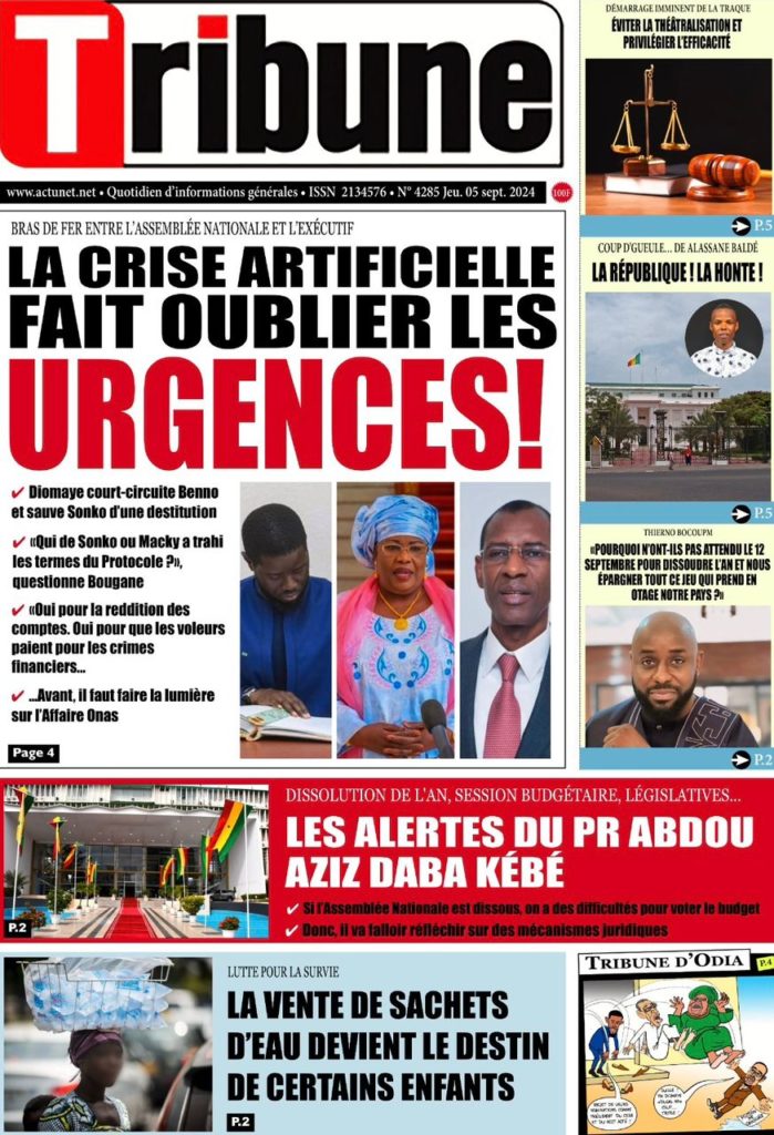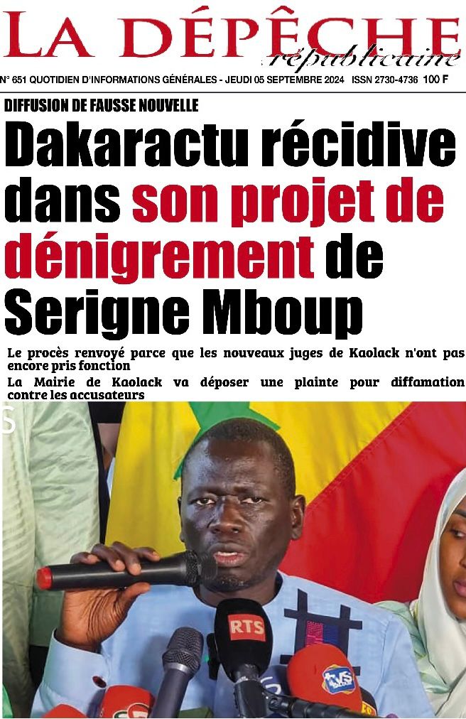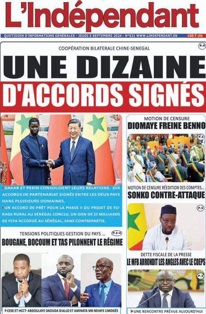 " /> La Une des Quotidiens Nationaux du 5 Septembre 2024 Publié le 5 Sep, 2024 À DÉCOUVRIR Les Unes des quotidiens nationaux du 11 novembre 2025 11 Nov, 2025 La Rédaction de SenCaféActu Partager ->