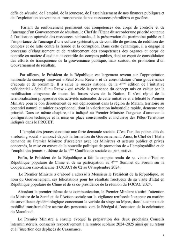" /> Communiqué du Conseil des Ministres du Mardi 10 Septembre 2024 Publié le 10 Sep, 2024 À DÉCOUVRIR Communiqué du Conseil des ministres du mercredi 1er octobre… 2 Oct, 2025 La Rédaction de SenCaféActu Partager ->