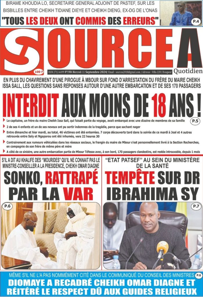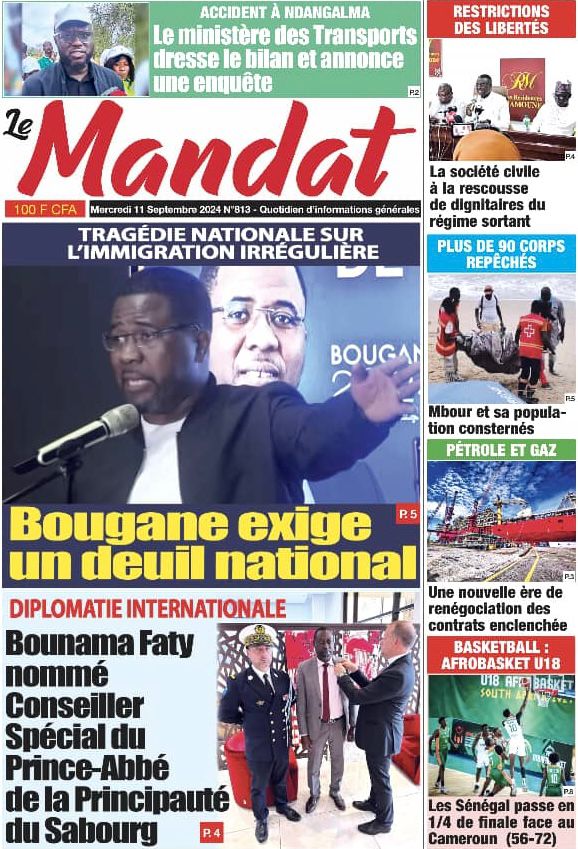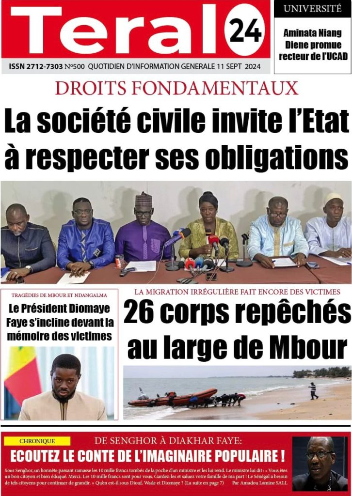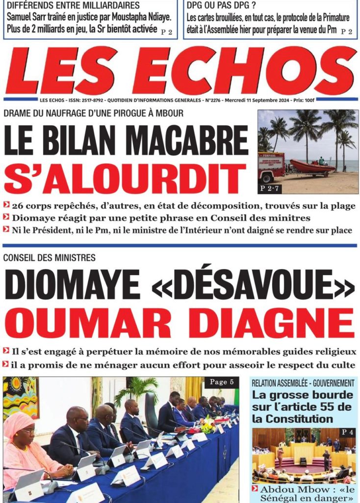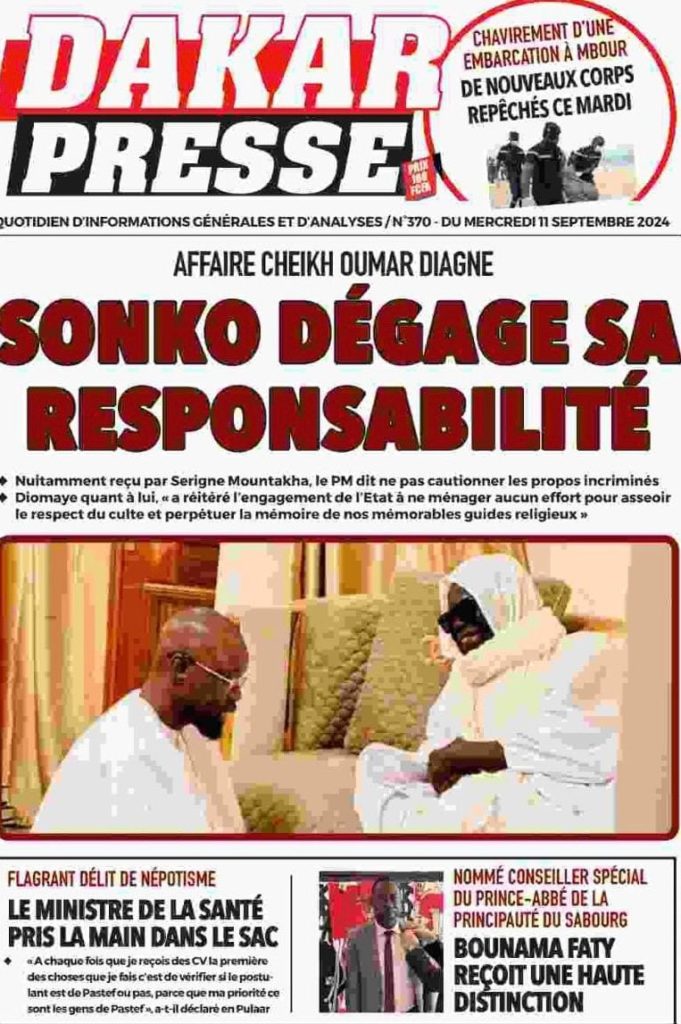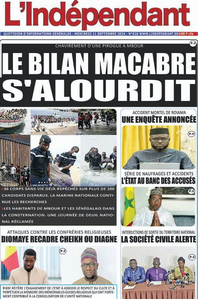 " /> La Une des Quotidiens Nationaux du 11 Septembre 2024 Publié le 11 Sep, 2024 À DÉCOUVRIR Les Unes des quotidiens nationaux du 07 novembre 2025 7 Nov, 2025 La Rédaction de SenCaféActu Partager ->
