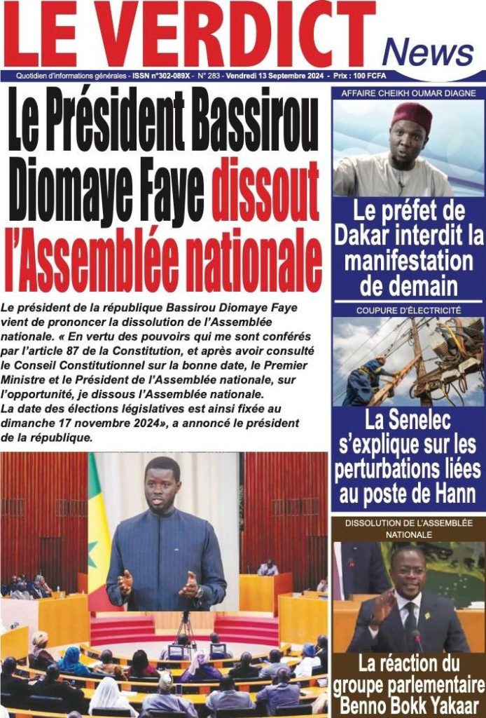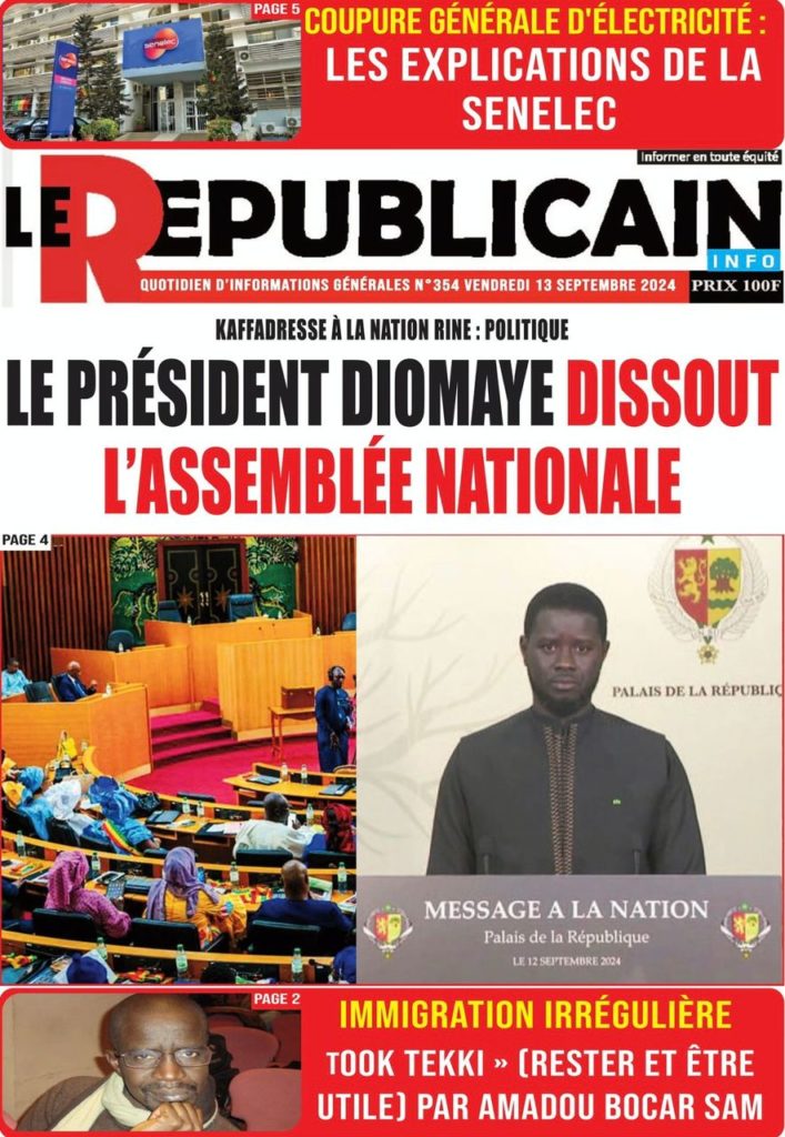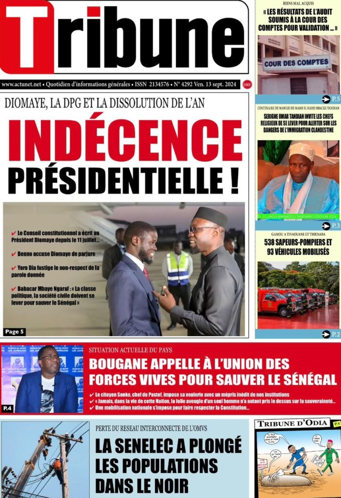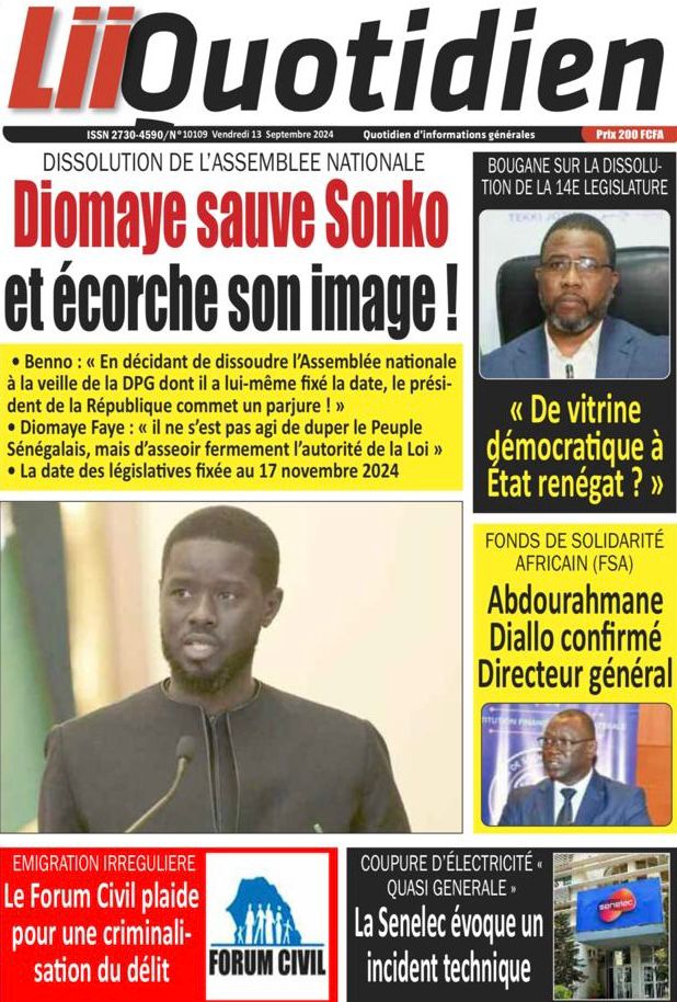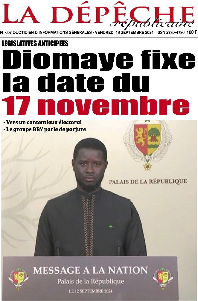 " /> La Une des Quotidiens Nationaux du 13 Septembre 2024 Publié le 13 Sep, 2024 À DÉCOUVRIR Les Unes des quotidiens nationaux du 31 octobre 2025 31 Oct, 2025 La Rédaction de SenCaféActu Partager ->