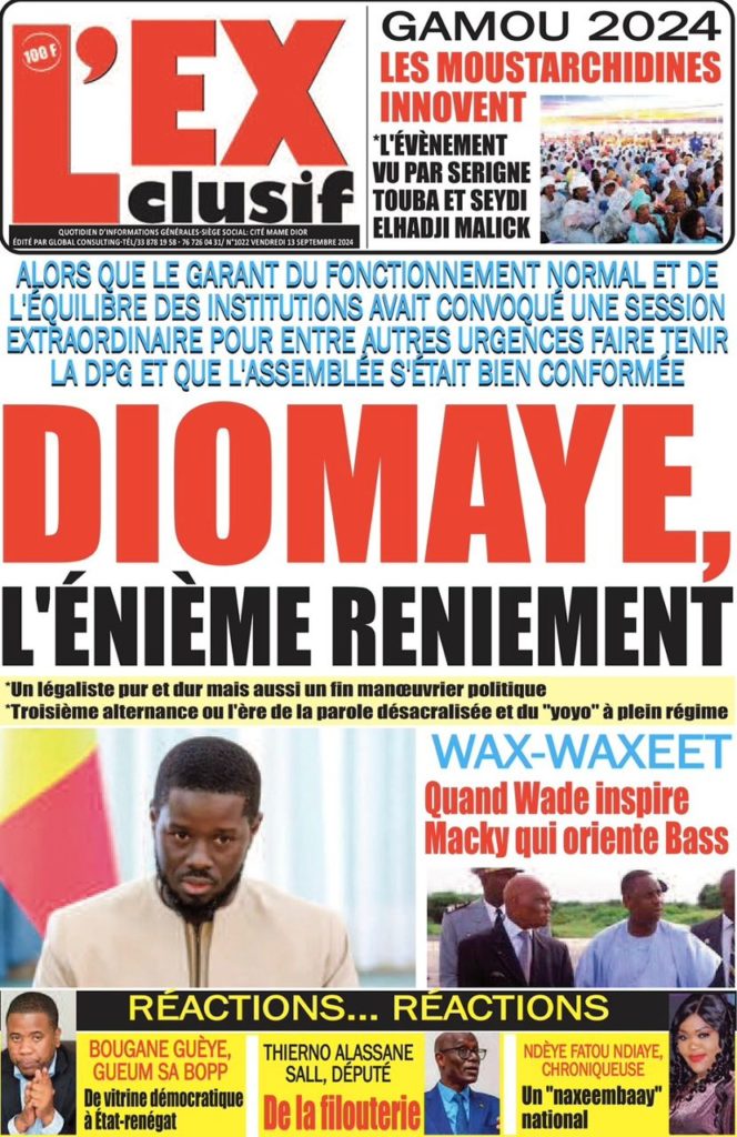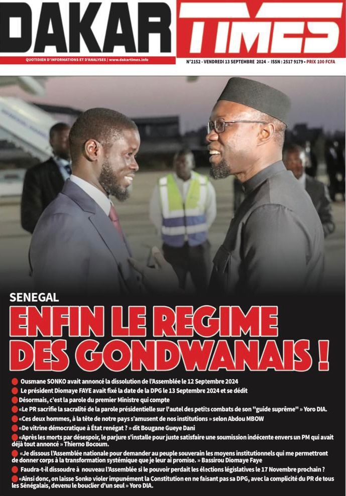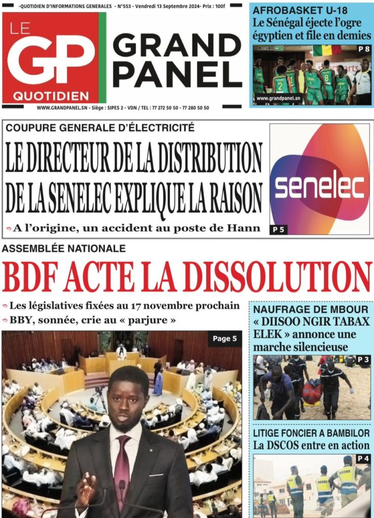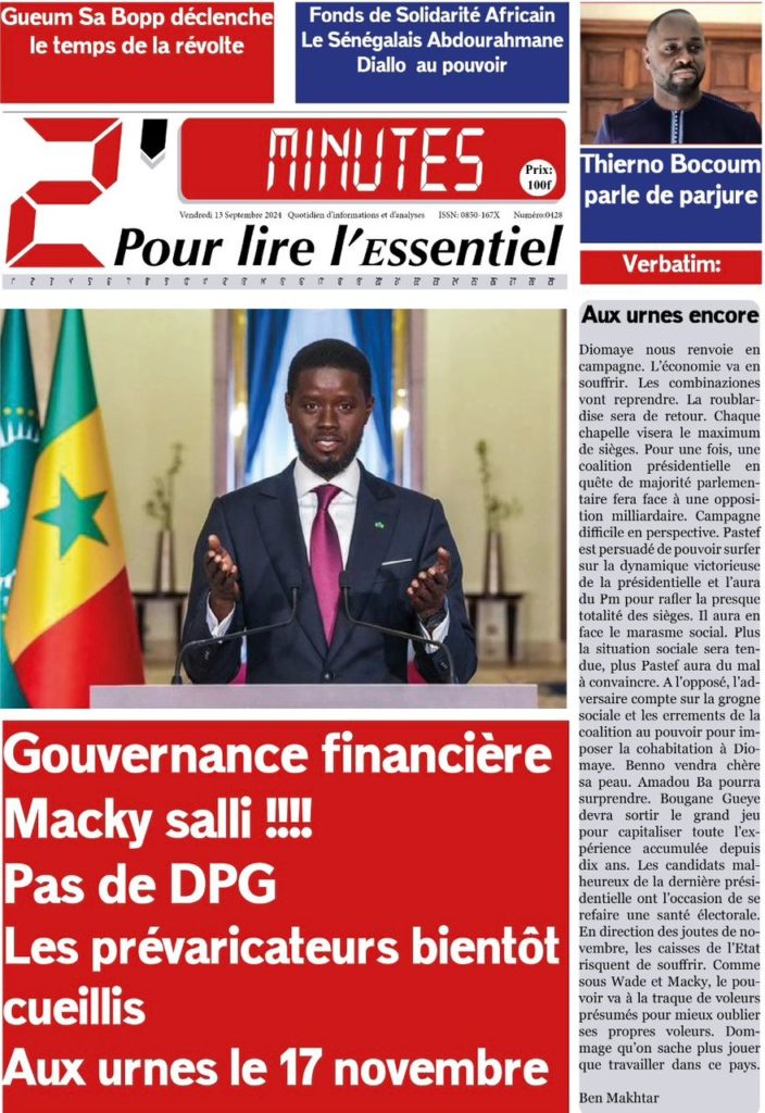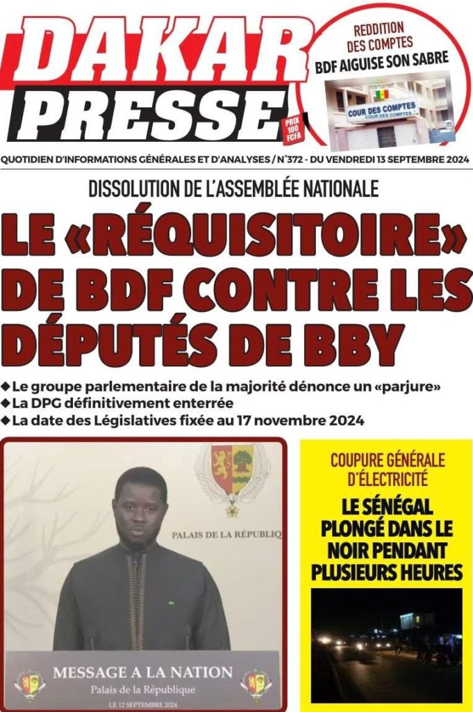 " /> La Une des Quotidiens Nationaux du 13 Septembre 2024 Publié le 13 Sep, 2024 À DÉCOUVRIR Les Unes des quotidiens nationaux du 31 octobre 2025 31 Oct, 2025 La Rédaction de SenCaféActu Partager ->