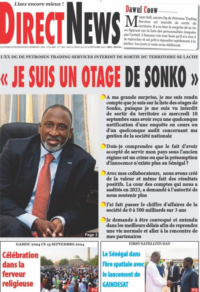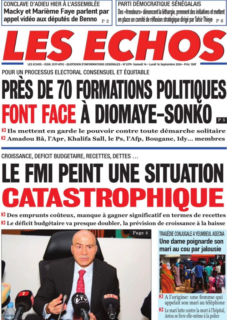 " /> La Une des Quotidiens Nationaux du 14 Septembre 2024 Publié le 14 Sep, 2024 À DÉCOUVRIR Les Unes des quotidiens nationaux du 11 novembre 2025 11 Nov, 2025 La Rédaction de SenCaféActu Partager ->