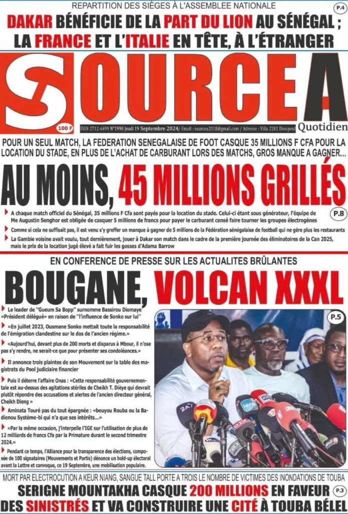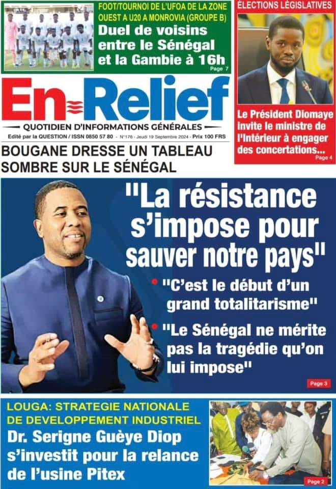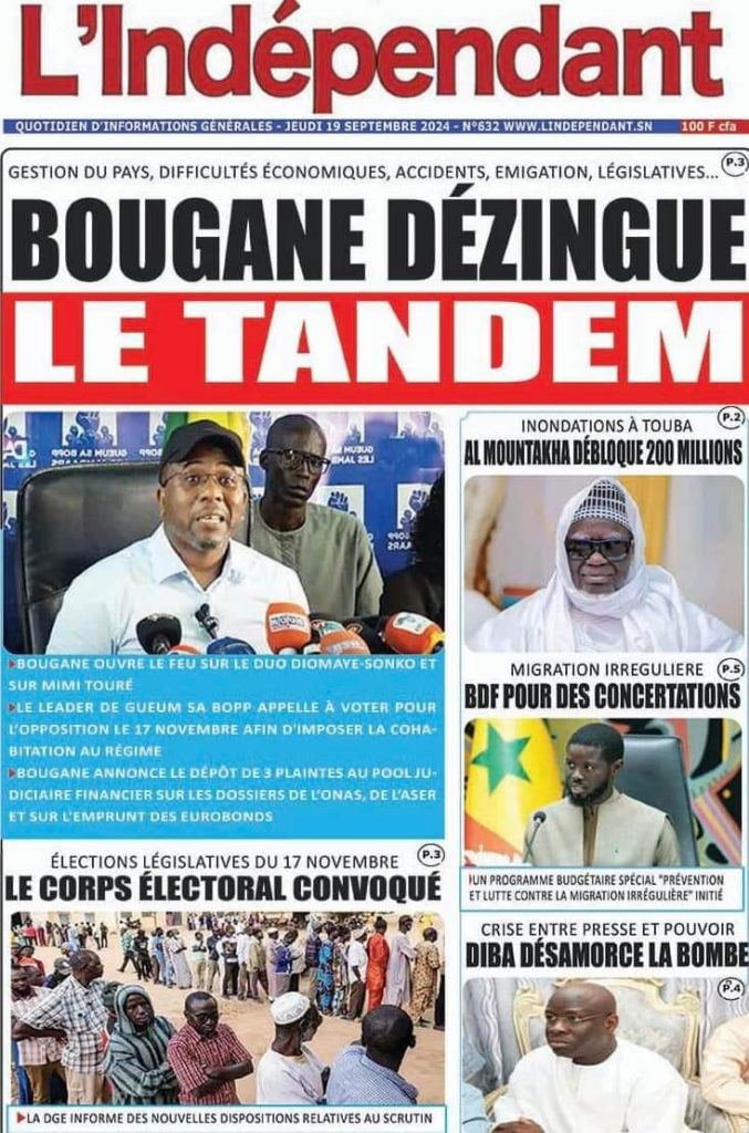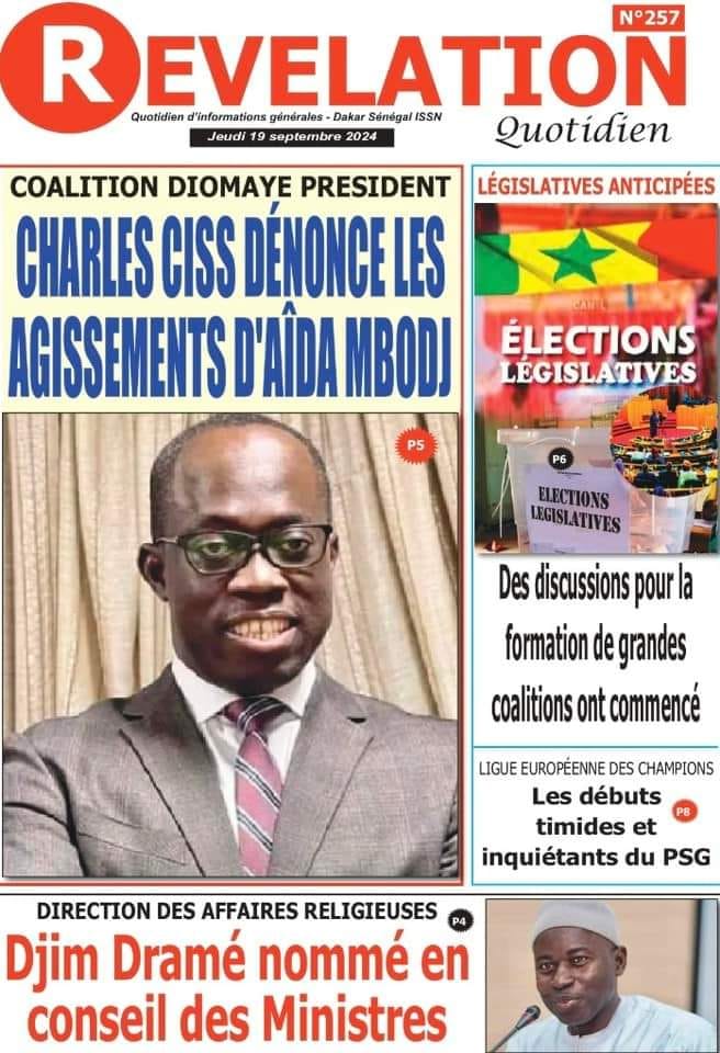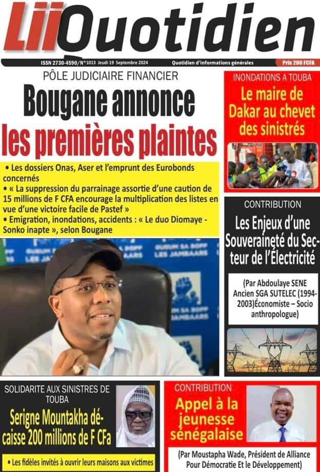 " /> La Une des Quotidiens Nationaux du 19 Septembre 2024 Publié le 19 Sep, 2024 À DÉCOUVRIR Les Unes des quotidiens nationaux du 29 novembre 2025 29 Nov, 2025 La Rédaction de SenCaféActu Partager ->