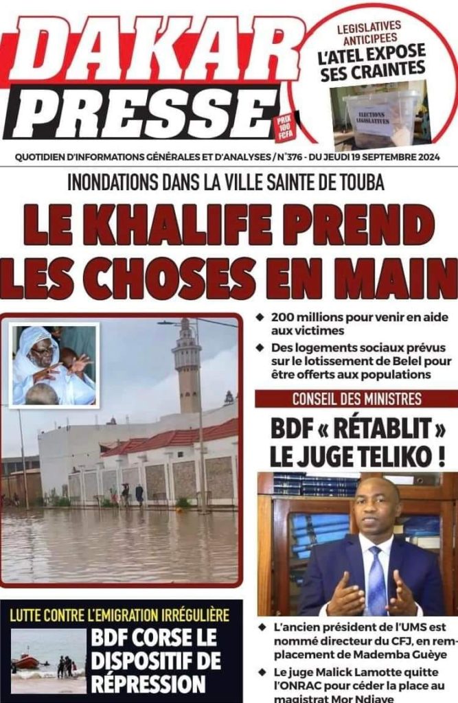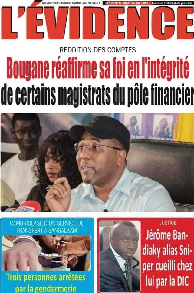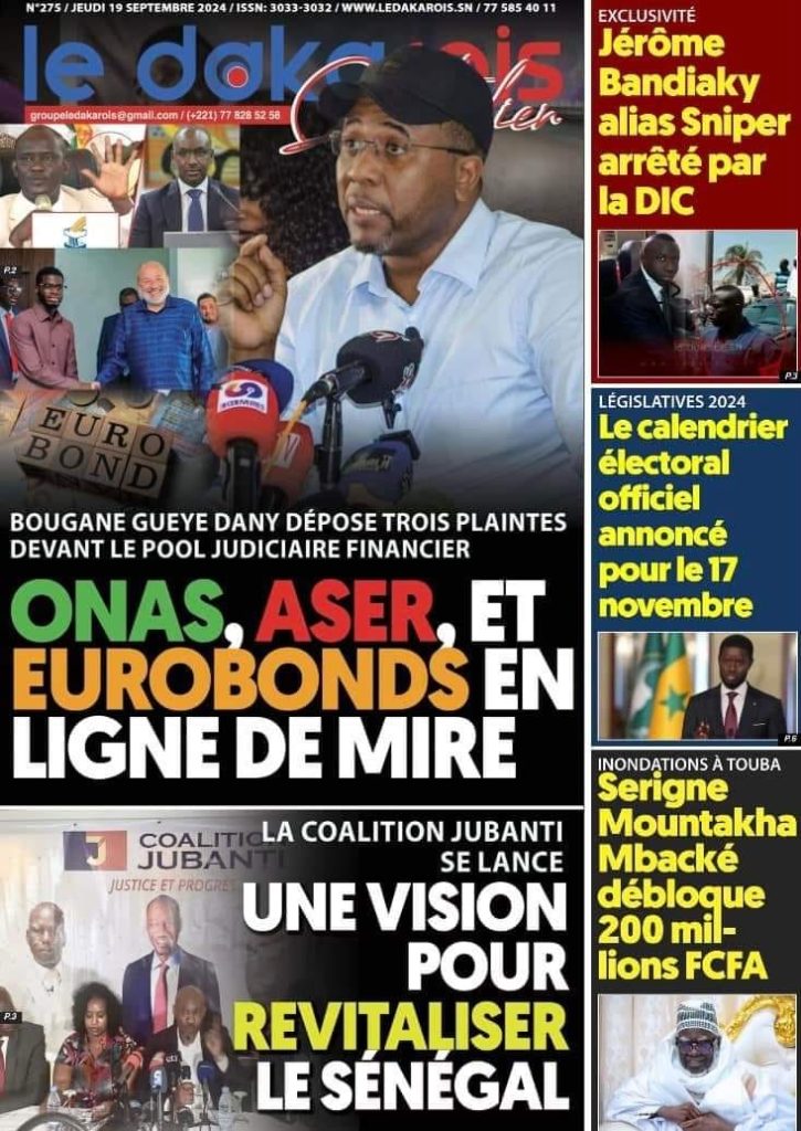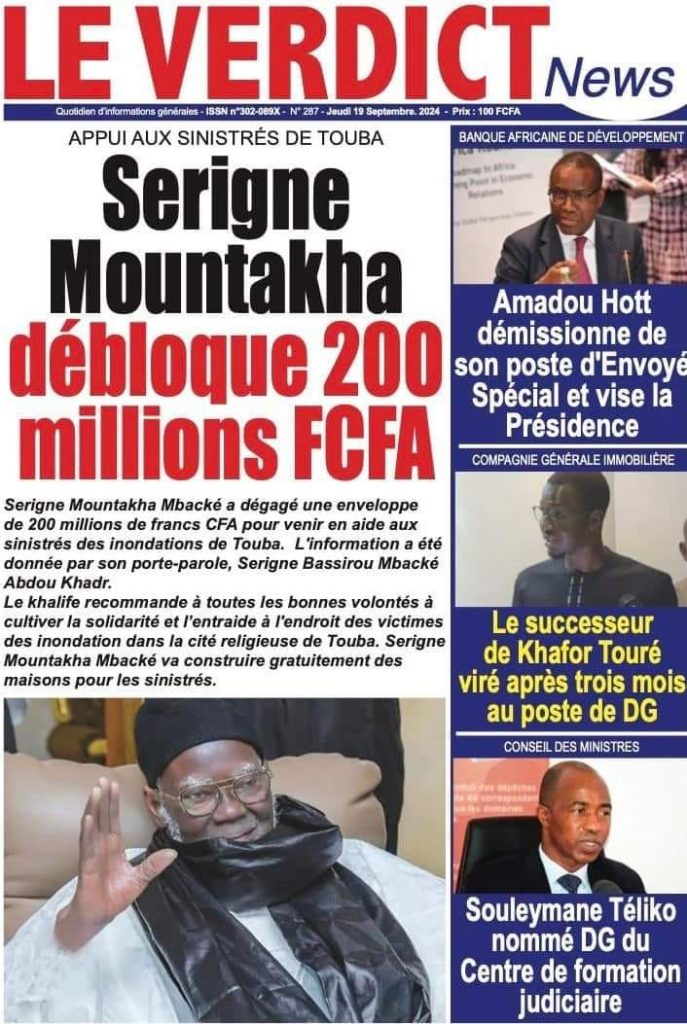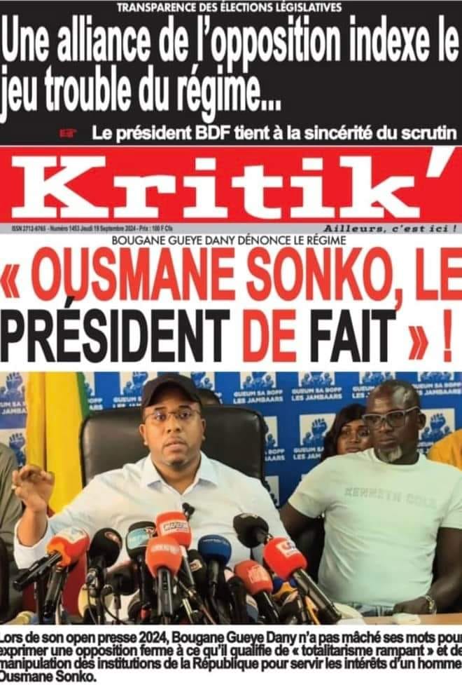 " /> La Une des Quotidiens Nationaux du 19 Septembre 2024 Publié le 19 Sep, 2024 À DÉCOUVRIR Les Unes des quotidiens nationaux du 29 novembre 2025 29 Nov, 2025 La Rédaction de SenCaféActu Partager ->
