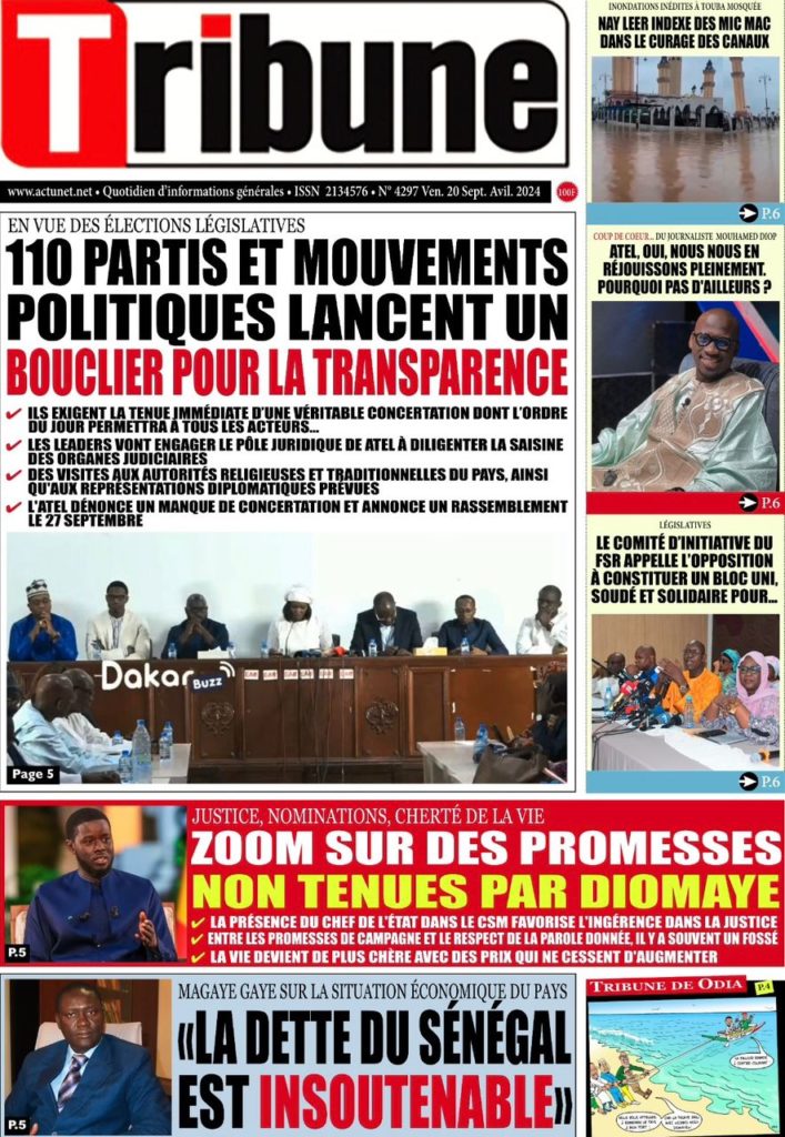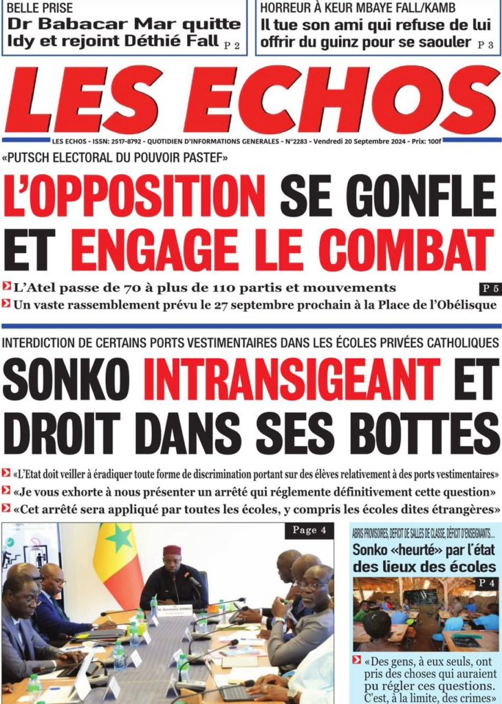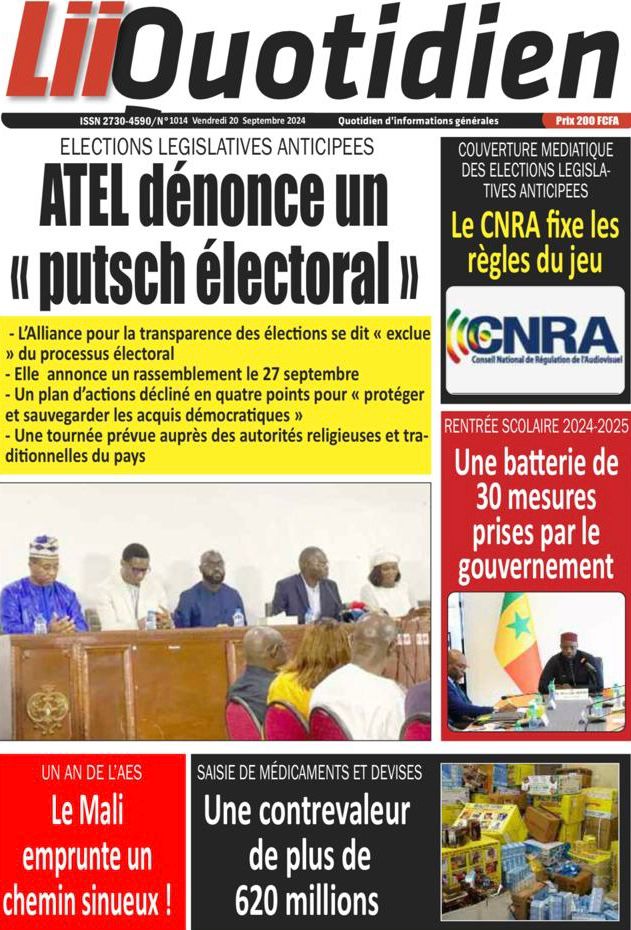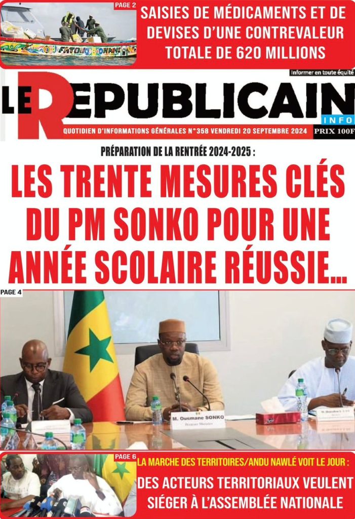 " /> La Une des Quotidiens Nationaux du 20 Septembre 2024 Publié le 20 Sep, 2024 À DÉCOUVRIR Les Unes des quotidiens nationaux du 05 novembre 2025 5 Nov, 2025 La Rédaction de SenCaféActu Partager ->