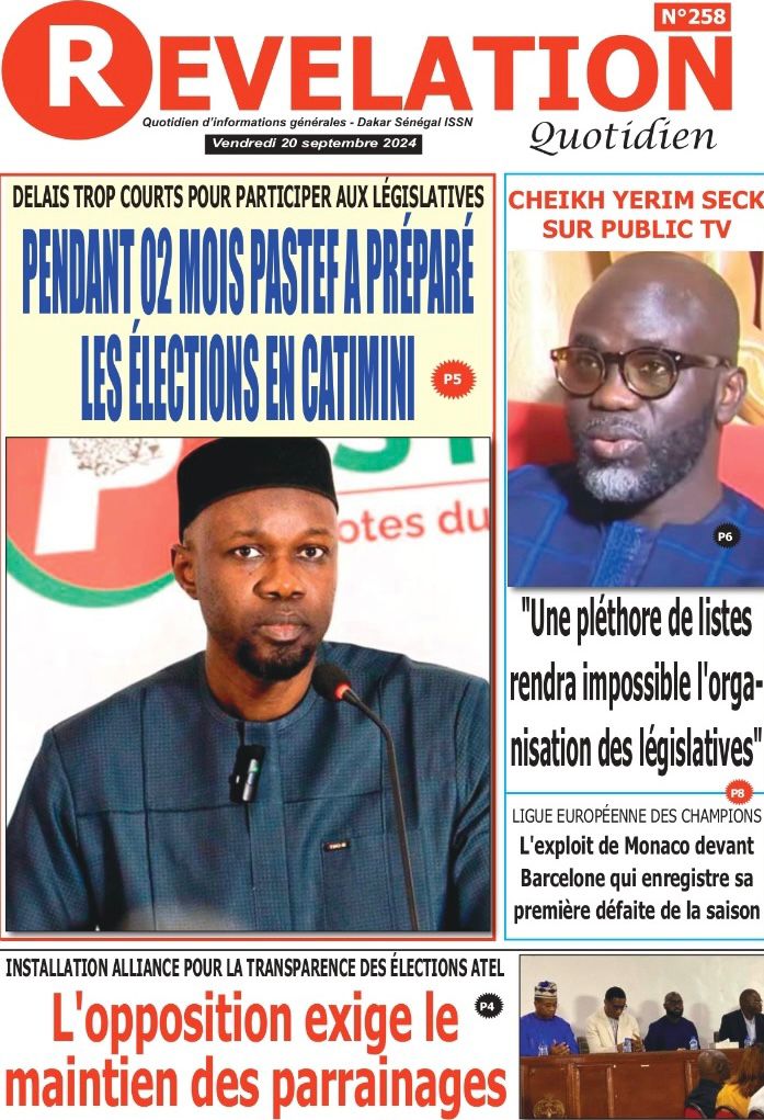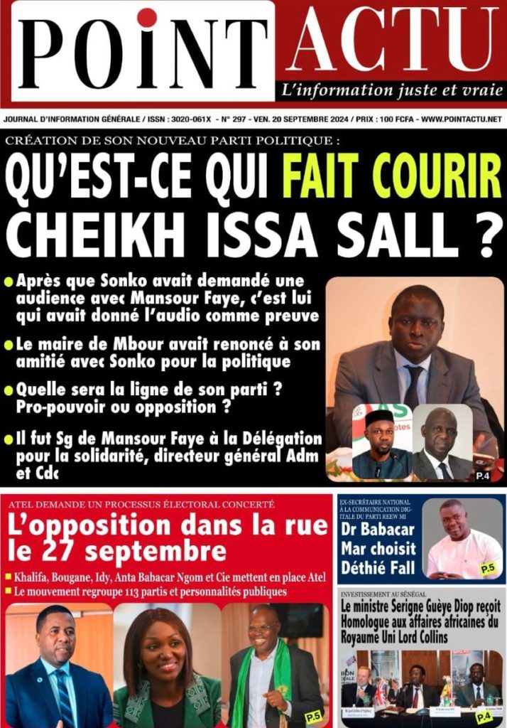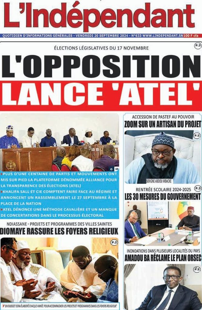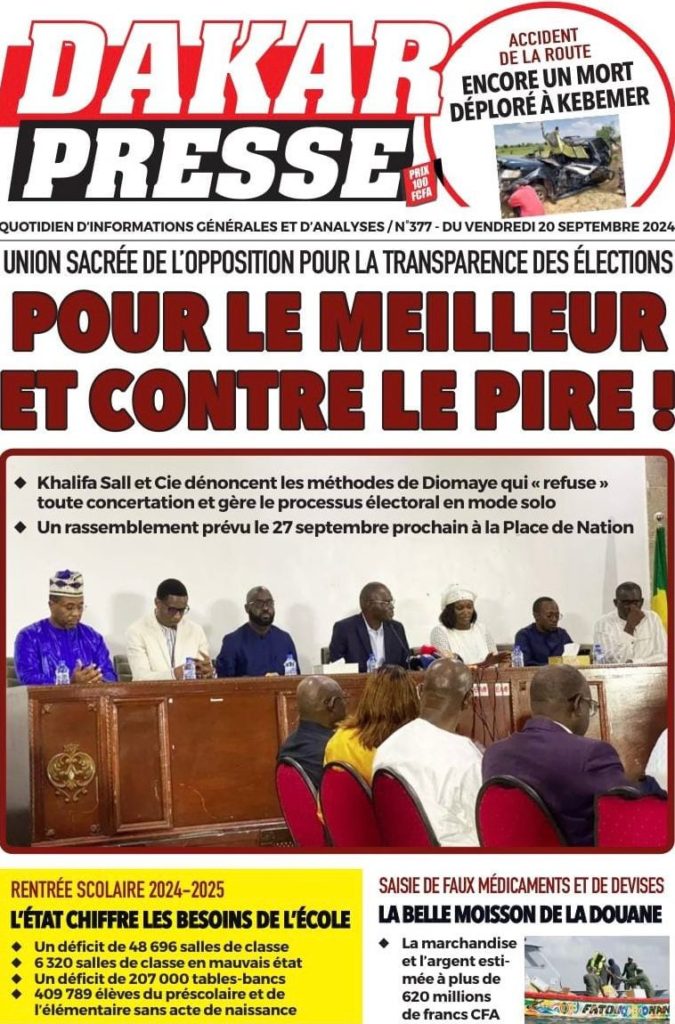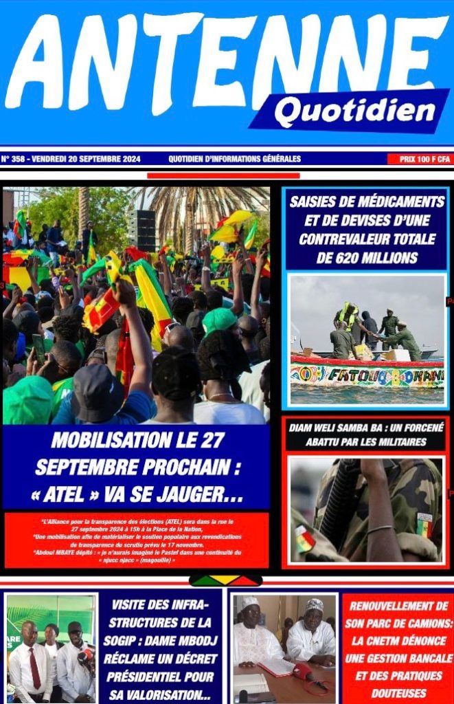 " /> La Une des Quotidiens Nationaux du 20 Septembre 2024 Publié le 20 Sep, 2024 À DÉCOUVRIR Les Unes des quotidiens nationaux du 05 novembre 2025 5 Nov, 2025 La Rédaction de SenCaféActu Partager ->