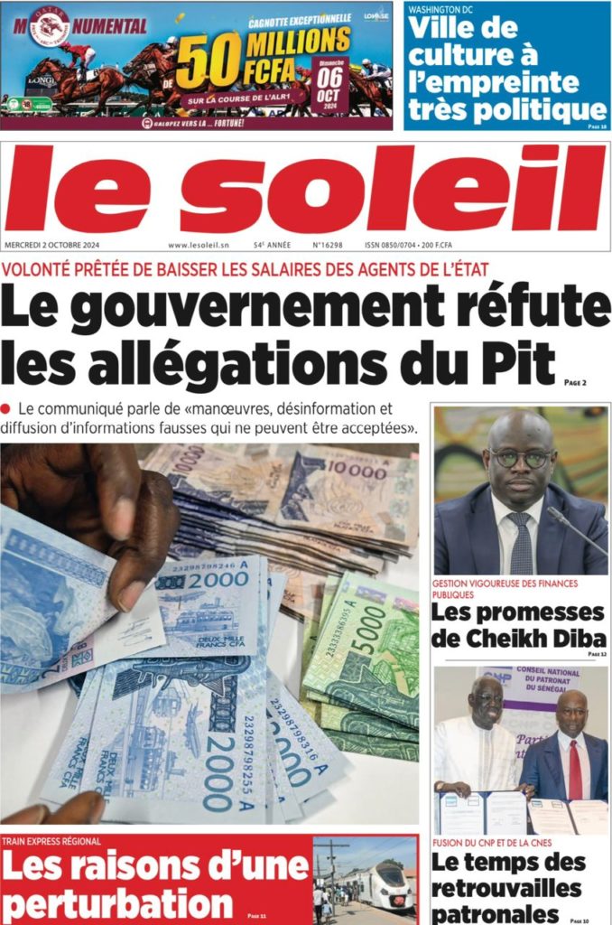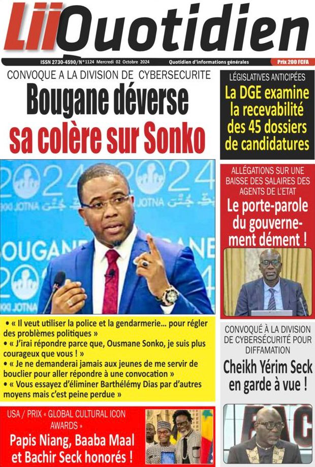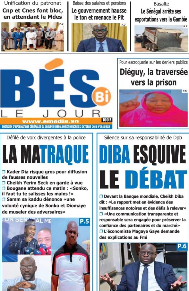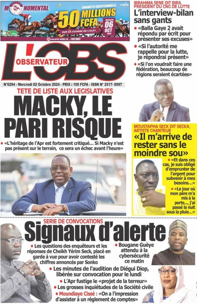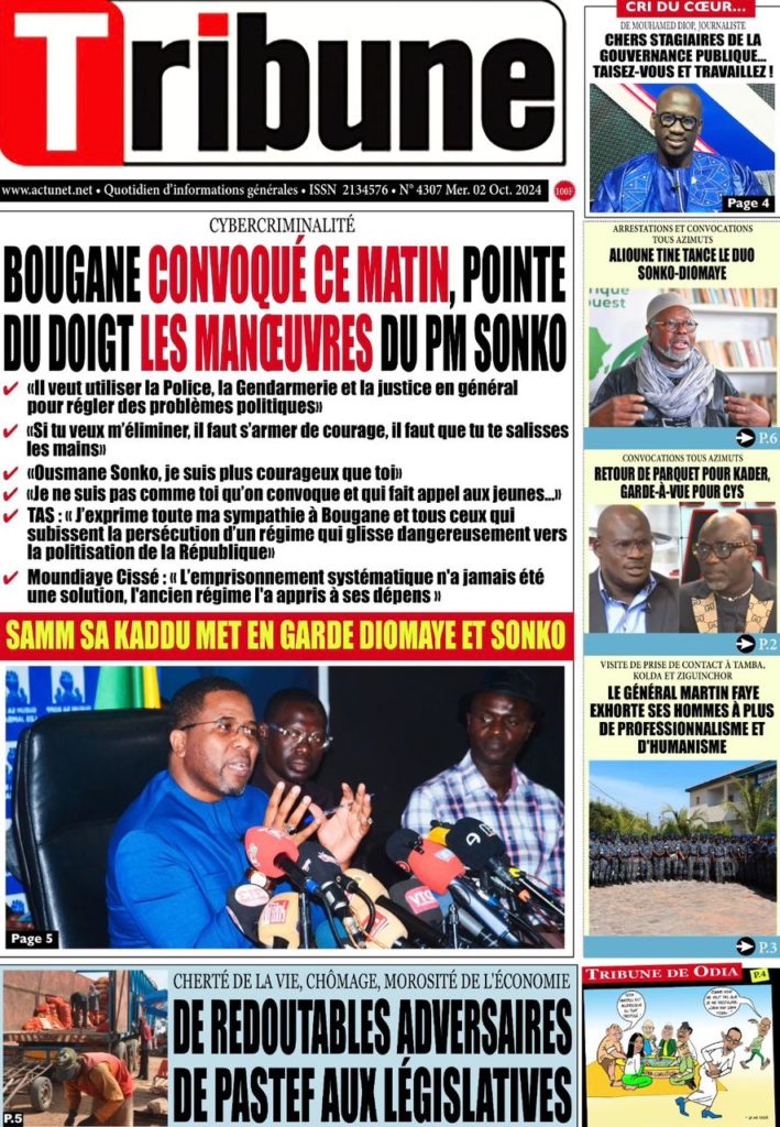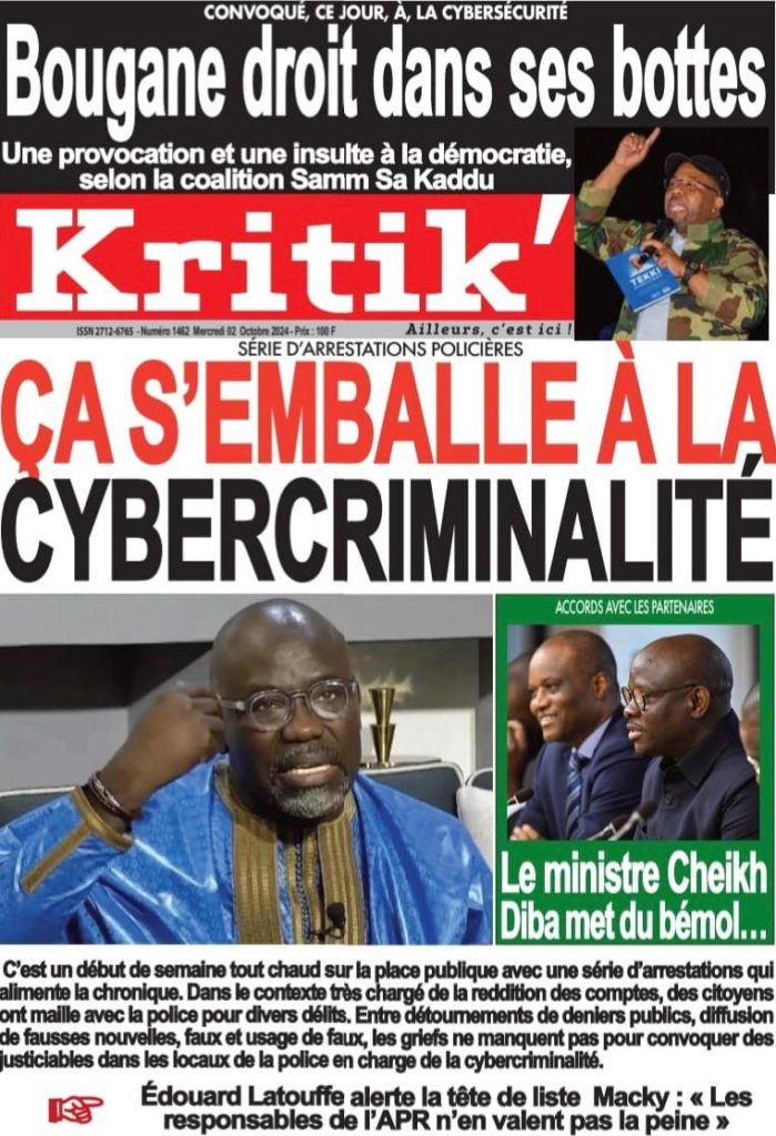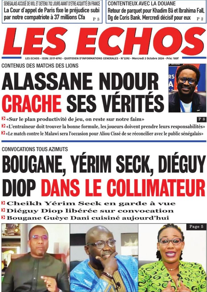 " /> La Une des Quotidiens Nationaux du 2 Octobre 2024 Publié le 2 Oct, 2024 À DÉCOUVRIR Les Unes des quotidiens nationaux du 24 octobre 2025 24 Oct, 2025 La Rédaction de SenCaféActu Partager ->