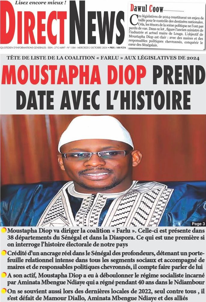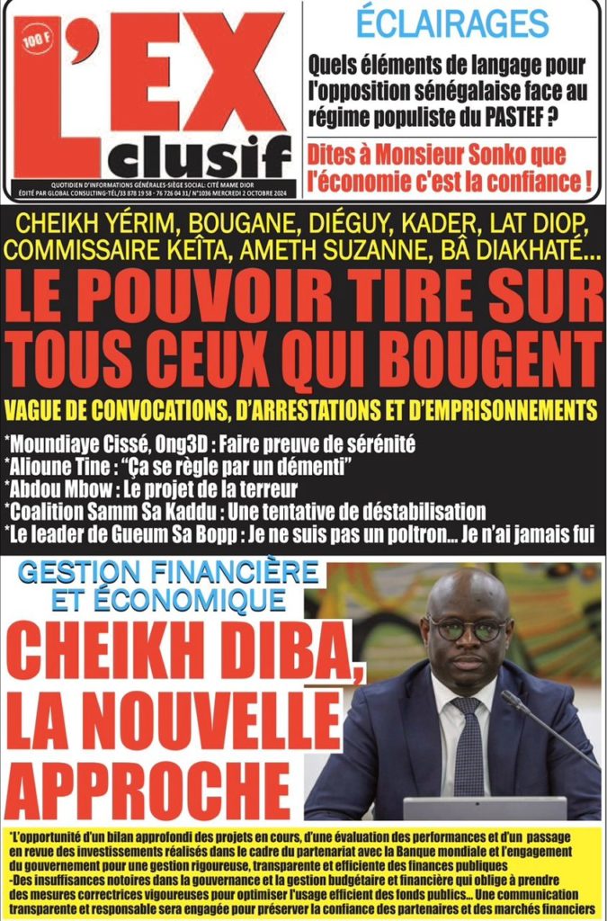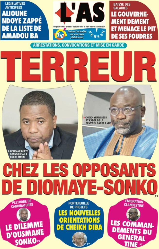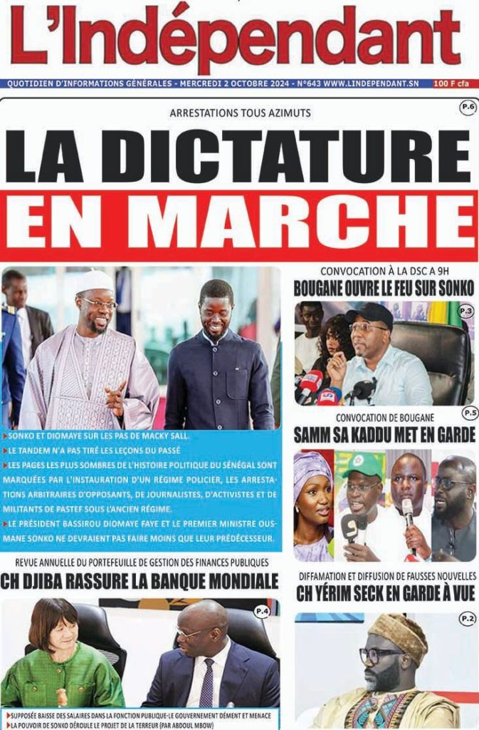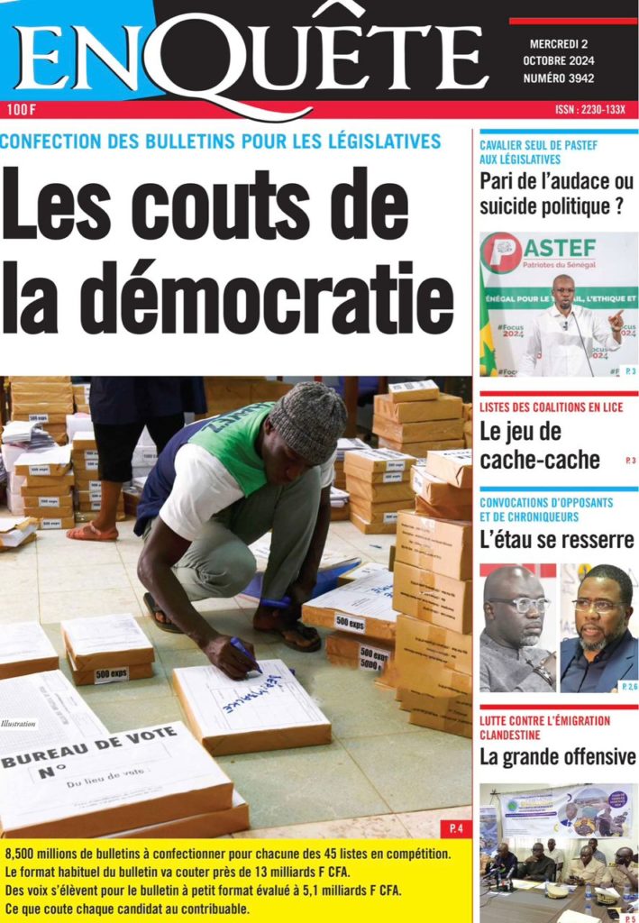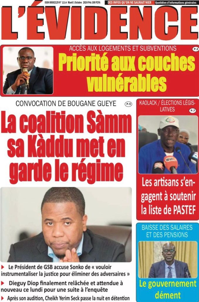 " /> La Une des Quotidiens Nationaux du 2 Octobre 2024 Publié le 2 Oct, 2024 À DÉCOUVRIR Les Unes des quotidiens nationaux du 24 octobre 2025 24 Oct, 2025 La Rédaction de SenCaféActu Partager ->