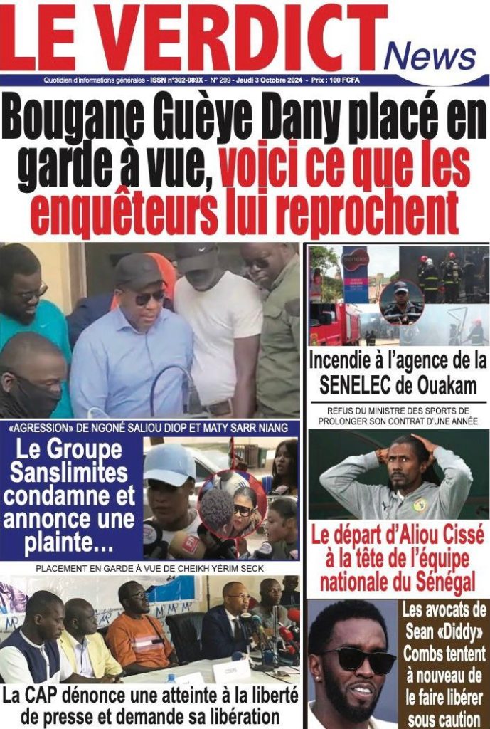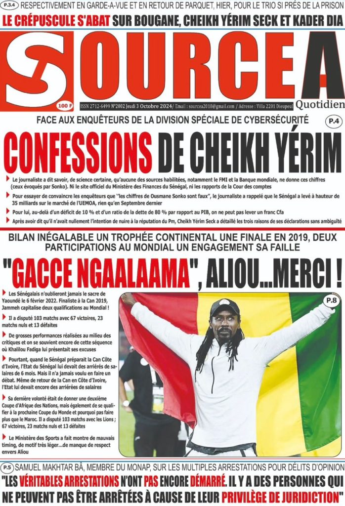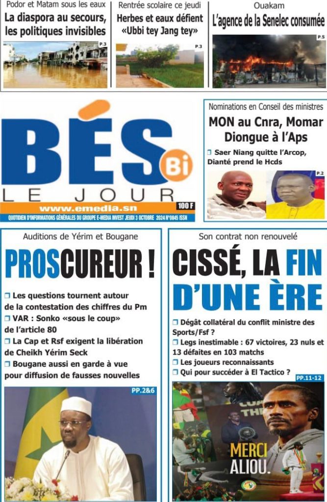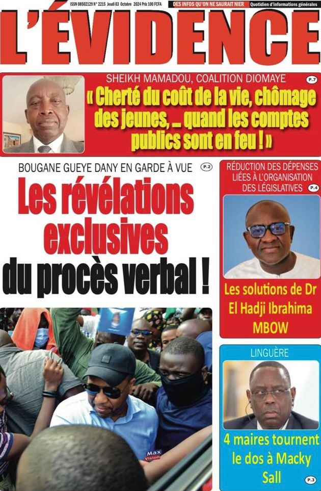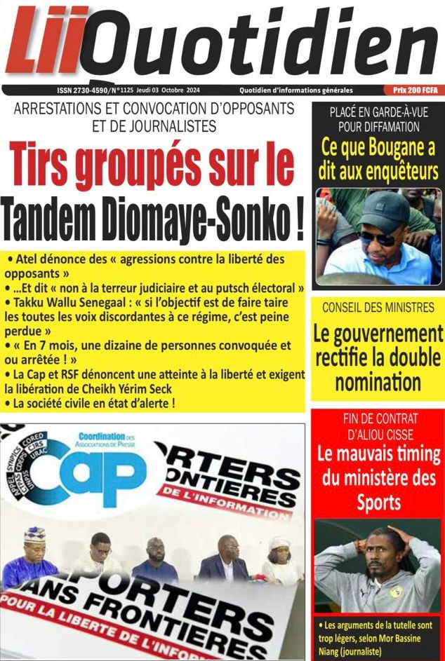 " /> La Une des Quotidiens Nationaux du 3 Octobre 2024 Publié le 3 Oct, 2024 À DÉCOUVRIR Les Unes des quotidiens nationaux du 27 novembre 2025 27 Nov, 2025 La Rédaction de SenCaféActu Partager ->