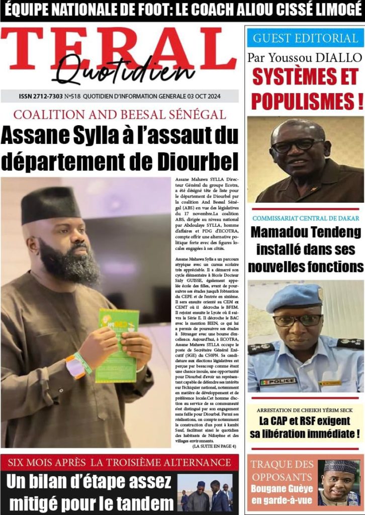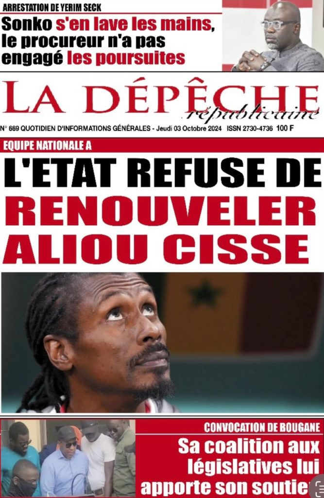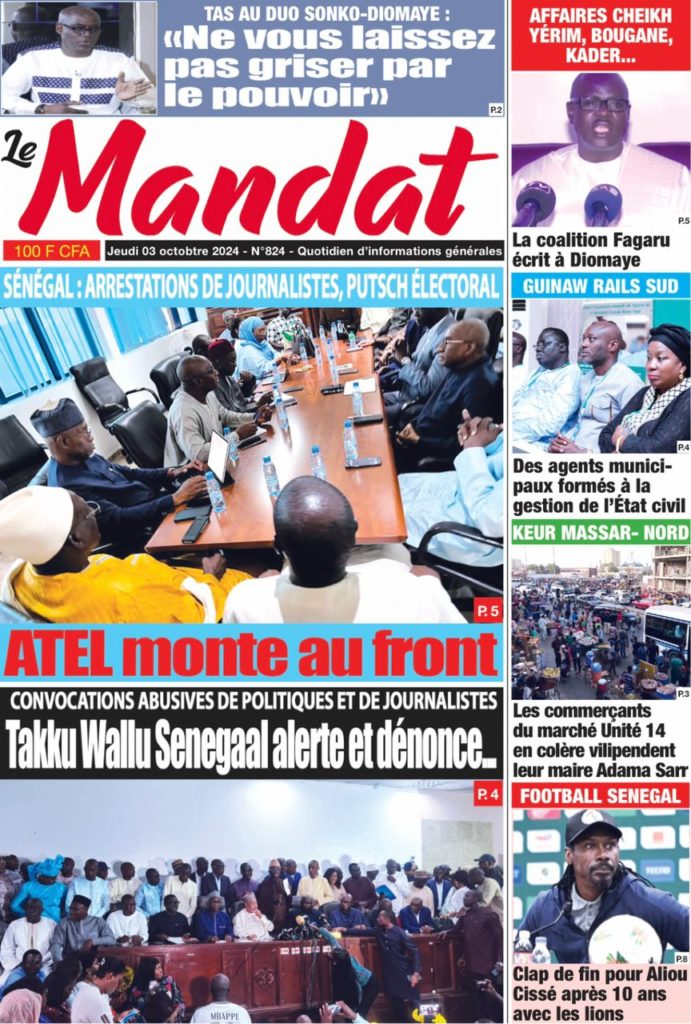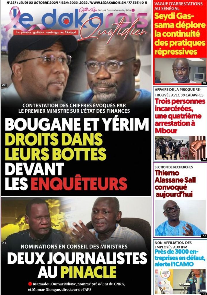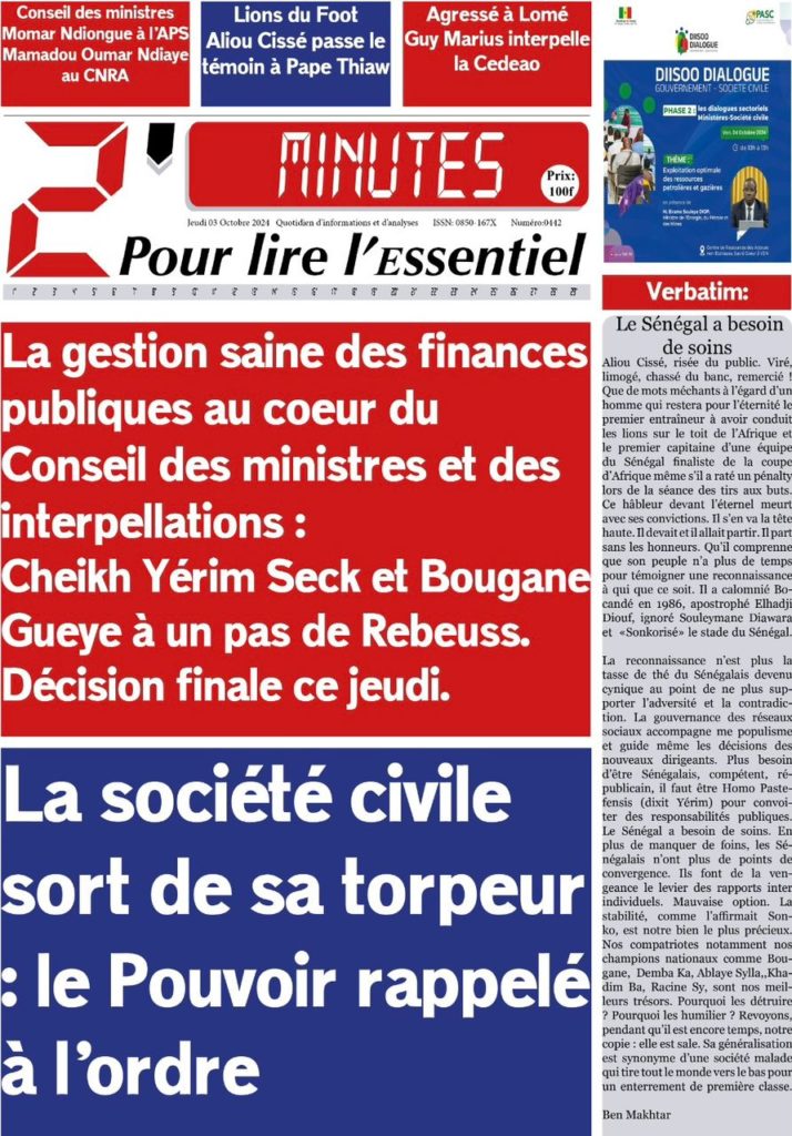 " /> La Une des Quotidiens Nationaux du 3 Octobre 2024 Publié le 3 Oct, 2024 À DÉCOUVRIR Les Unes des quotidiens nationaux du 27 novembre 2025 27 Nov, 2025 La Rédaction de SenCaféActu Partager ->