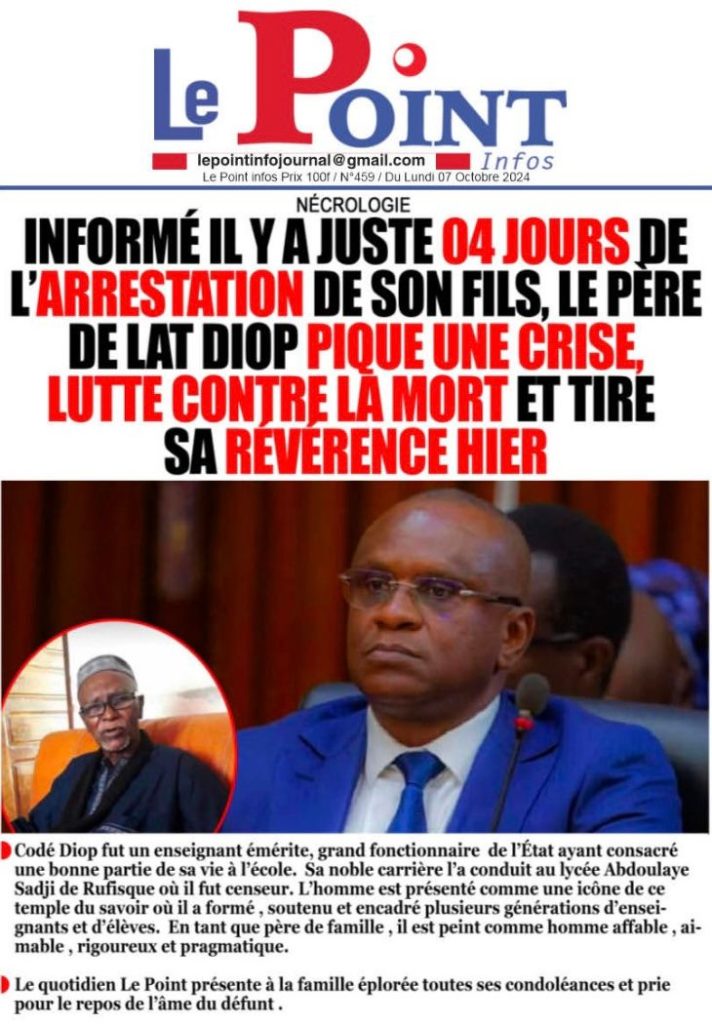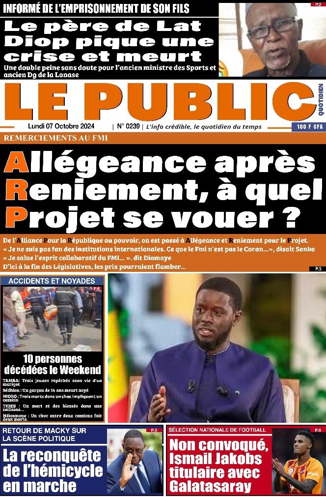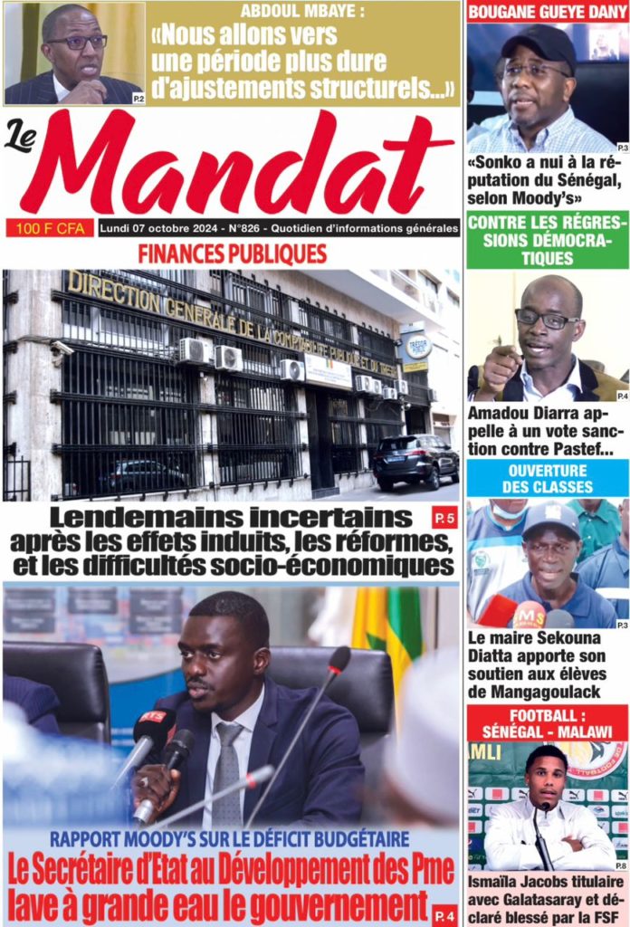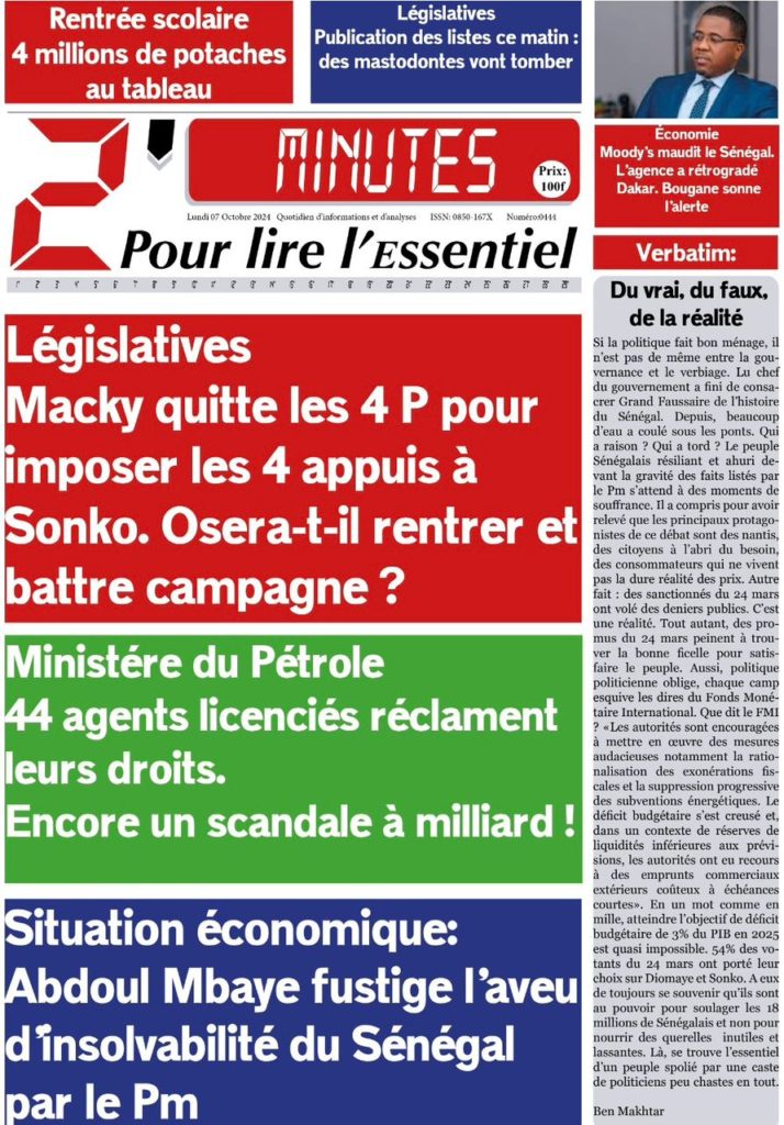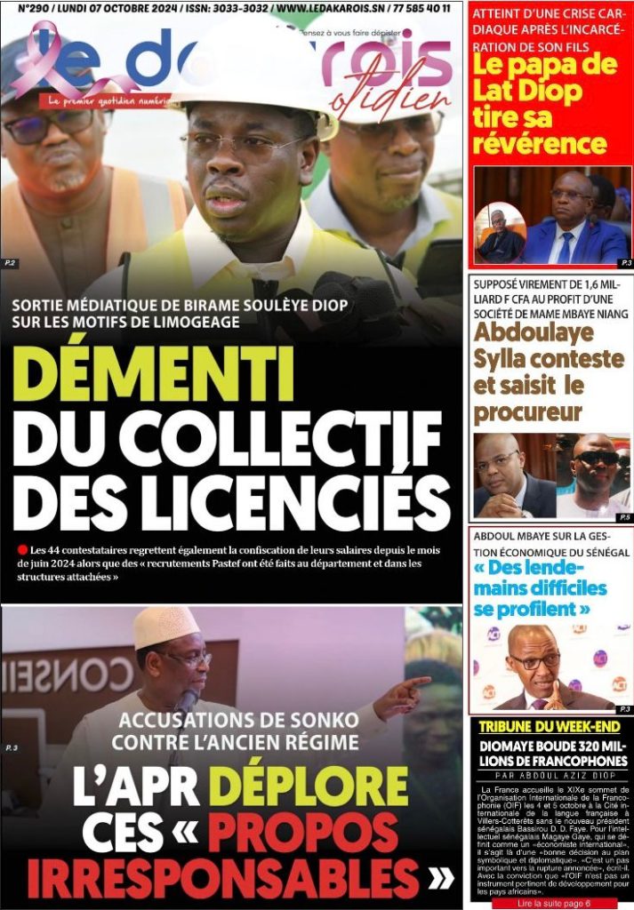 " /> La Une des Quotidiens Nationaux du 07 Octobre 2024 Publié le 7 Oct, 2024 À DÉCOUVRIR Les Unes des quotidiens nationaux du 29 octobre 2025 29 Oct, 2025 La Rédaction de SenCaféActu Partager ->