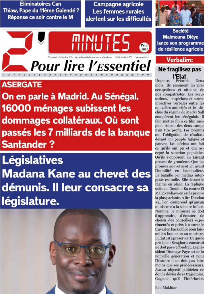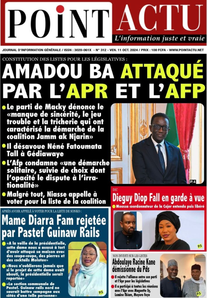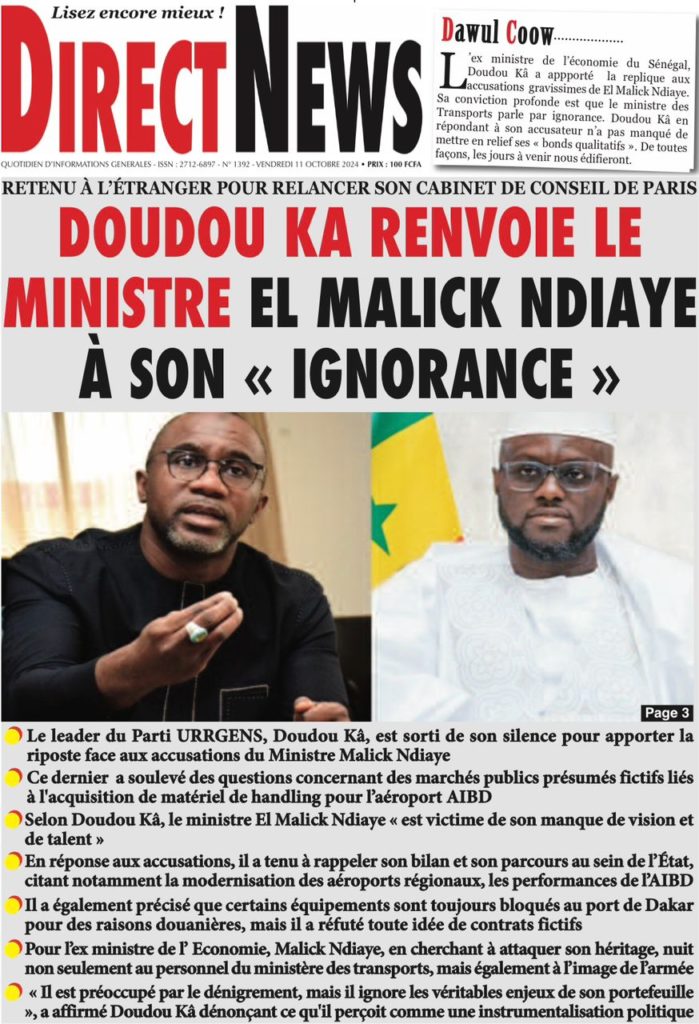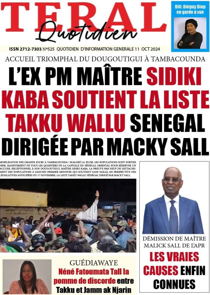 " /> La Une des Quotidiens Nationaux du 11 Octobre 2024 Publié le 11 Oct, 2024 À DÉCOUVRIR Les Unes des quotidiens nationaux du 05 novembre 2025 5 Nov, 2025 La Rédaction de SenCaféActu Partager ->