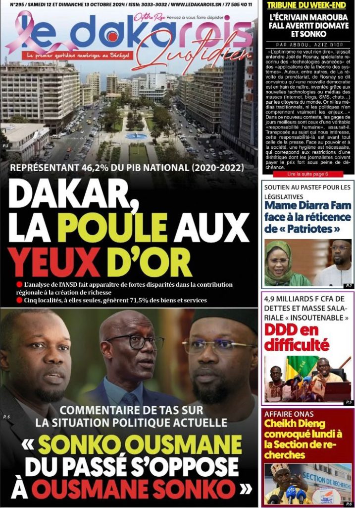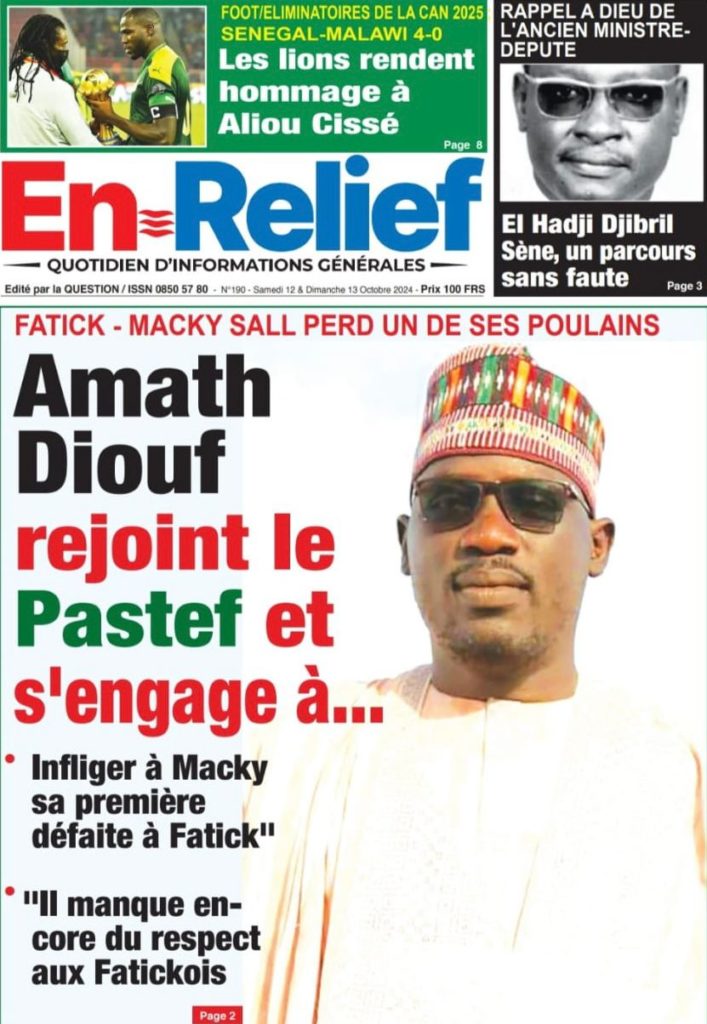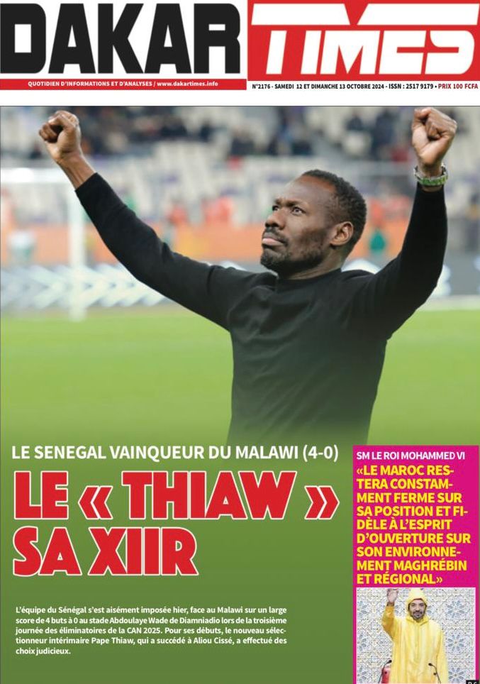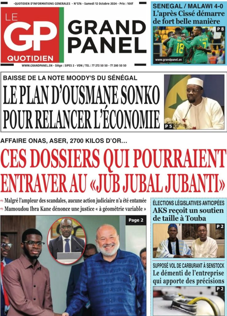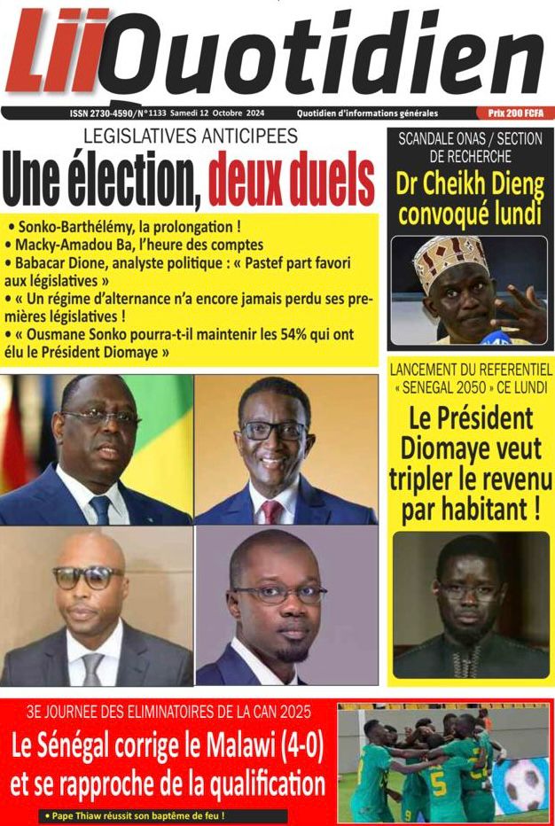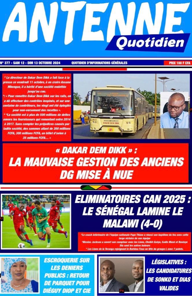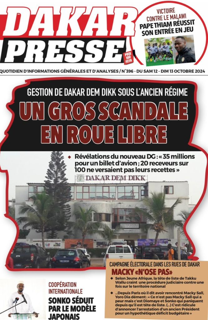 " /> La Une des Quotidiens Nationaux du 12 Octobre 2024 Publié le 12 Oct, 2024 À DÉCOUVRIR Les Unes des quotidiens nationaux du 03 novembre 2025 3 Nov, 2025 La Rédaction de SenCaféActu Partager ->