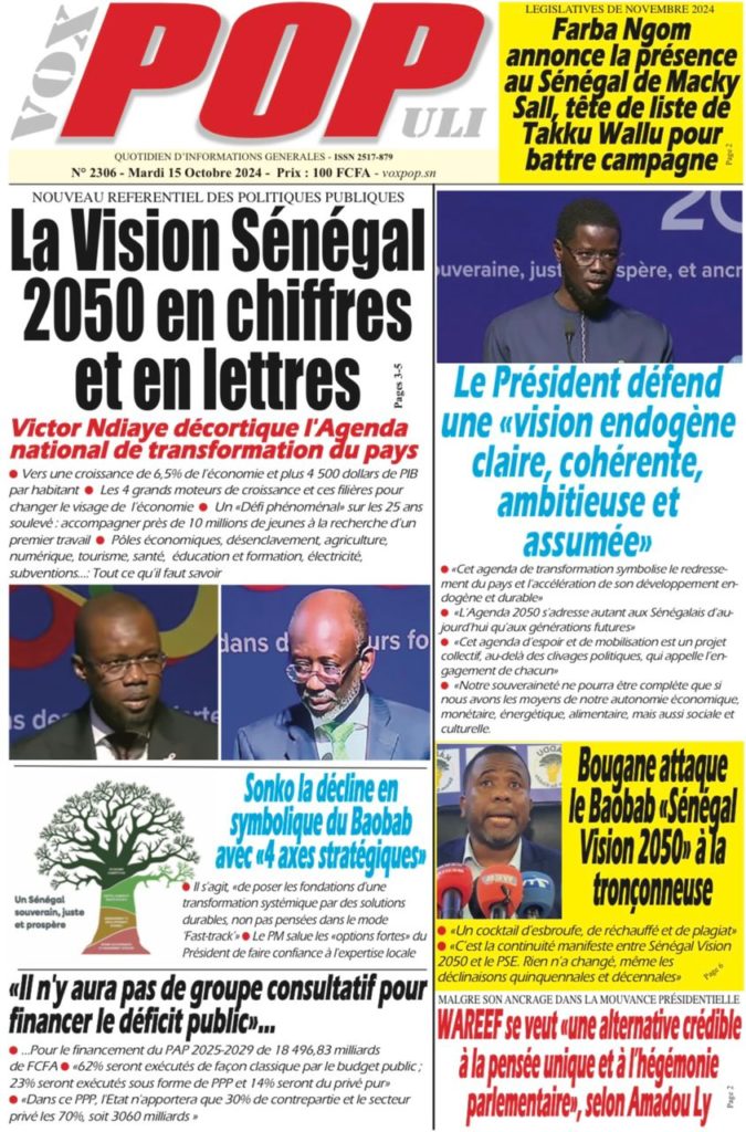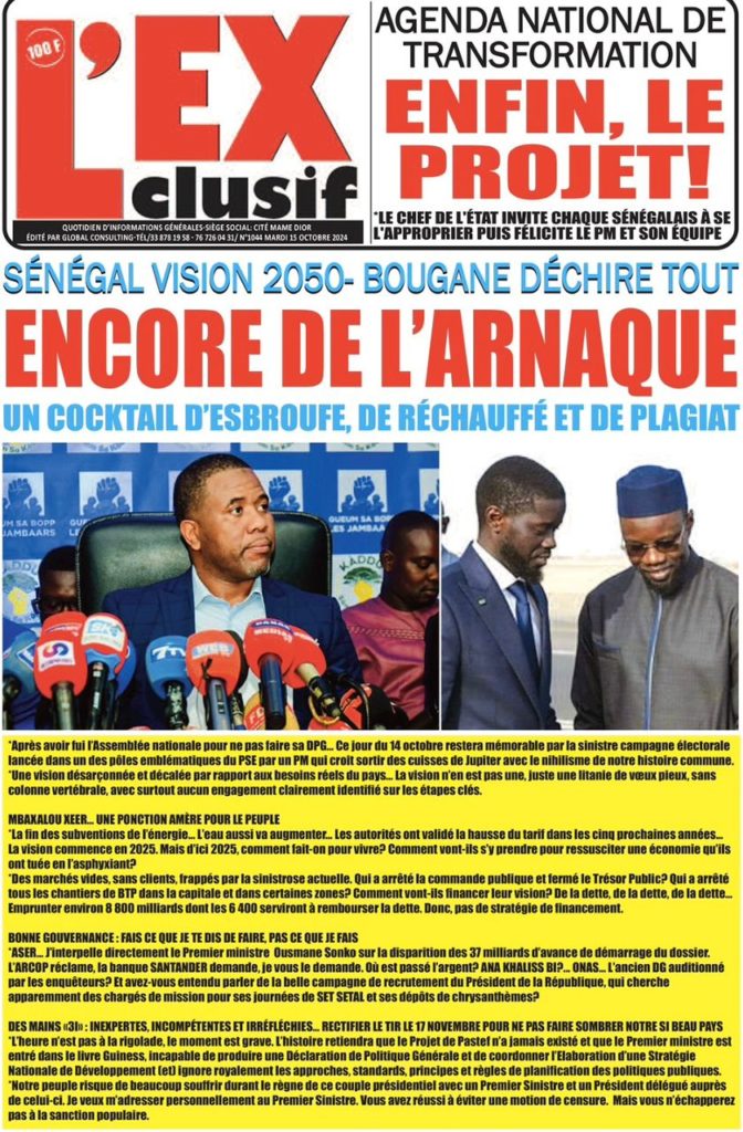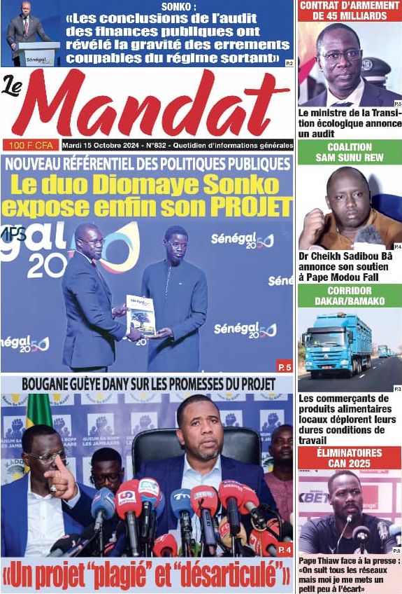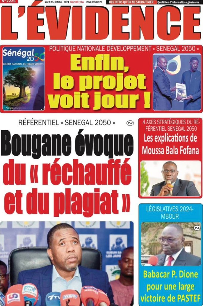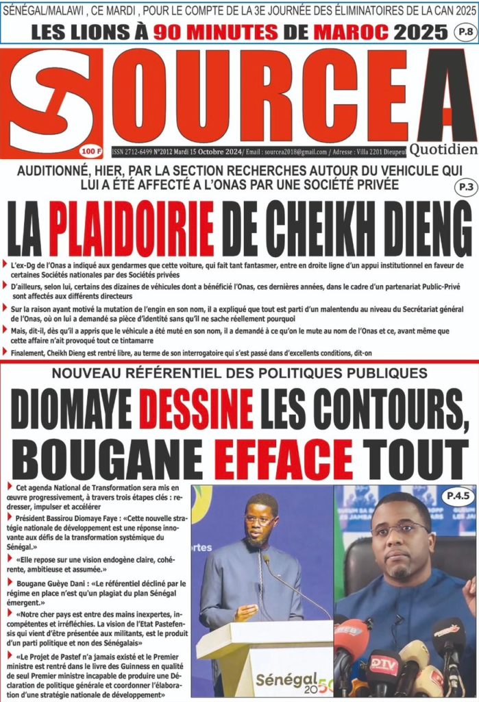 " /> La Une des Quotidiens Nationaux du 15 Octobre 2024 Publié le 15 Oct, 2024 À DÉCOUVRIR Les Unes des quotidiens nationaux du 03 novembre 2025 3 Nov, 2025 La Rédaction de SenCaféActu Partager ->