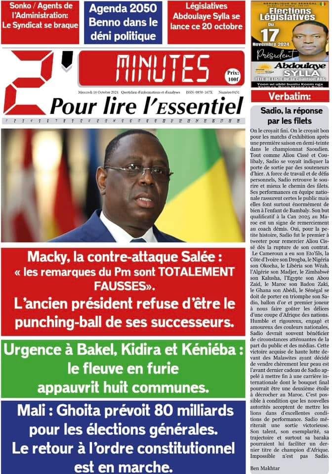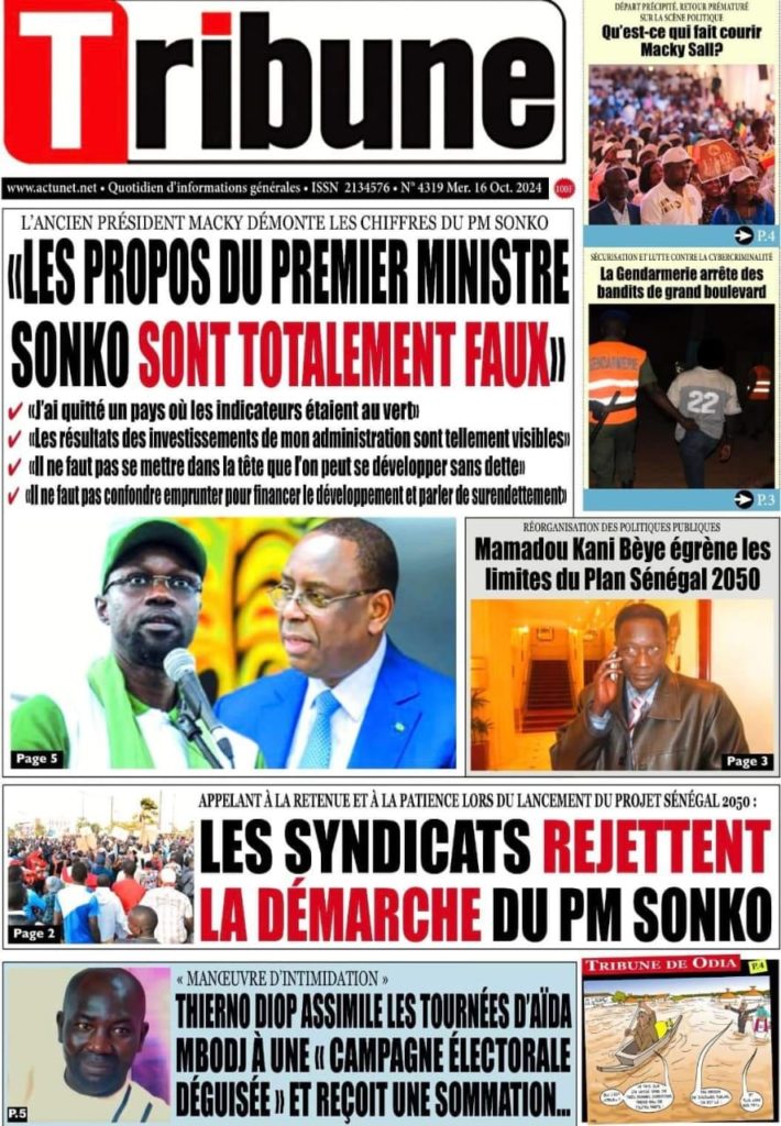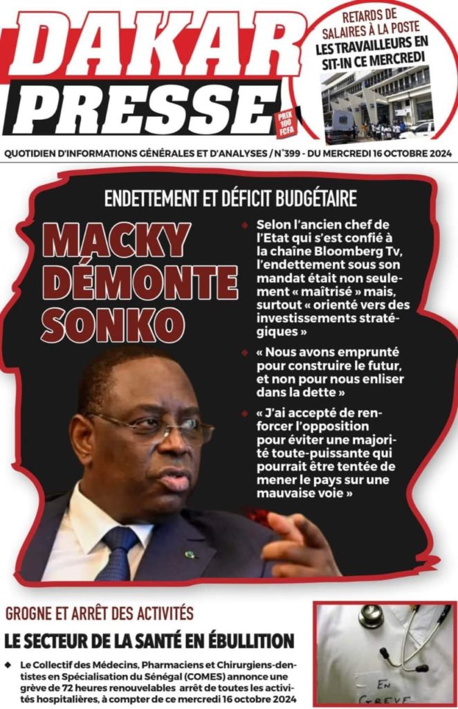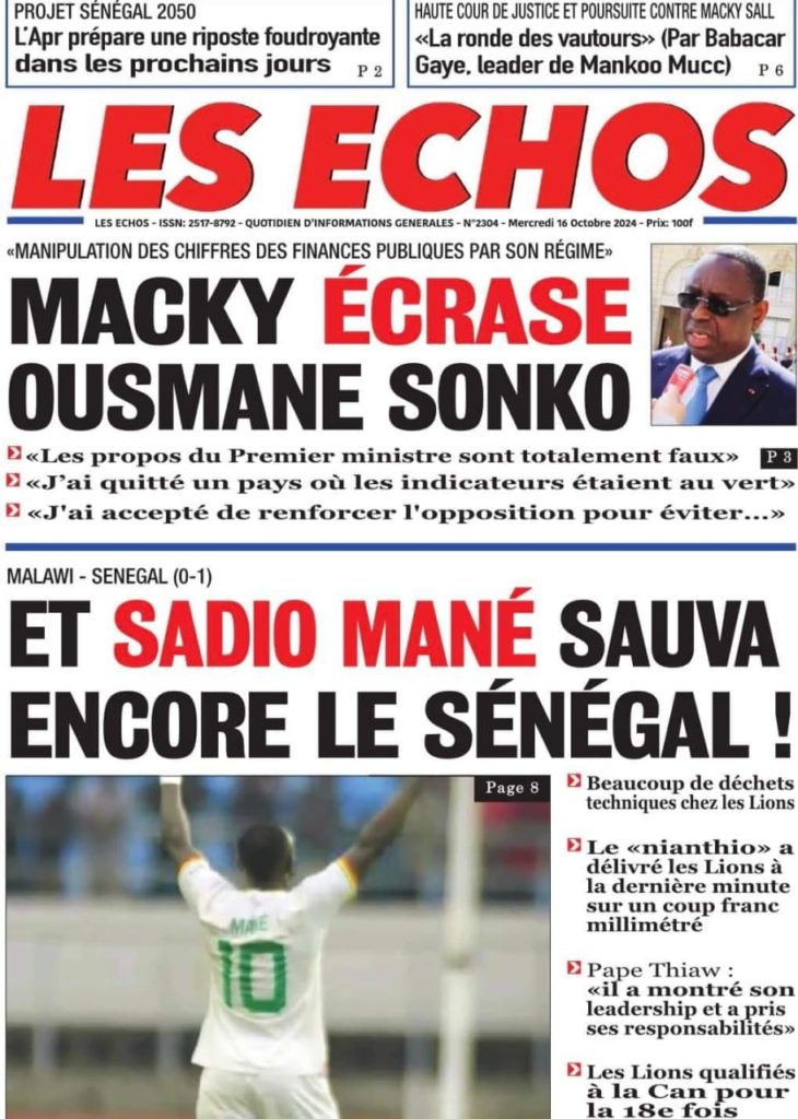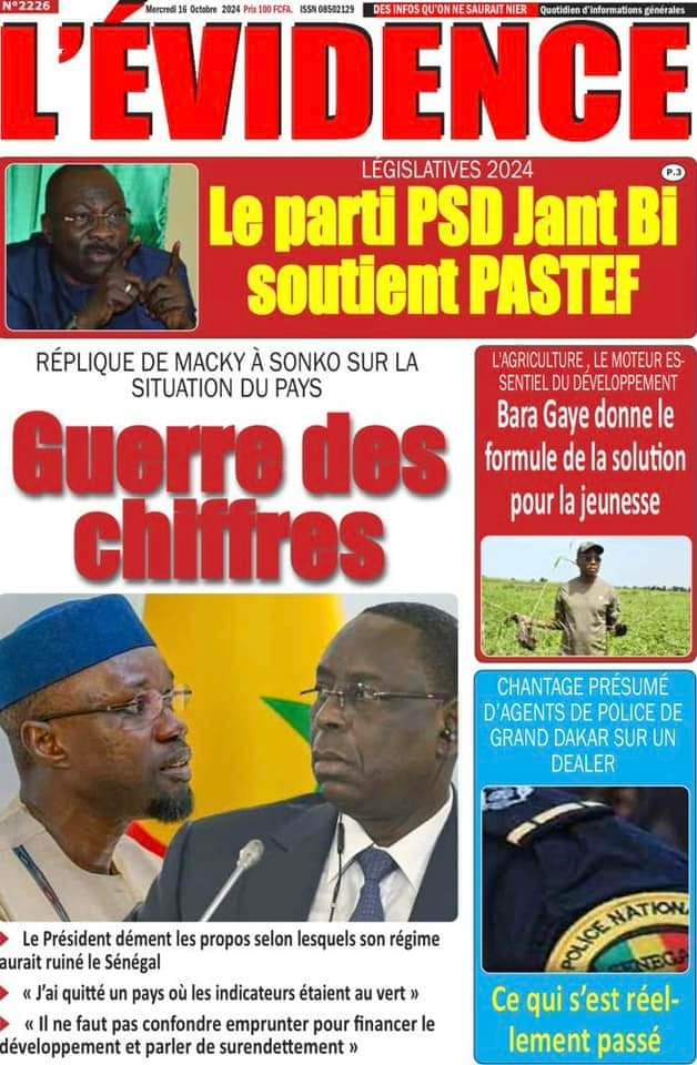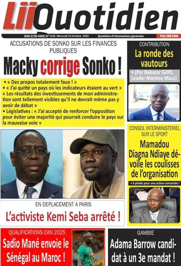 " /> La Une des Quotidiens Nationaux du 16 Octobre 2024 Publié le 16 Oct, 2024 À DÉCOUVRIR Les Unes des quotidiens nationaux du 05 novembre 2025 5 Nov, 2025 La Rédaction de SenCaféActu Partager ->