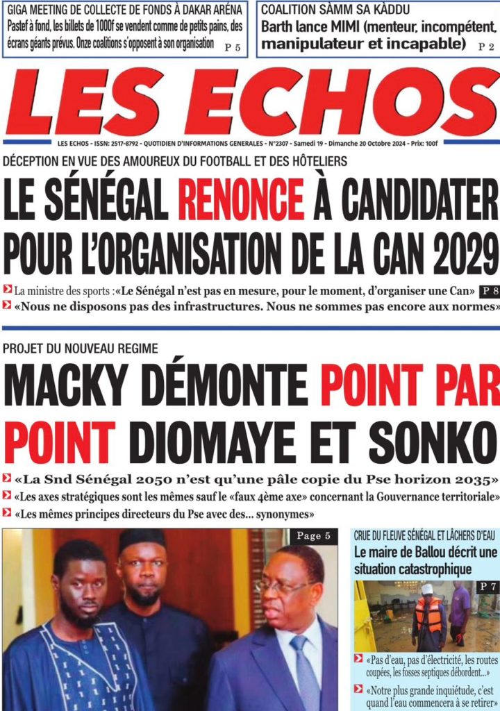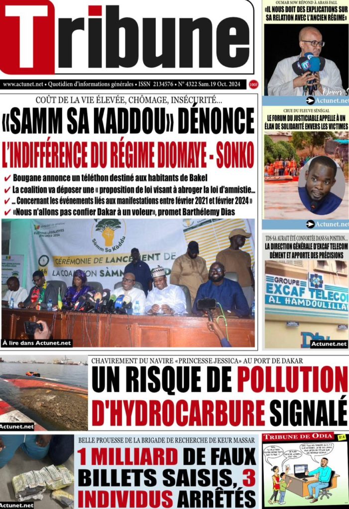 " /> La Une des Quotidiens Nationaux du 19 Octobre 2024 Publié le 19 Oct, 2024 À DÉCOUVRIR Les Unes des quotidiens nationaux du 06 novembre 2025 6 Nov, 2025 La Rédaction de SenCaféActu Partager ->