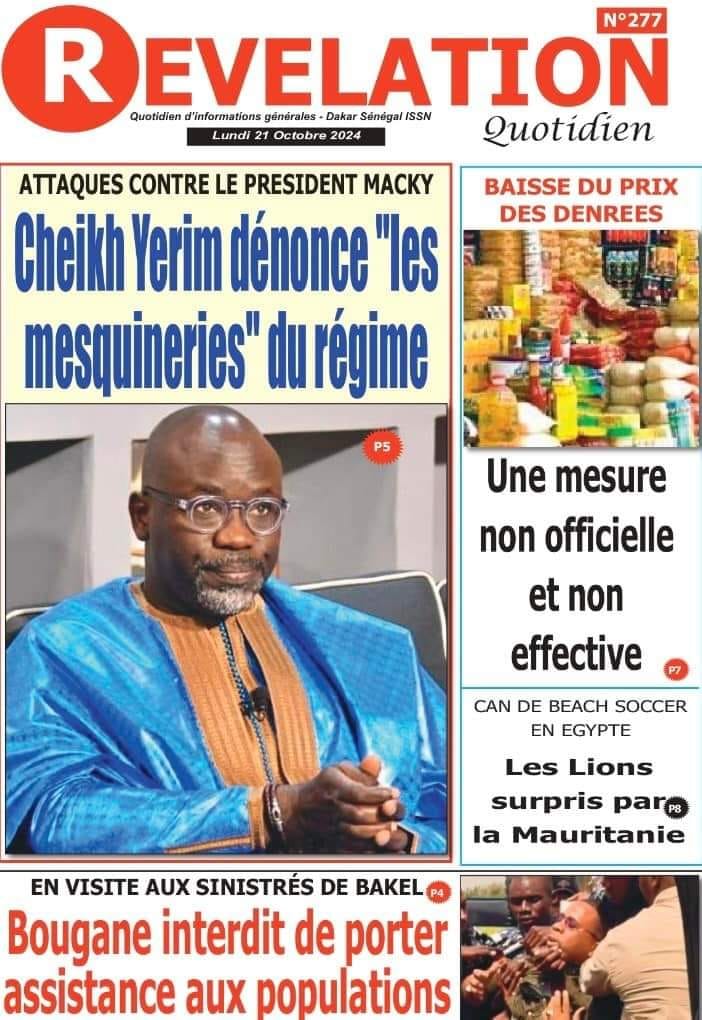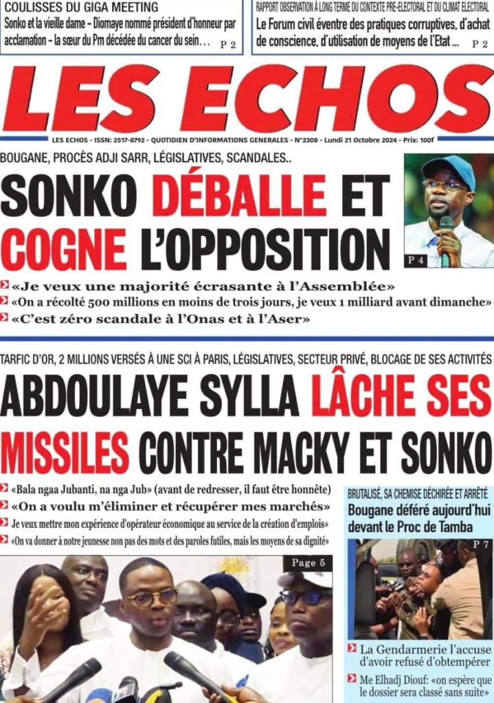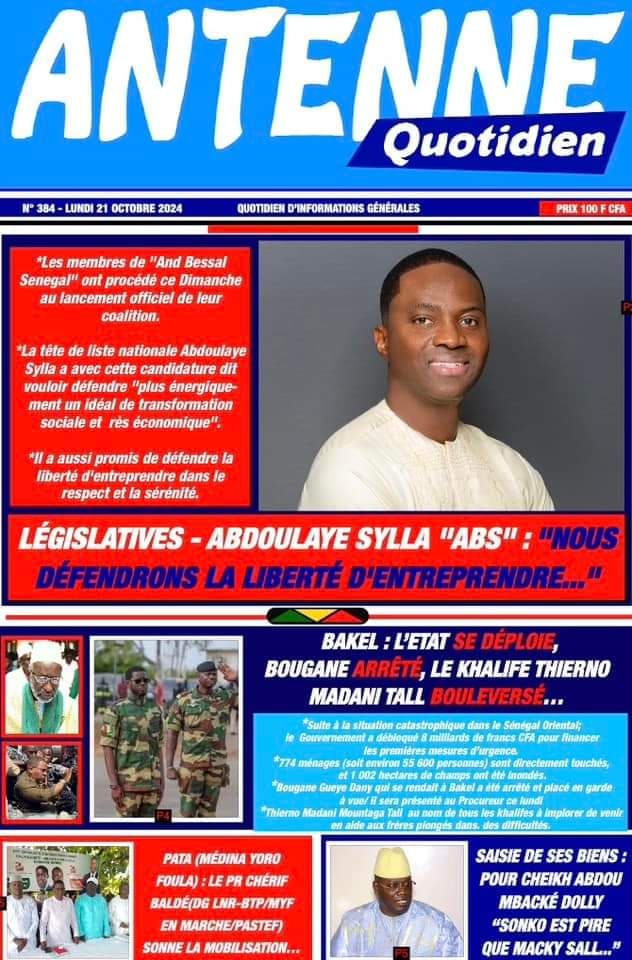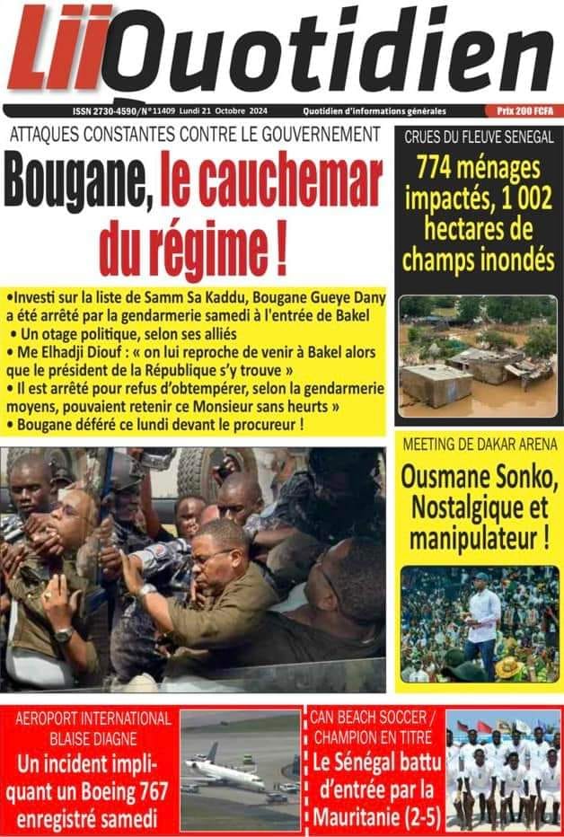 " /> La Une des Quotidiens Nationaux du 21 Octobre 2024 Publié le 21 Oct, 2024 À DÉCOUVRIR Les Unes des quotidiens nationaux du 27 novembre 2025 27 Nov, 2025 La Rédaction de SenCaféActu Partager ->