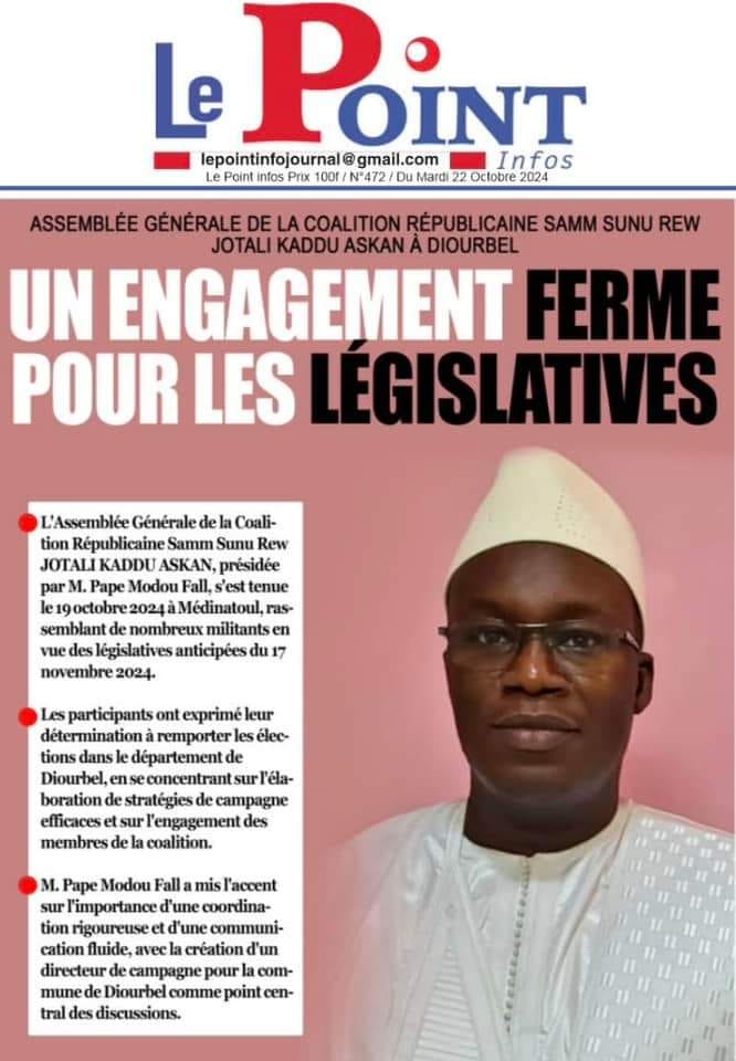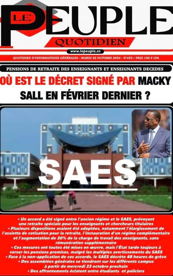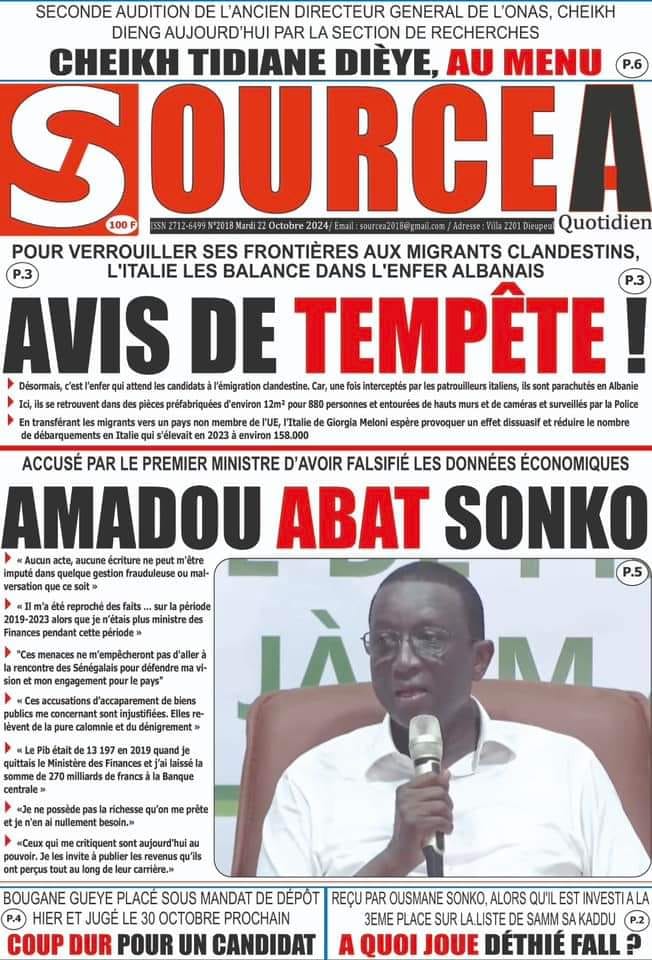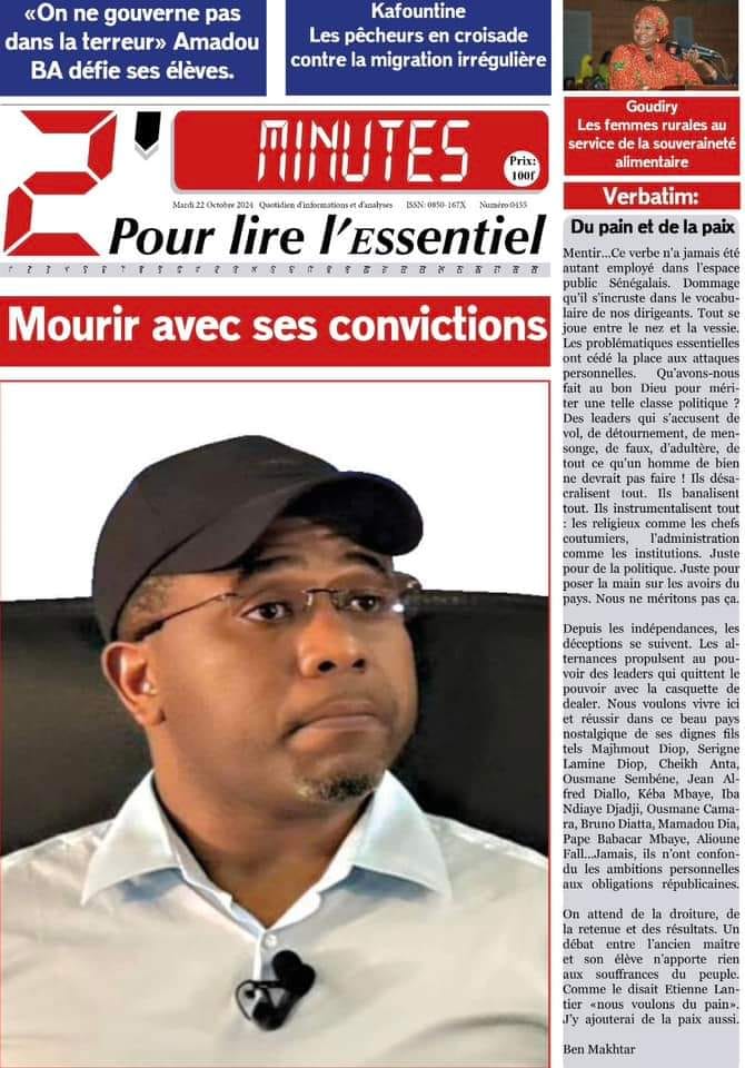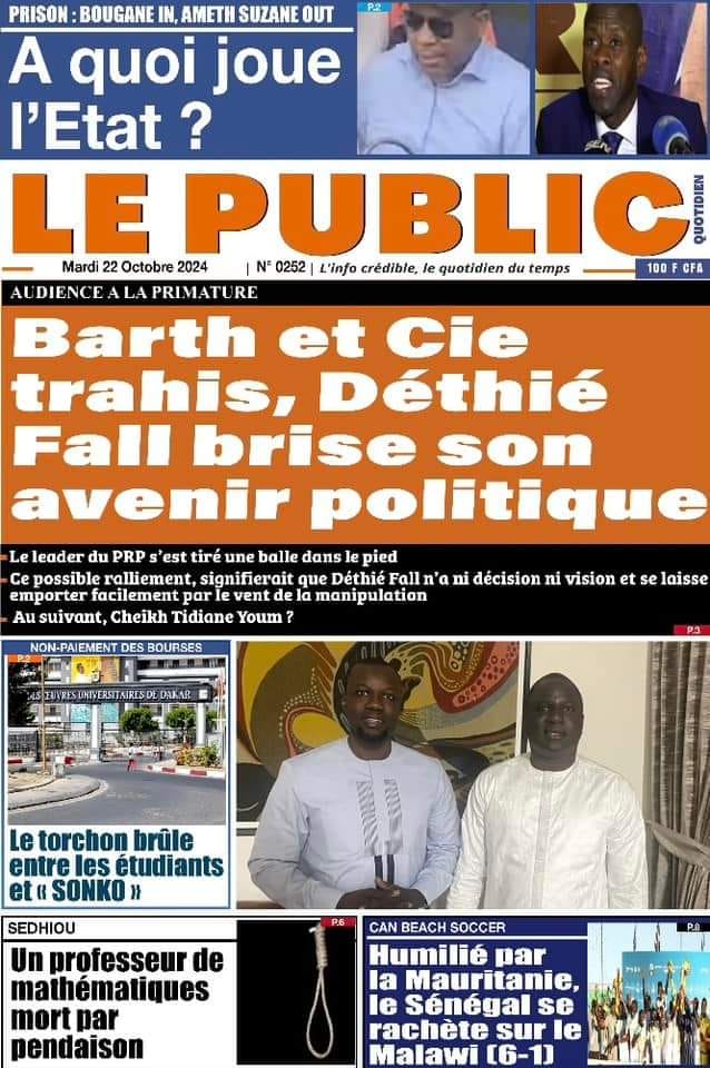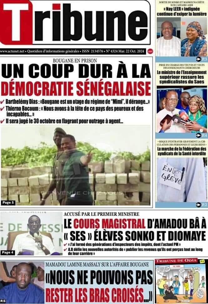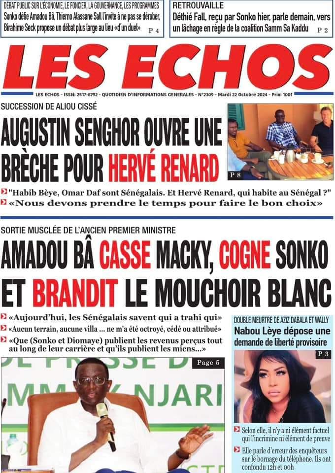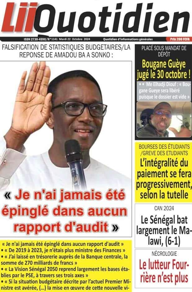 " /> La Une des Quotidiens Nationaux du 22 Octobre 2024 Publié le 22 Oct, 2024 À DÉCOUVRIR Les Unes des quotidiens nationaux du 05 novembre 2025 5 Nov, 2025 La Rédaction de SenCaféActu Partager ->