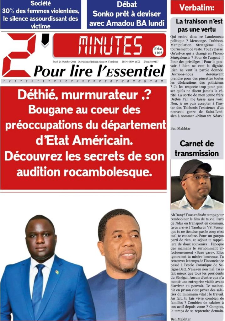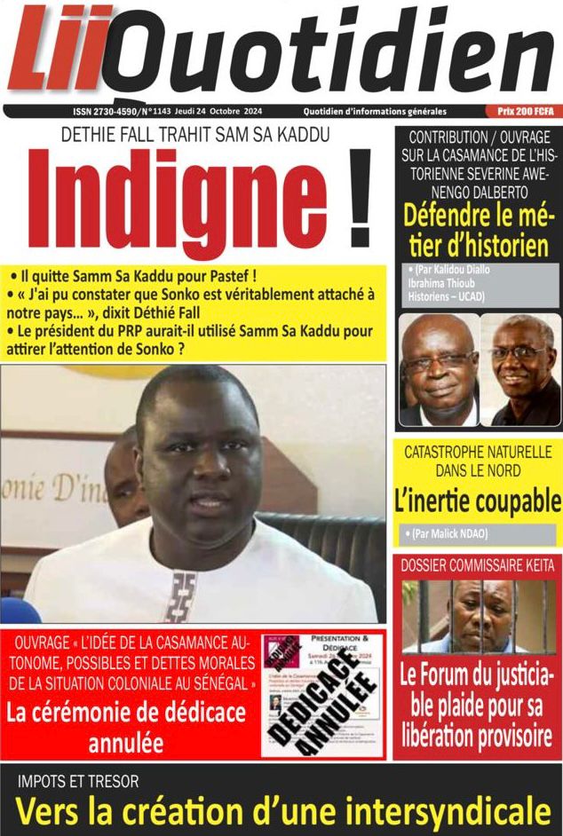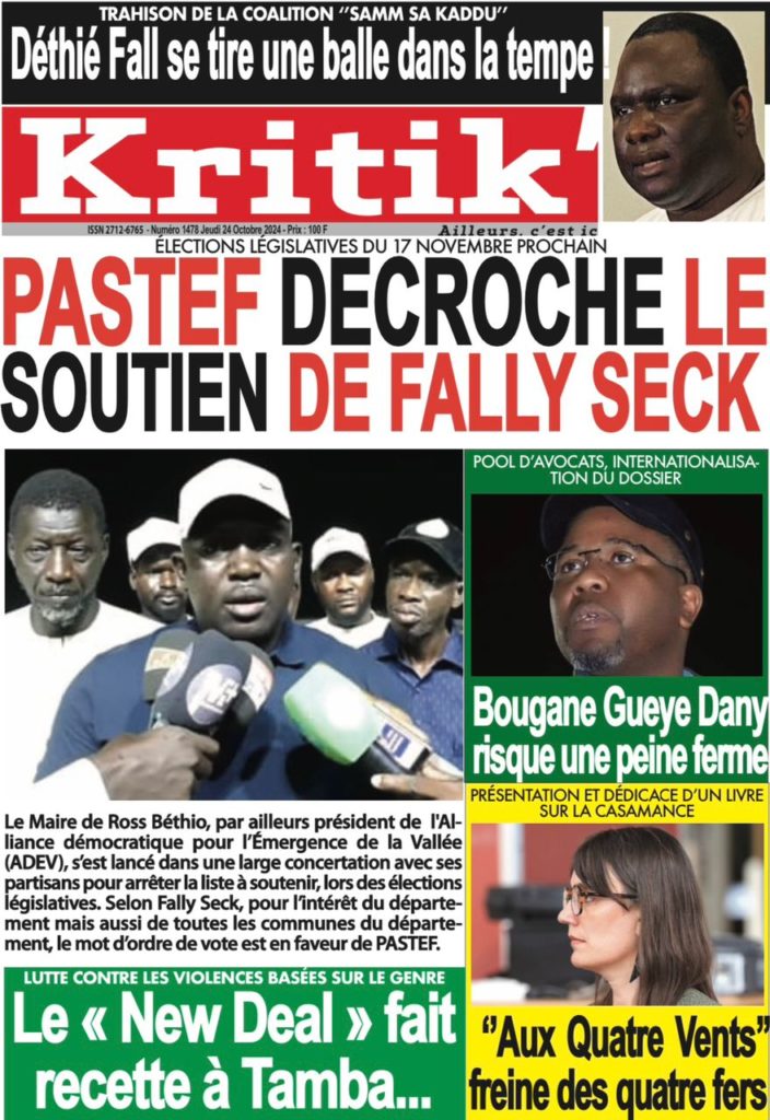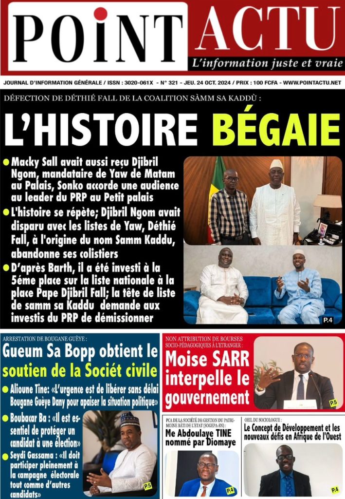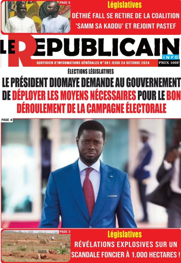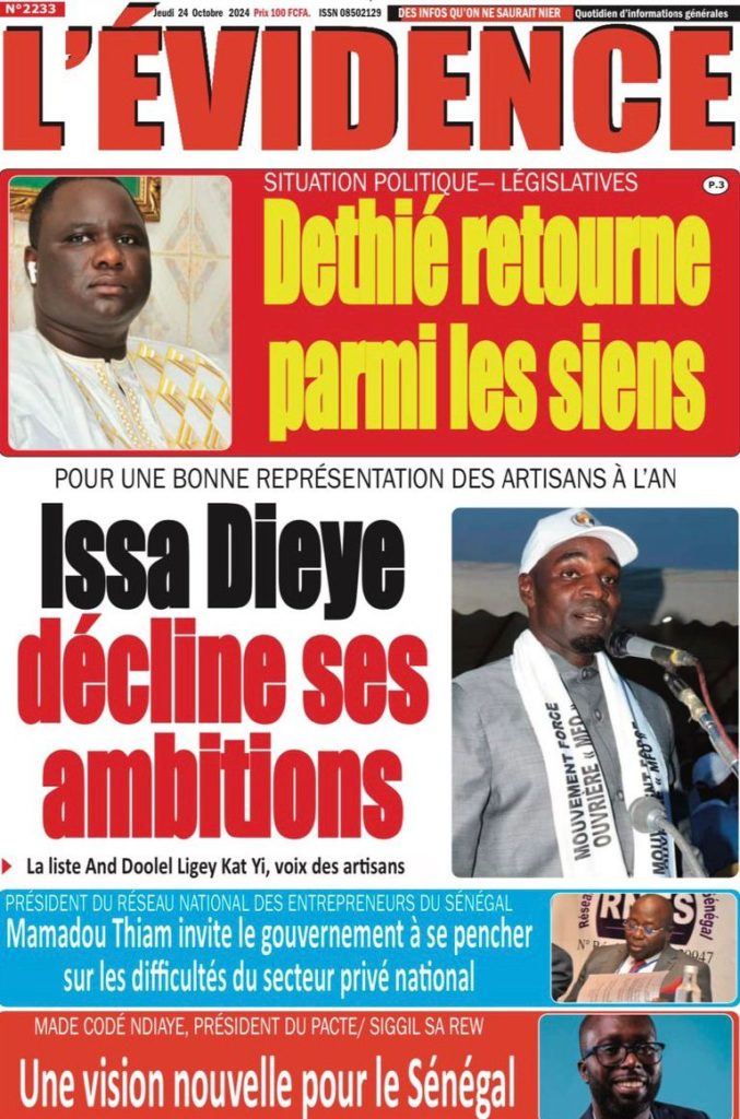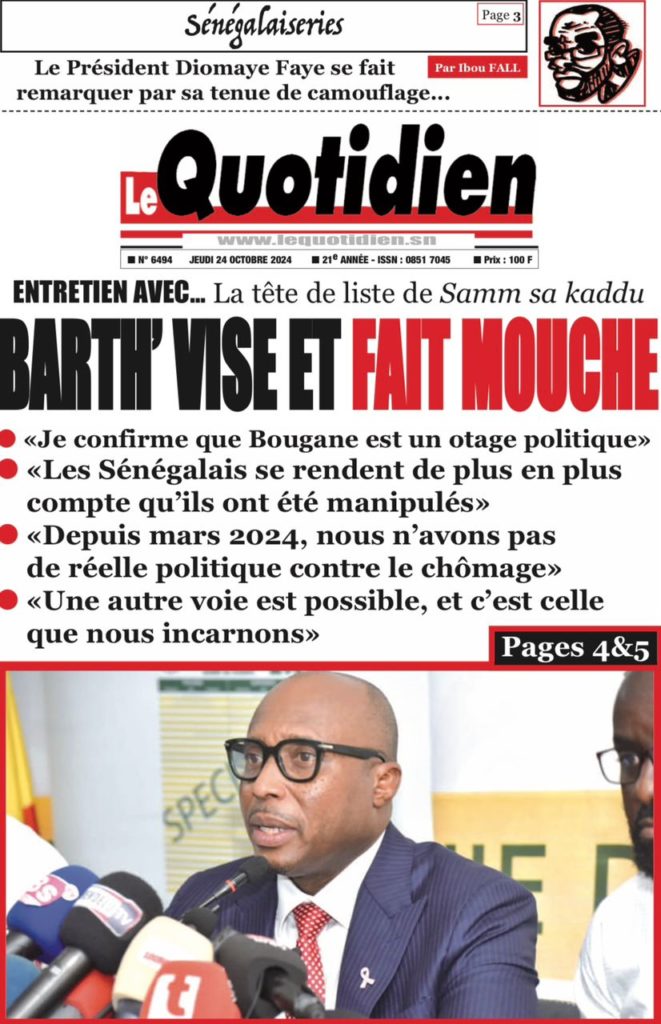 " /> La Une des Quotidiens Nationaux du 24 Octobre 2024 Publié le 24 Oct, 2024 À DÉCOUVRIR Les Unes des quotidiens nationaux du 22 novembre 2025 22 Nov, 2025 La Rédaction de SenCaféActu Partager ->