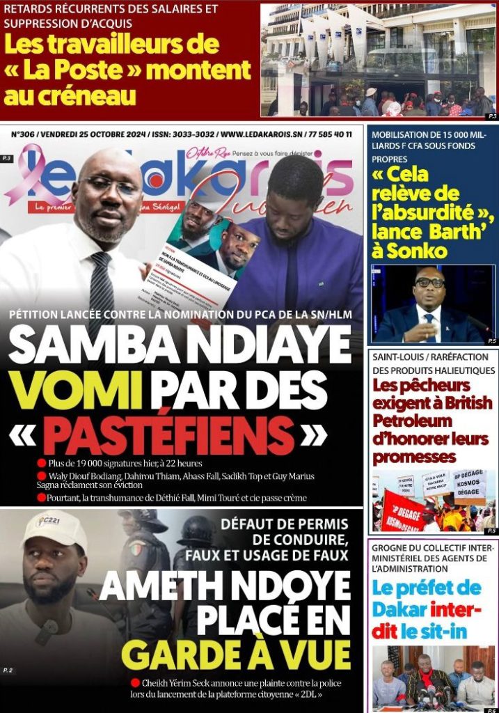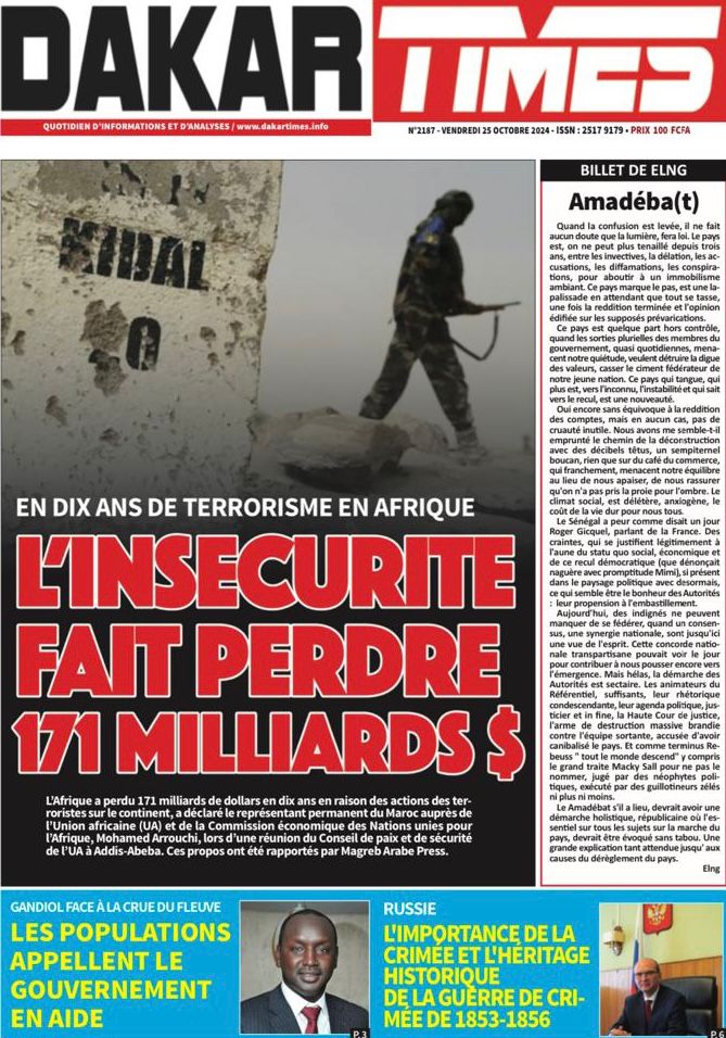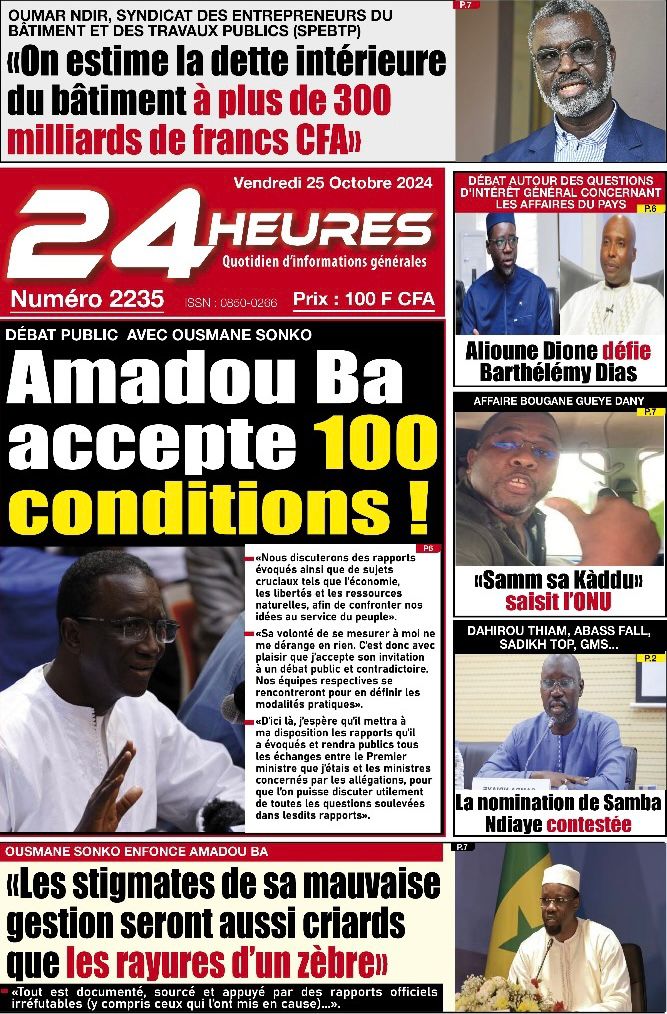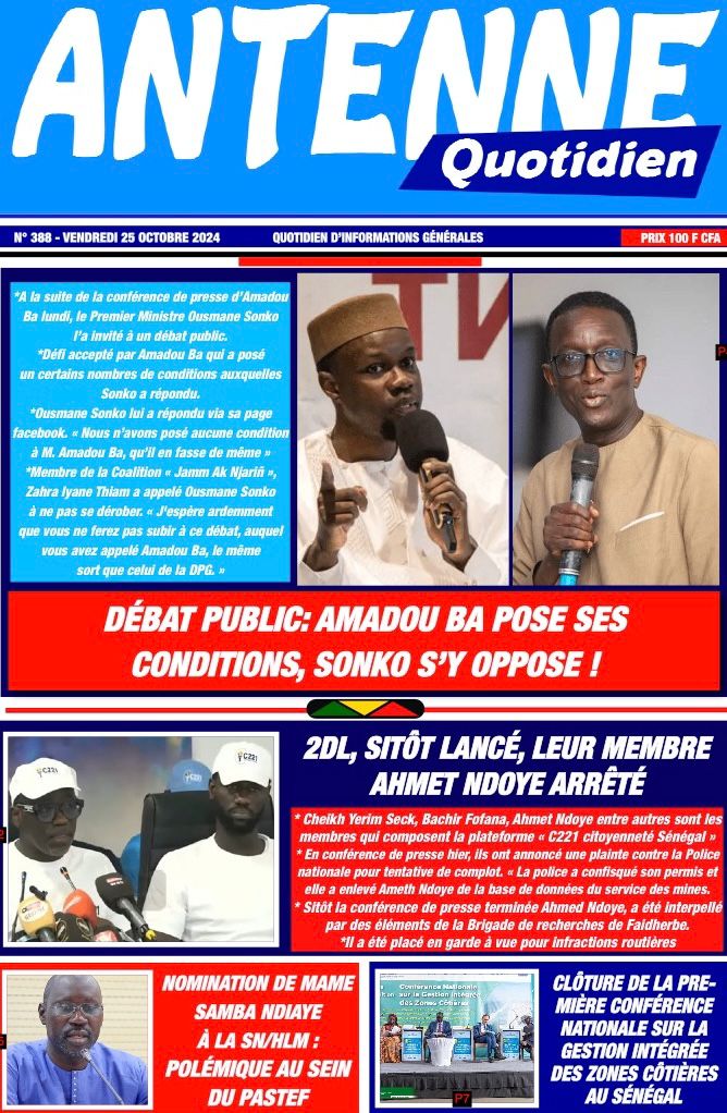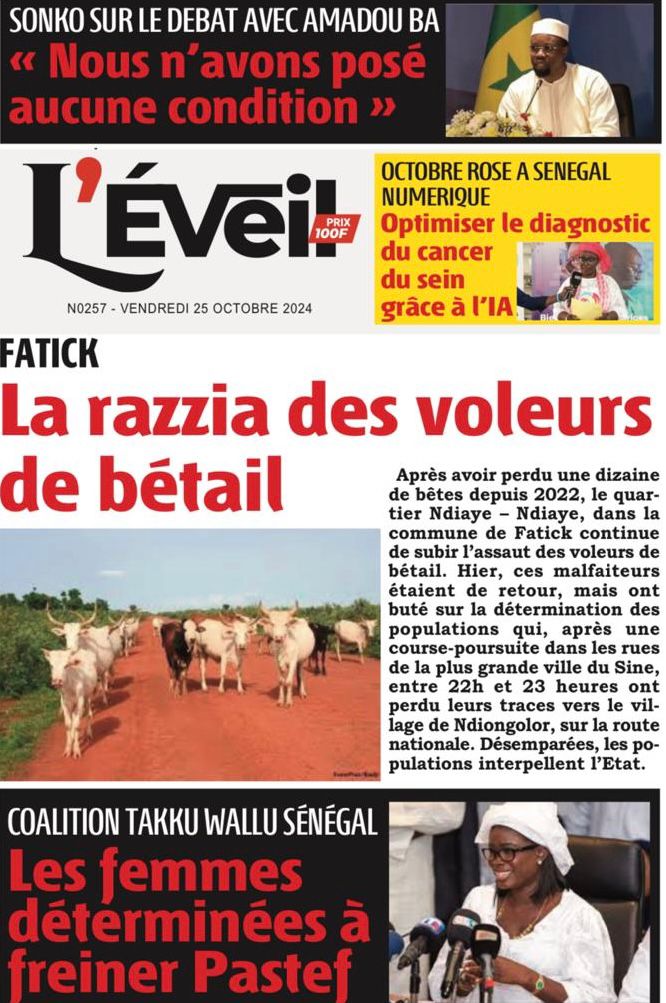" /> La Une des Quotidiens Nationaux du 25 Octobre 2024 Publié le 25 Oct, 2024 À DÉCOUVRIR Les Unes des quotidiens nationaux du 10 novembre 2025 10 Nov, 2025 La Rédaction de SenCaféActu Partager ->